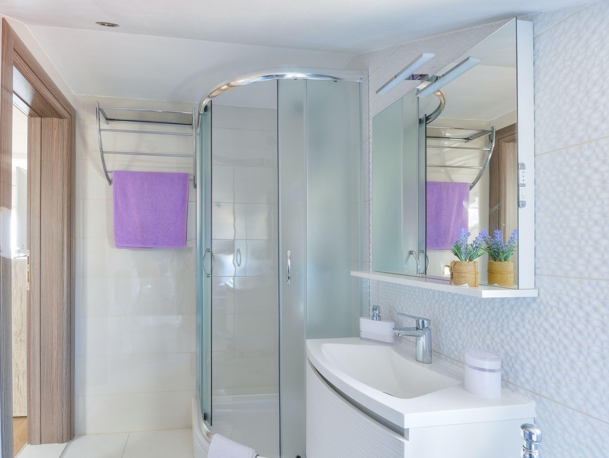 Studio bietet Platz für 4 Gäste. Die Betten sind in Schlafzimmern, die es 1 gibt, und in Wohnzimmer, innerhalb einer Gesamtfläche von 38m2, angeordnet. Die Gäste haben einen eigenen Balkon zur Verfügung, auf der sie in warmen Sommernächten genießen können. Das Studio-Apartment bietet Meerblick. Es ist erlaubt, Speisen auf dem Gemeinschafts-Grill vorzubereiten. IM PREIS INBEGRIFFEN: Kurtaxe, Endreinigung, Klimatisierung, Parkplatz, Internet, Kinderbett, Föhn. VERBINDLICHE ZUSÄTZLICHE KOSTEN: Aufzahlung für Kurzaufenthalte (prozentualer Zuschlag pro Nächtigungsanzahl: 30% - 1, 20% - 2, 10% - 3). Die Verfügbarkeit zusätzlicher Dienstleistungen in Ihrem reservierten Termin und die Preise derselben (falls nicht aufgeführt) müssen im Voraus überprüft werden. Zusätzliche Dienstleistungen die in der Zahlungsaufforderung nicht aufgeführt sind werden direkt beim Vermieter bezahlt, angenommen der Gast nutzt auch diese.