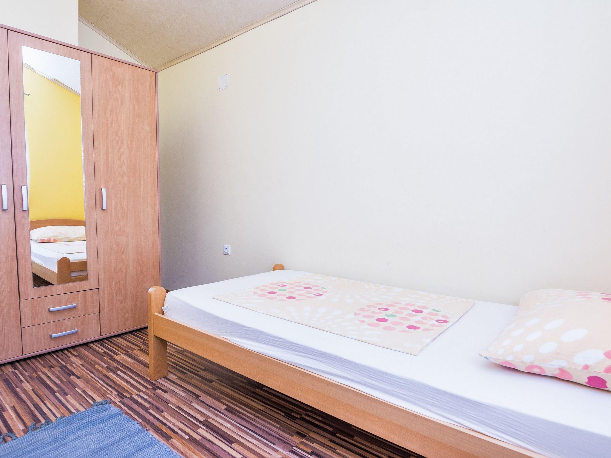 Ferienwohnung bietet Platz für 4 Gäste. Die Betten sind in Schlafzimmern, die es 2 gibt, und in Esszimmer, innerhalb einer Gesamtfläche von 37m2, angeordnet. Die Gäste haben eine eigene Terrasse zur Verfügung, auf der sie in warmen Sommernächten genießen können. Das Apartment bietet Meerblick. Für vollen Genuss und Entspannung gibt es einen privaten Grill für Gäste dieser Unterkunft. IM PREIS INBEGRIFFEN: Kurtaxe, Endreinigung, Klimatisierung, Parkplatz, Internet, Föhn. VERBINDLICHE ZUSÄTZLICHE KOSTEN: Aufzahlung für Kurzaufenthalte (prozentualer Zuschlag pro Nächtigungsanzahl: 30% - 1, 20% - 2, 10% - 3). Die Verfügbarkeit zusätzlicher Dienstleistungen in Ihrem reservierten Termin und die Preise derselben (falls nicht aufgeführt) müssen im Voraus überprüft werden. Zusätzliche Dienstleistungen die in der Zahlungsaufforderung nicht aufgeführt sind werden direkt beim Vermieter bezahlt, angenommen der Gast nutzt auch diese.