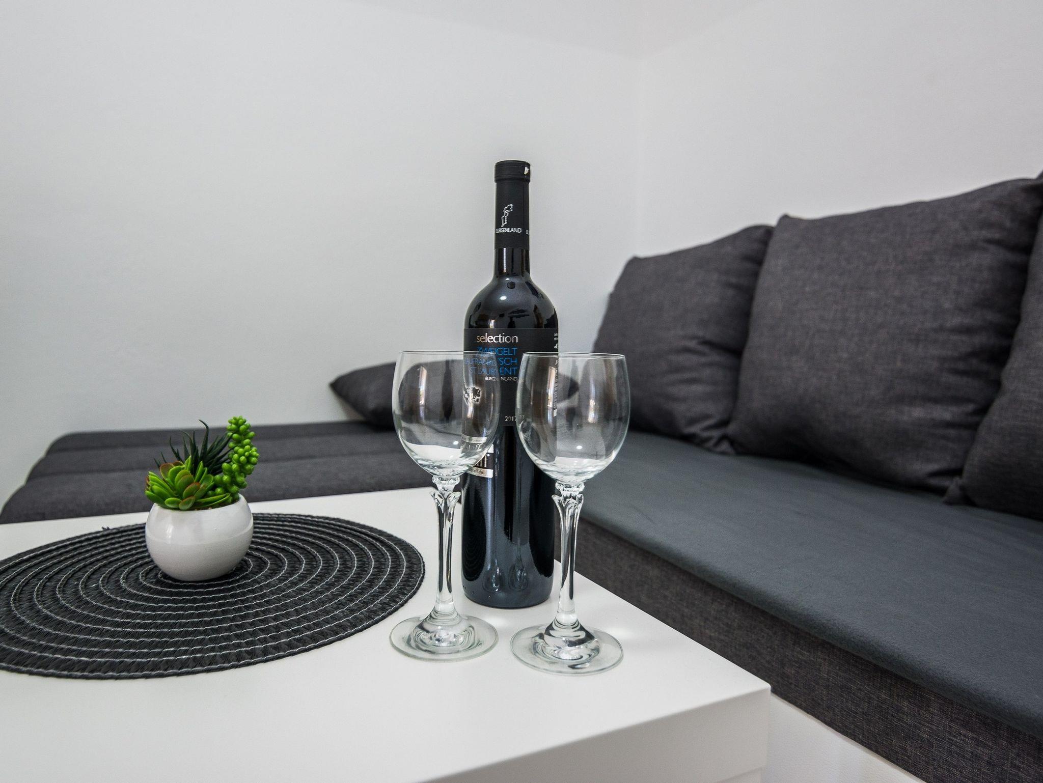 Ferienwohnung bietet Platz für 4 Gäste. Die Betten sind in Schlafzimmern, die es 1 gibt, und in Wohnzimmer, innerhalb einer Gesamtfläche von 30m2, angeordnet. Die Gäste haben eine eigene Terrasse zur Verfügung, auf der sie in warmen Sommernächten genießen können. Es ist erlaubt, Speisen auf dem Gemeinschafts-Grill vorzubereiten. Durch die Terrasse der gebuchten Unterkunftseinheit gehen auch andere Gäste oder Vermieter. IM PREIS INBEGRIFFEN: Kurtaxe, Endreinigung, Klimatisierung, Parkplatz, Internet, Kinderbett, Föhn. VERBINDLICHE ZUSÄTZLICHE KOSTEN: Aufzahlung für Kurzaufenthalte (prozentualer Zuschlag pro Nächtigungsanzahl: 30% - 1, 20% - 2, 10% - 3). Die Verfügbarkeit zusätzlicher Dienstleistungen in Ihrem reservierten Termin und die Preise derselben (falls nicht aufgeführt) müssen im Voraus überprüft werden. Zusätzliche Dienstleistungen die in der Zahlungsaufforderung nicht aufgeführt sind werden direkt beim Vermieter bezahlt, angenommen der Gast nutzt auch diese.