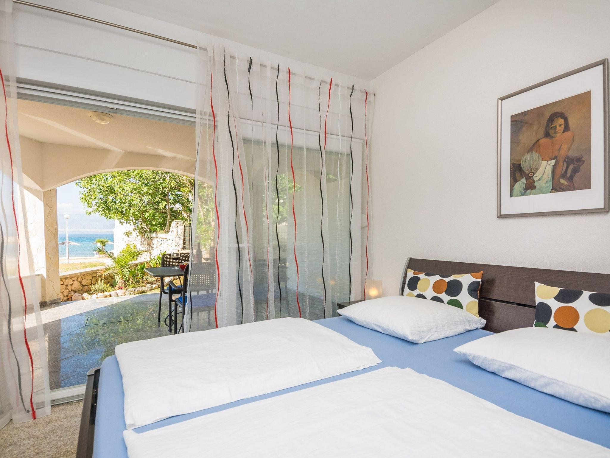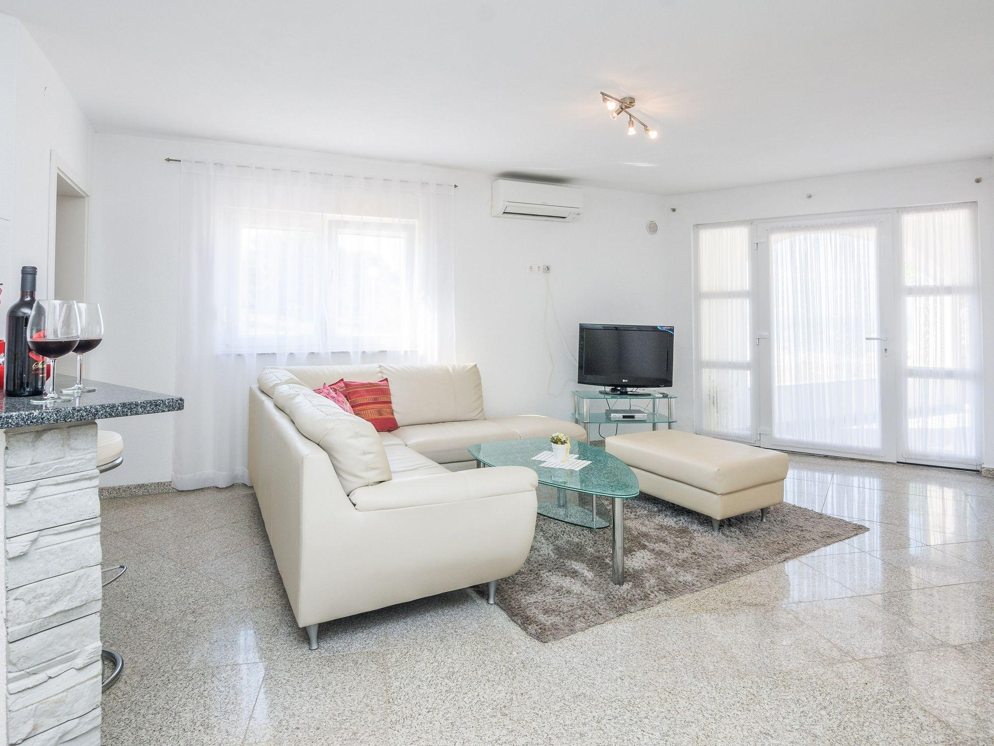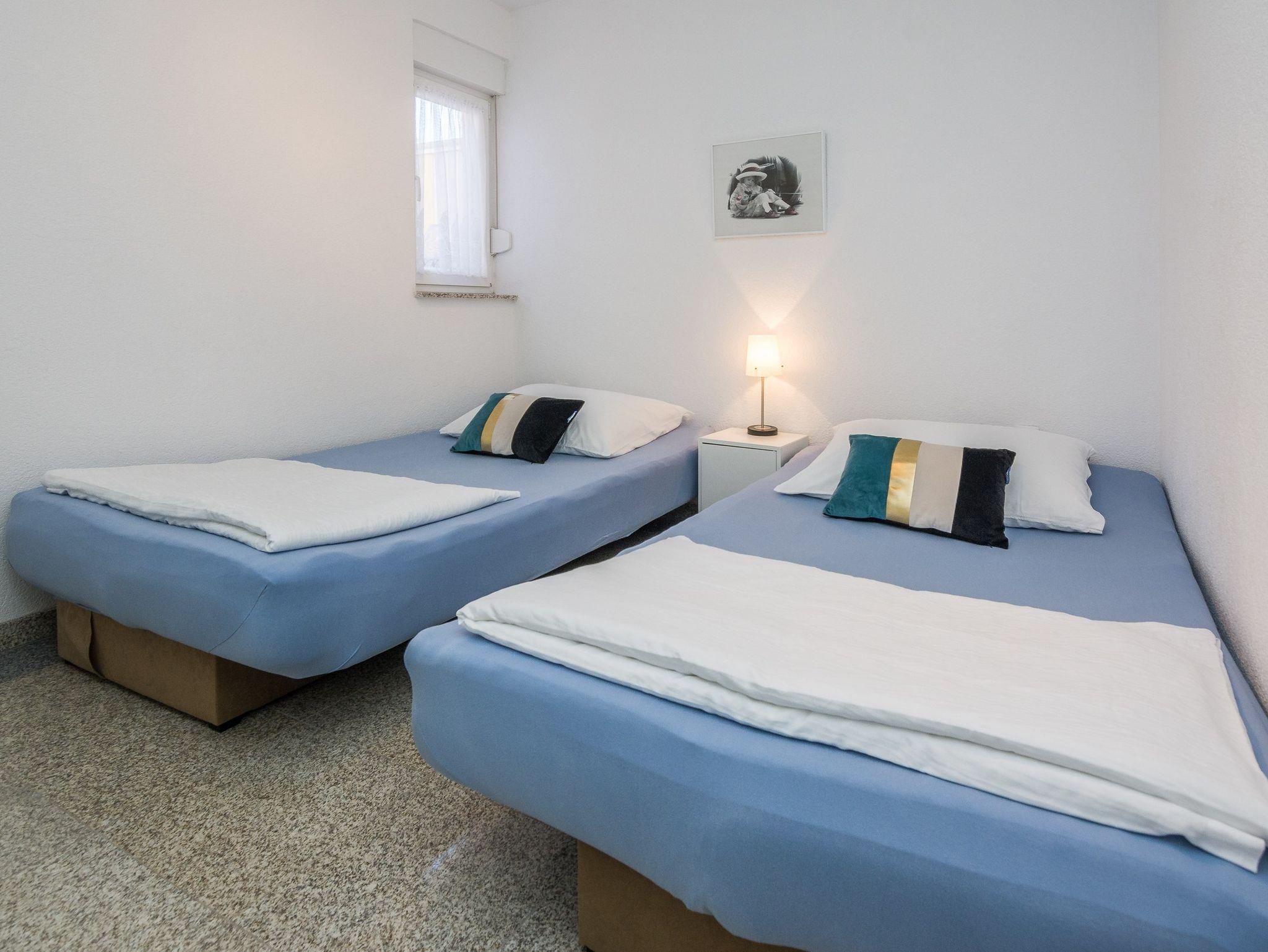 Ferienwohnung bietet Platz für 4 Gäste. Die Betten sind in Schlafzimmern, die es 2 gibt, innerhalb einer Gesamtfläche von 49m2, angeordnet. Die Gäste haben eine eigene Terrasse zur Verfügung, auf der sie in warmen Sommernächten genießen können. Das Apartment bietet Meerblick. Es ist erlaubt, Speisen auf dem Gemeinschafts-Grill vorzubereiten. IM PREIS INBEGRIFFEN: Kurtaxe, Endreinigung, Klimatisierung, Parkplatz, Internet, Wäschewaschen, Kinderbett, Föhn. VERBINDLICHE ZUSÄTZLICHE KOSTEN: Aufzahlung für Kurzaufenthalte (prozentualer Zuschlag pro Nächtigungsanzahl: 30% - 1, 20% - 2, 10% - 3). Die Verfügbarkeit zusätzlicher Dienstleistungen in Ihrem reservierten Termin und die Preise derselben (falls nicht aufgeführt) müssen im Voraus überprüft werden. Zusätzliche Dienstleistungen die in der Zahlungsaufforderung nicht aufgeführt sind werden direkt beim Vermieter bezahlt, angenommen der Gast nutzt auch diese.