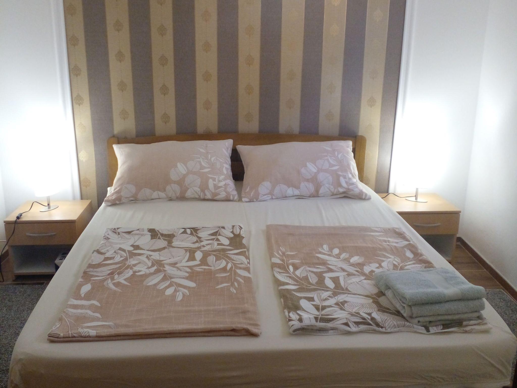 Ferienwohnung bietet Platz für 4 Gäste. Die Betten sind in Schlafzimmern, die es 1 gibt, und in Wohnzimmer, innerhalb einer Gesamtfläche von 36m2, angeordnet. Die Gäste haben eine eigene Terrasse zur Verfügung, auf der sie in warmen Sommernächten genießen können. Es ist erlaubt, Speisen auf dem Gemeinschafts-Grill vorzubereiten. In der Unterkunftseinheit besteht die Möglichkeit des Mitbringens von Haustieren gegen Aufpreis. IM PREIS INBEGRIFFEN: Kurtaxe, Endreinigung, Klimatisierung, Parkplatz, Internet, Kinderbett, Bügeleisen, Bügelbrett, Föhn. VERBINDLICHE ZUSÄTZLICHE KOSTEN: Aufzahlung für Kurzaufenthalte (prozentualer Zuschlag pro Nächtigungsanzahl: 30% - 1, 20% - 2, 10% - 3). UNVERBINDLICHE ZUSÄTZLICHE KOSTEN: Haustiere (5,00 € pro Nacht). Die Verfügbarkeit zusätzlicher Dienstleistungen in Ihrem reservierten Termin und die Preise derselben (falls nicht aufgeführt) müssen im Voraus überprüft werden. Zusätzliche Dienstleistungen die in der Zahlungsaufforderung nicht aufgeführt sind werden direkt beim Vermieter bezahlt, angenommen der Gast nutzt auch diese. Ermäßigung auf den Grundpreis: Gratistag 28=25 (bei einem Aufenthalt von 28 oder mehr Tagen erhalten Sie 3 kostenlose Tage für den Aufenthalt bis 31.12.26).