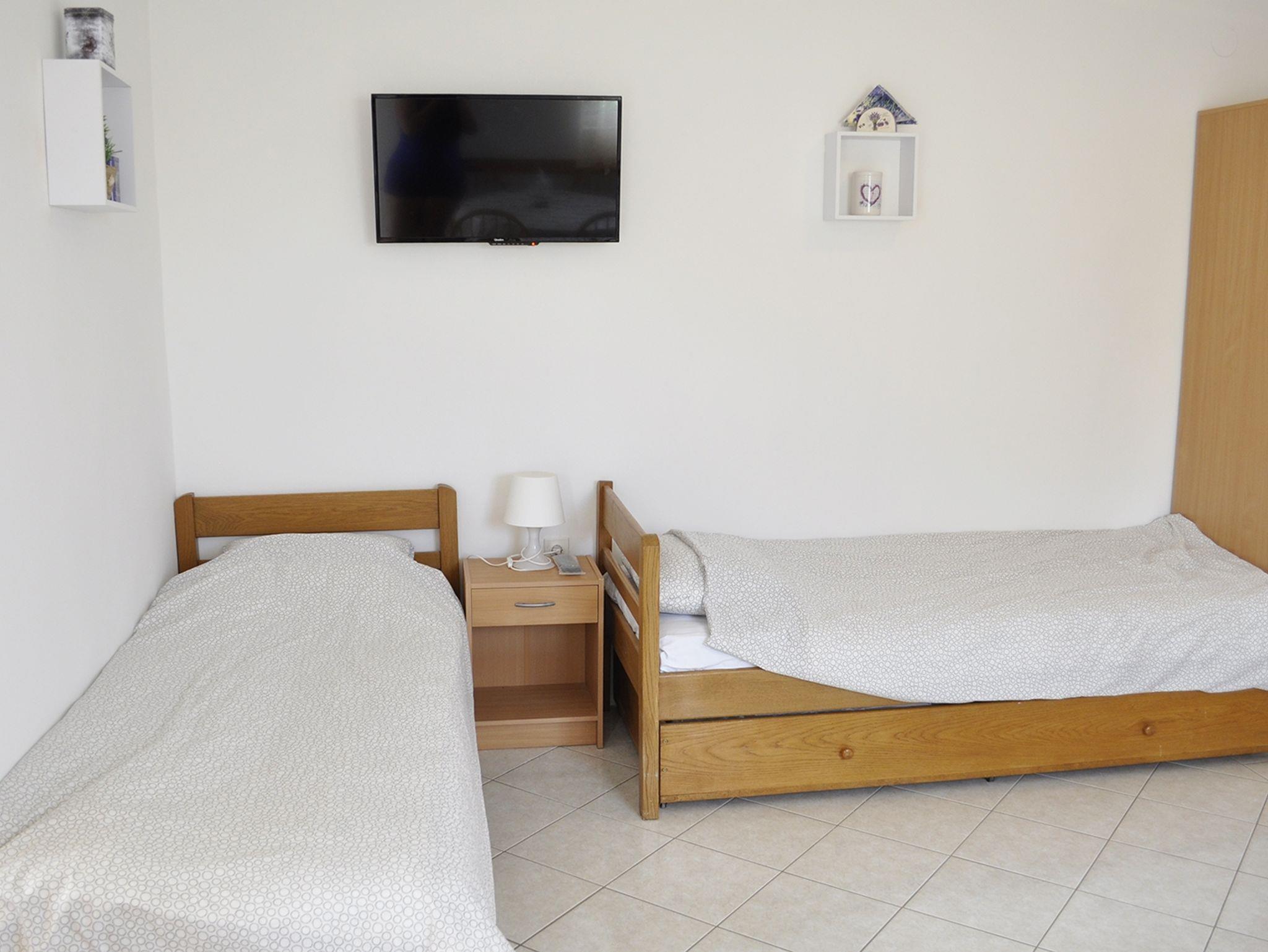 Ferienwohnung bietet Platz für 4 Gäste. Die Betten sind in Schlafzimmern, die es 1 gibt, und in Wohnzimmer, innerhalb einer Gesamtfläche von 35m2, angeordnet. Die Gäste haben einen eigenen Balkon zur Verfügung, auf der sie in warmen Sommernächten genießen können. Es ist erlaubt, Speisen auf dem Gemeinschafts-Grill vorzubereiten. In der Unterkunftseinheit besteht die Möglichkeit des Mitbringens von Haustieren, und die Dienstleistung ist im Preis der Unterkunft enthalten. IM PREIS INBEGRIFFEN: Kurtaxe, Endreinigung, Klimatisierung, Parkplatz, Internet, Haustiere. VERBINDLICHE ZUSÄTZLICHE KOSTEN: Aufzahlung für Kurzaufenthalte (prozentualer Zuschlag pro Nächtigungsanzahl: 30% - 1, 20% - 2, 10% - 3). UNVERBINDLICHE ZUSÄTZLICHE KOSTEN: Zusatzbett (10,00 € pro Nacht). Die Verfügbarkeit zusätzlicher Dienstleistungen in Ihrem reservierten Termin und die Preise derselben (falls nicht aufgeführt) müssen im Voraus überprüft werden. Zusätzliche Dienstleistungen die in der Zahlungsaufforderung nicht aufgeführt sind werden direkt beim Vermieter bezahlt, angenommen der Gast nutzt auch diese.