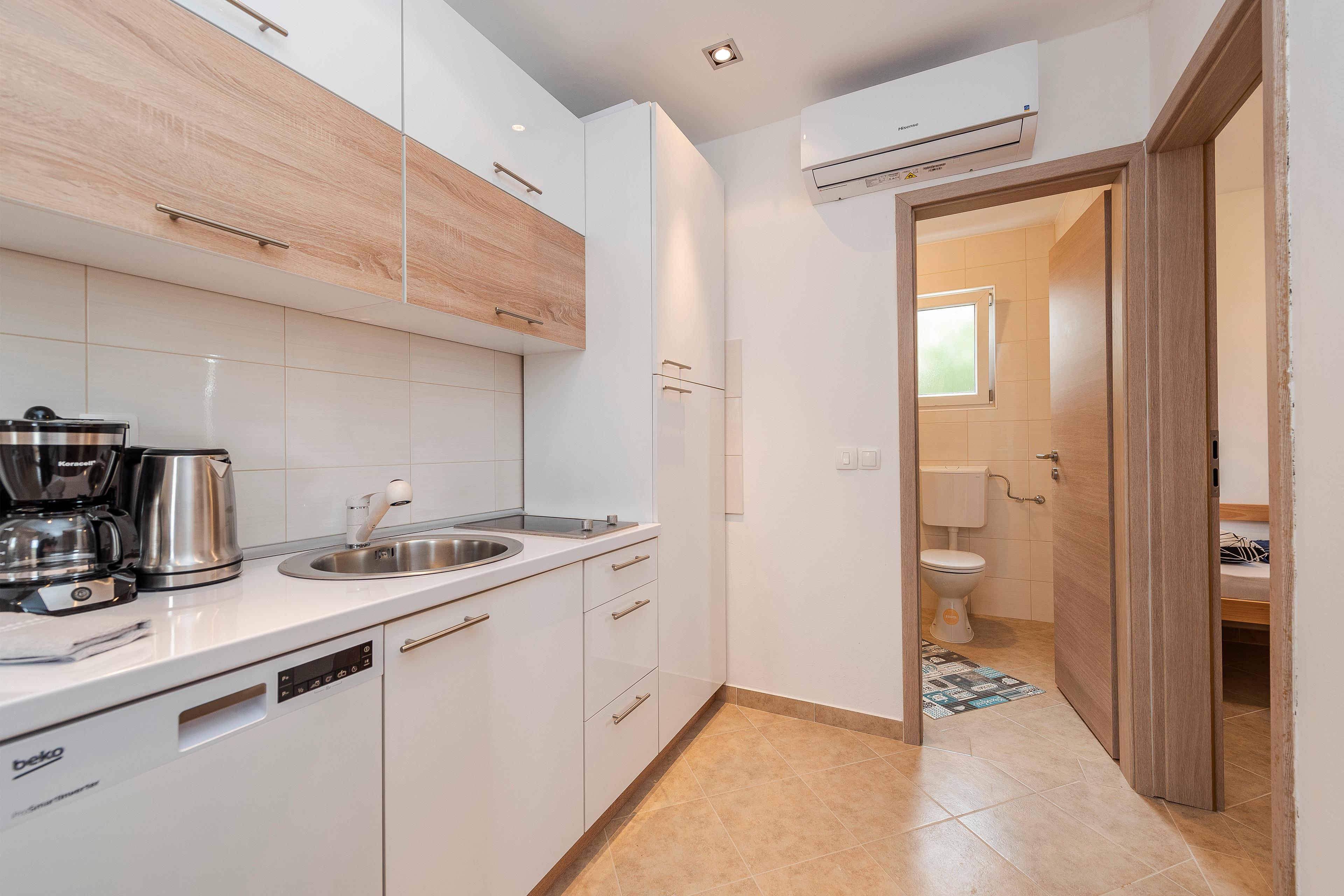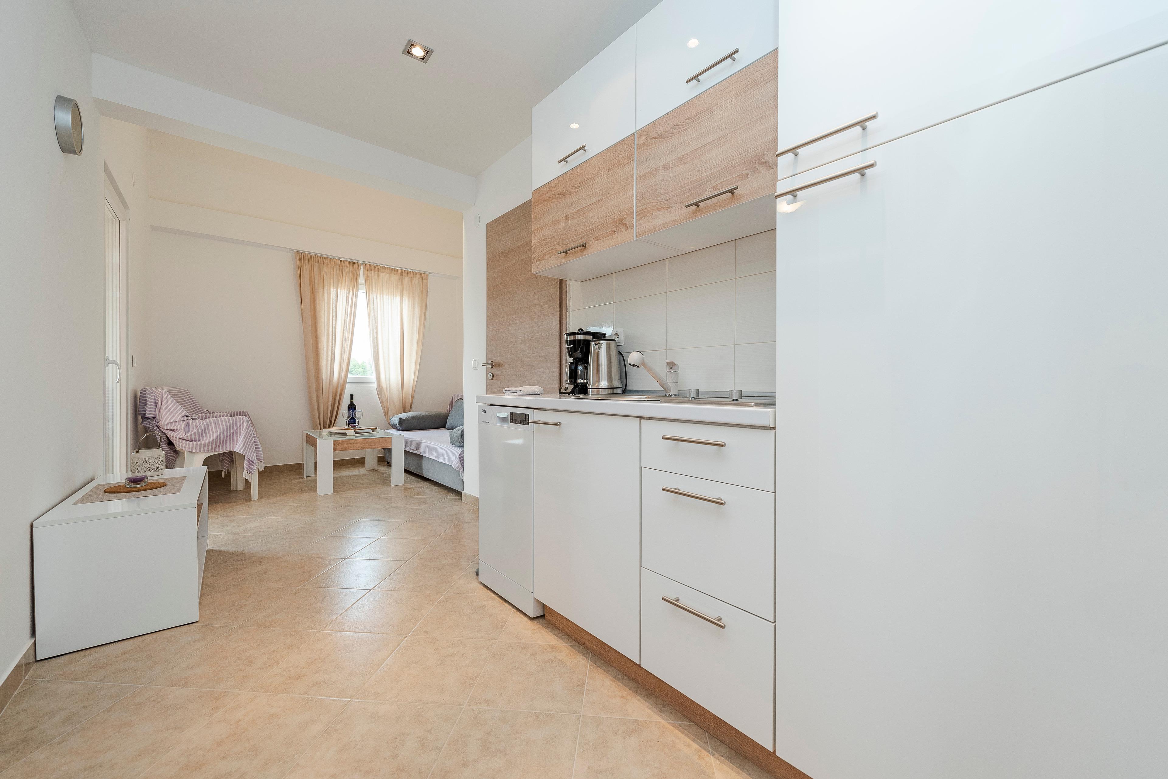 Geräumige und moderne Wohnung (35 m²) befindet sich auf der südlichen Seite der Insel Vir, in einer ruhigen Gegend, nur 100m von Bucht und Strand Luka.
