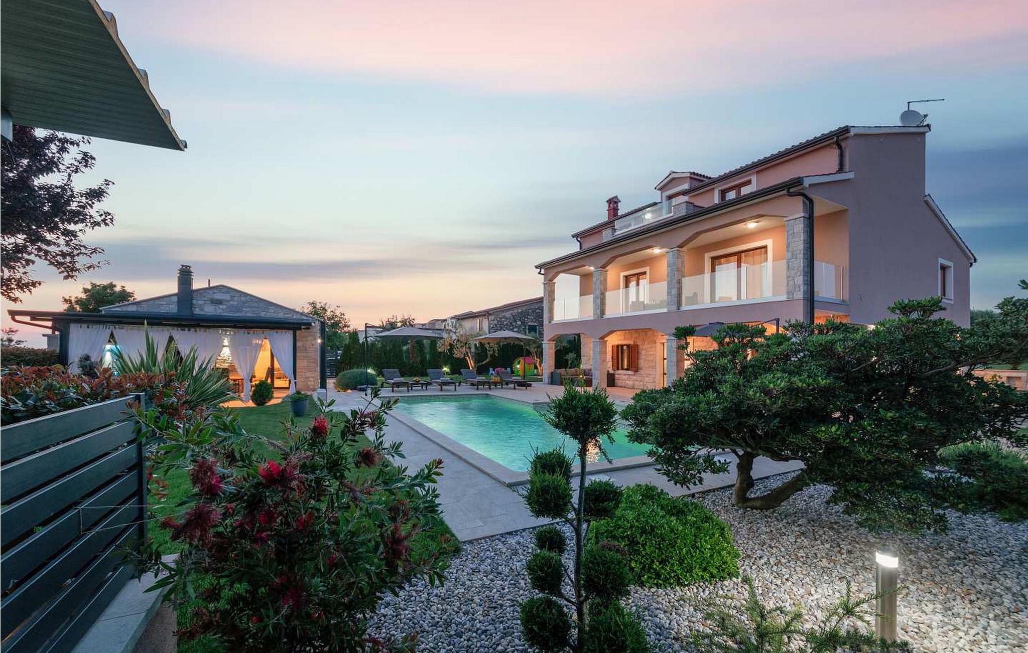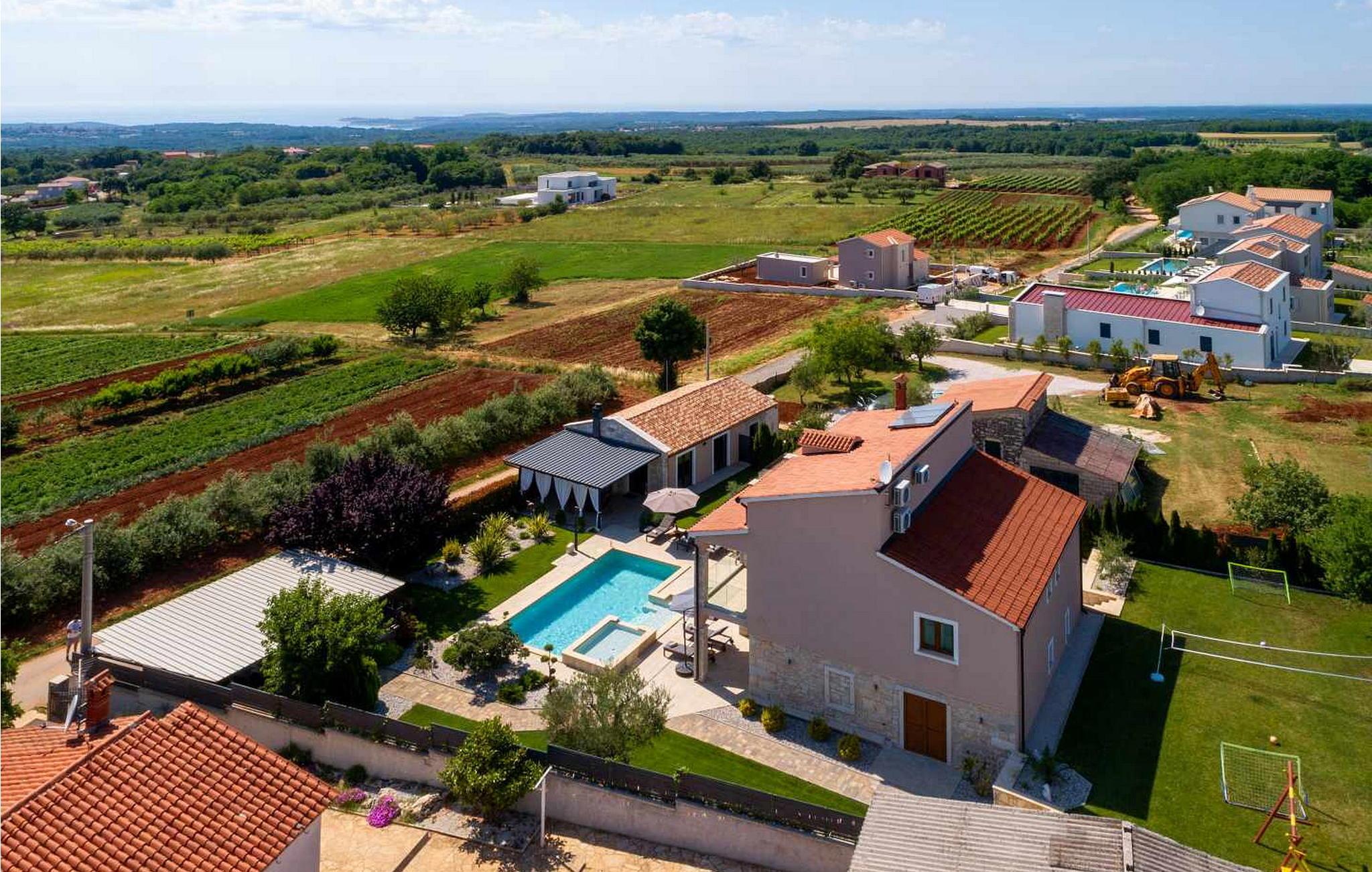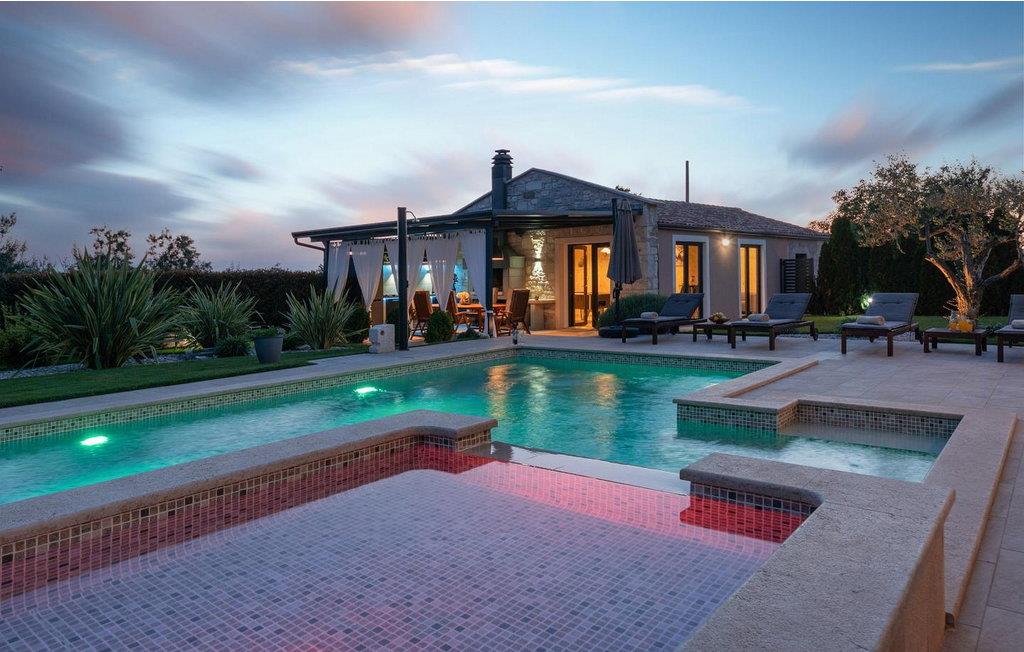 Das Ferienhaus ist 6,5 km vom Meer und 15 km von der Stadt Porec entfernt. Auf gut gepflegten und komplett umzäunten Grundstück von 1 200 qm bietet es den Gästen einen Pool mit Kinderpool, überdachte Terrasse mit Grill, Tischtennisplatte, Badmintonplatz, ein Häuschen von 40 qm mit Billardtisch und Whirlpool und drei Parkplätze.