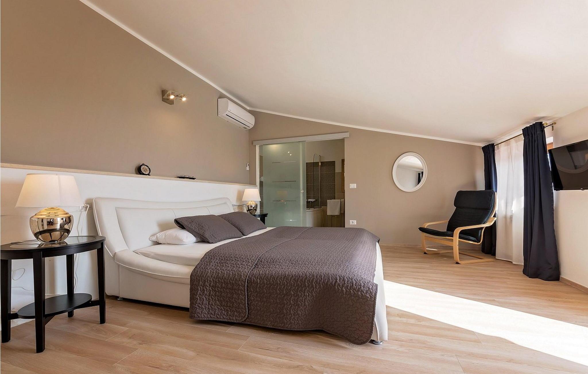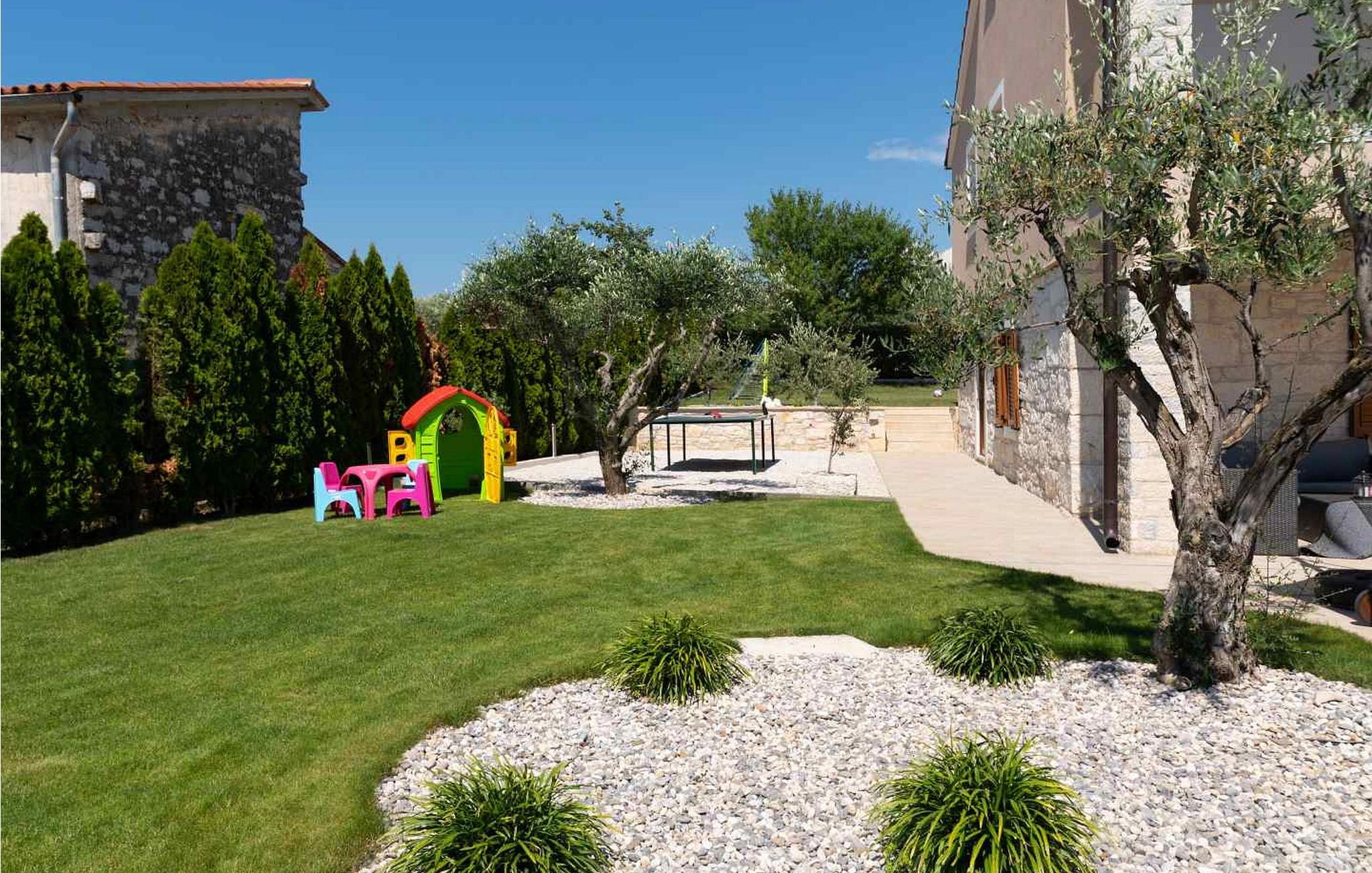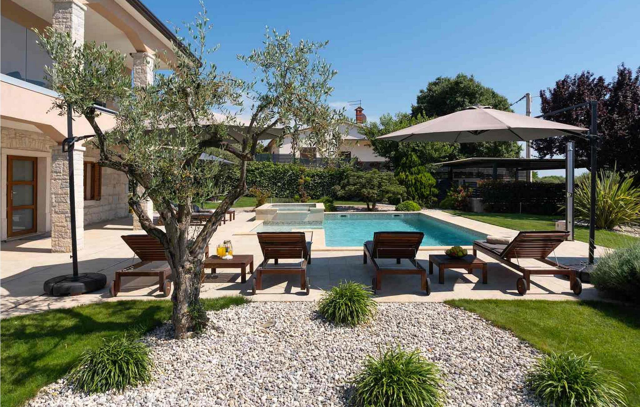 Das Ferienhaus ist 6,5 km vom Meer und 15 km von der Stadt Porec entfernt. Auf gut gepflegten und komplett umzäunten Grundstück von 1 200 qm bietet es den Gästen einen Pool mit Kinderpool, überdachte Terrasse mit Grill, Tischtennisplatte, Badmintonplatz, ein Häuschen von 40 qm mit Billardtisch und Whirlpool und drei Parkplätze.