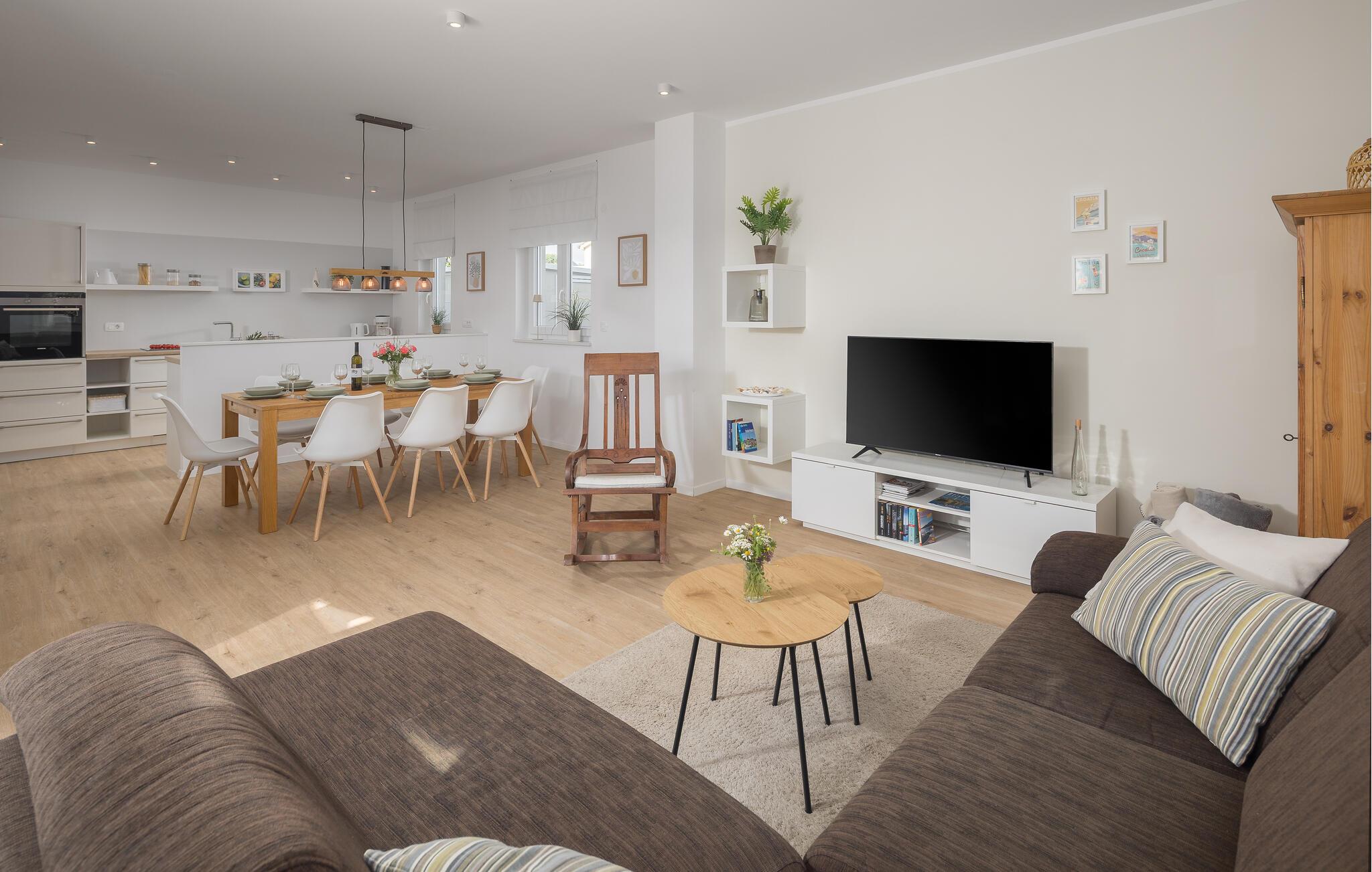 Wenige Kilometer von der Küste entfernt heißt Sie dieses große Ferienhaus willkommen. Die helle und ansprechende Einrichtung wird bei Ihnen und Ihrer Familie direkt das Gefühl von zuhause vermitteln. Auf zwei Etagen können Sie die angenehmen Schlafzimmer nutzen und sich zum Buch lesen auf den Balkon sitzen, oder das Beisammen im Wohnzimmer genießen, wo Spiele-, Film- und Kochabende abwechseln stattfinden können.
