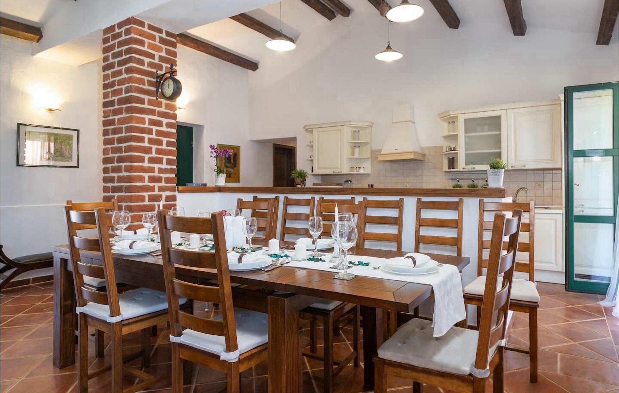 Die Villa Una ist ein schönes rustikales istrisches Steinhaus mit privatem Pool, gelegen im schönen Zentralistrien. Es verfügt über alle notwendigen Annehmlichkeiten für einen angenehmen und entspannten Urlaub. Die Villa Una wird Sie in 4 gemütlichen Schlafzimmern unterbringen. Drei befinden sich im Erdgeschoß, von denen eins mit separaten Privat-Eingang, und 1 Schlafzimmer befindet sich im Obergeschoß, mit eigenem Balkon. Das Erdgeschoß beherbergt auch eine komplett eingerichtete Küche, sowie ein Wohnzimmer mit Essereich. Im Außenbereich können Sie den überdachten Loungeberreich mit Ausblick zum Pool zum entspannen benutzen, sowie den zusätzlichen Essbereich mit Grill, um ein schmackhaftes Gericht mit Ihrer Familie zu genießen. Der Garten ist sehr geeignet für Kinder, aber ist auch einladend für verschiedene Sportaktivitäten wie Badminton. Ob Sie nun entscheiden ihre Urlaubszeit beim einladenden Pool zu verbringen zu Schwimmen und Sonnenbaden, oder am gemütlichen und charmantem Kamin versammelt – die Villa Una wird Sie nicht enttäuschen.Die Villa Una befindet sich in dem Dorf Baldasi. Baldasi ist ein kleines Dorf nur eine kurze Autofahrt von der idyllischen mittelalterlichen Ortschaft Vizinada entfernt, in ruhiger Abgeschiedenheit und doch integriert ins Geschehen der Ortschaft. Falls Sie Vizinada besuchen, werden Sie bei der Besichtigung dieser kleinen Stadt die wunderschöne Aussicht von dem Hügel über das Mirna-Tal und die blauen und grünen Farben Istriens genießen können. Auto wird empfohlen. Wunderschöne Strände in Porec Umgebung sind nur eine kurze Autofahrt entfernt.