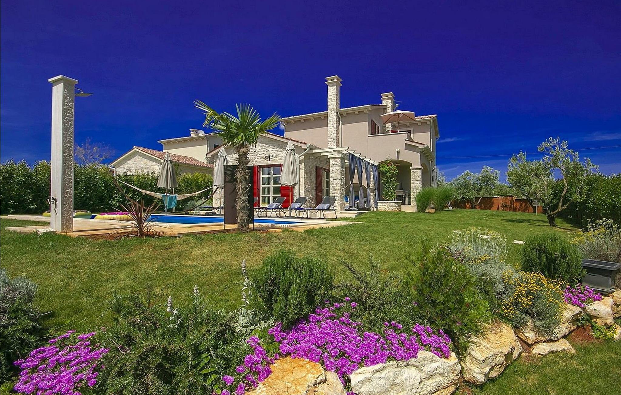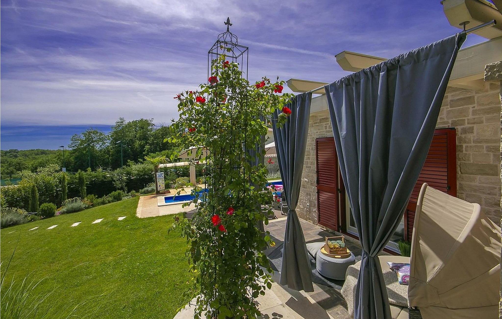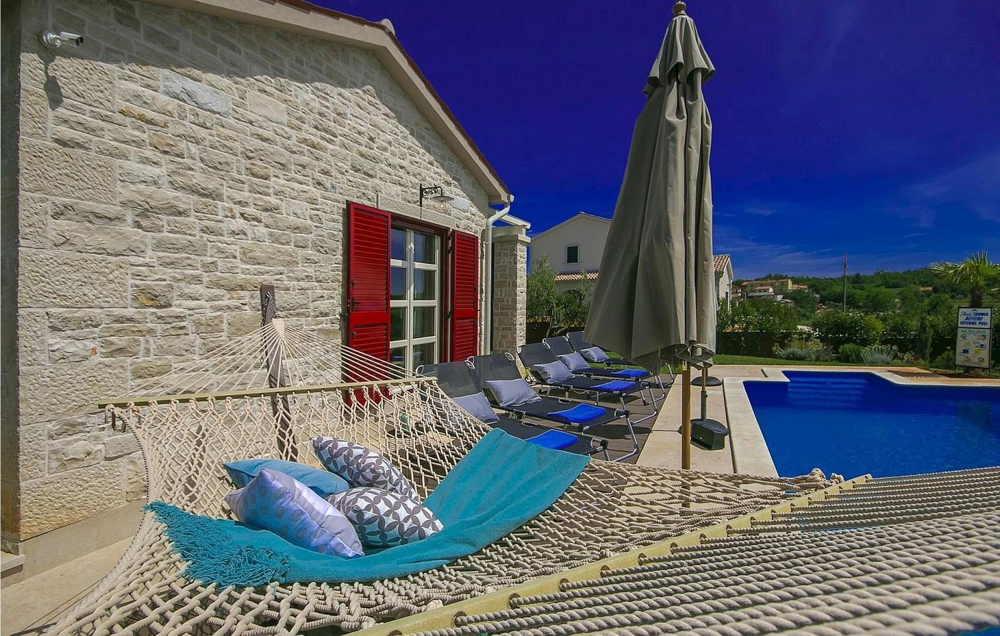 Nur ein paar Meter vom Haus, geht der gepflegte Fahrrad-/Wanderweg Parenzana vorbei der bis zum Anfang des 20. Jahrhundert eins der wichtigsten Eisenbahnlinien Istriens war, der durch Koper bis hin zu Trieste ging. Das Haus wurde im Jahr 2015 neu gebaut und eingerichtet im modernen Design mit vielen Details. Das Haus ist voll klimatisiert. Den Gästen steht ein offener Pool von 24 qm, überdachte Terrasse mit Sitzgarnitur und Kamin und Grill, Parkplatz für zwei Autos und ein umzäuntes Gelände zur Verfügung.
