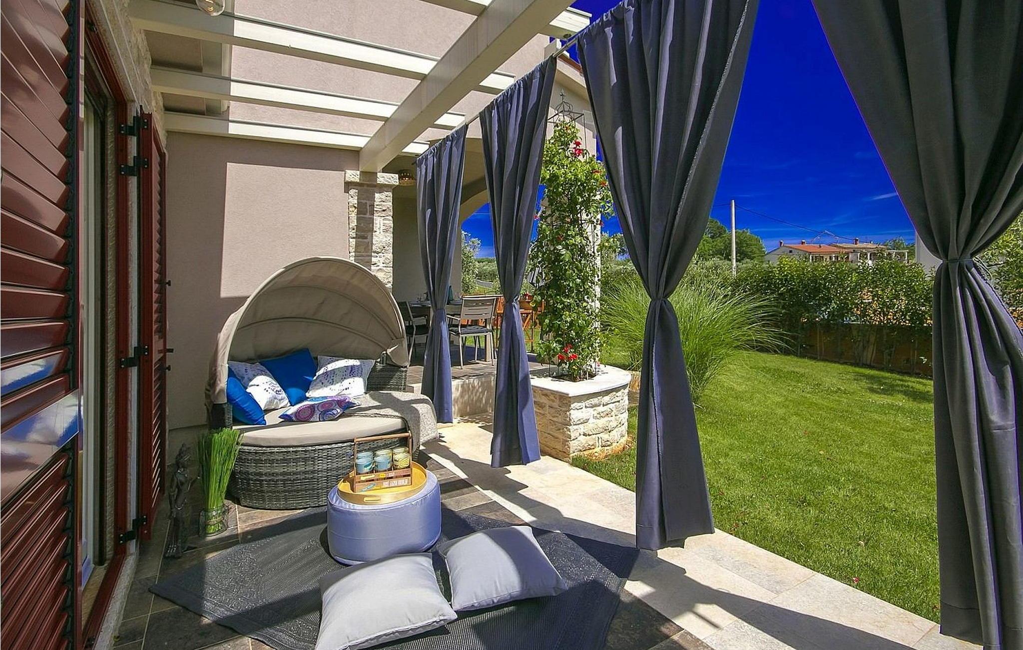 Villa Emily ist ein neugebautes und modernes Steinhaus im Dorf Vrh Lasici in der Nähe von Vizinada und liegt in einem Weinanbaugebiet.
