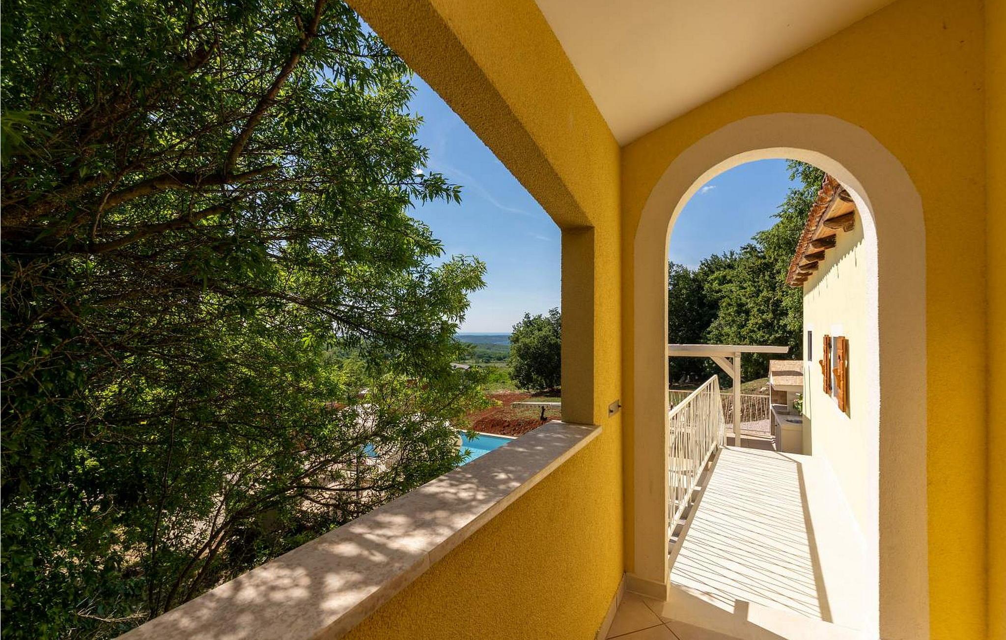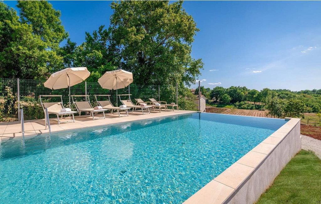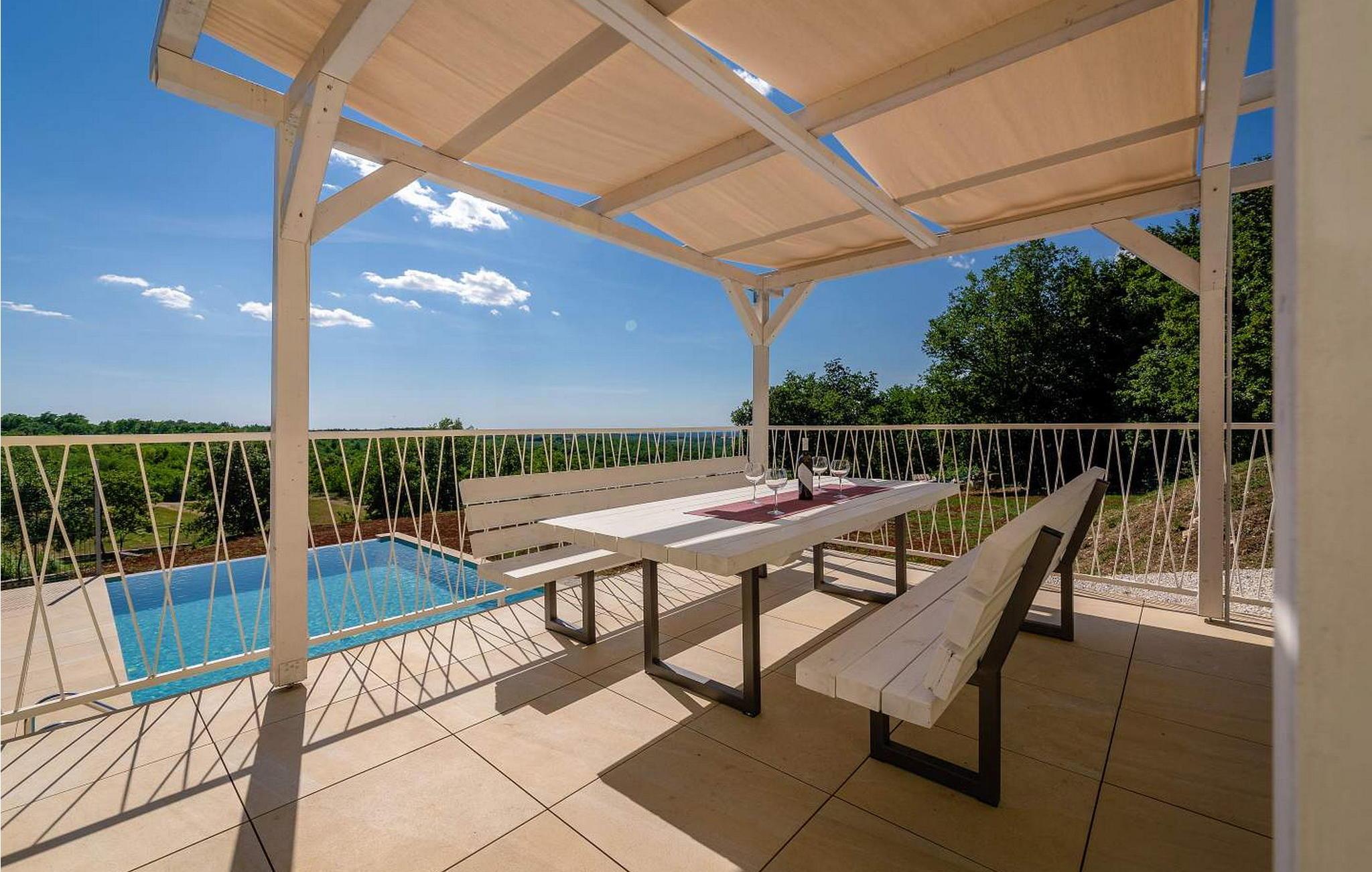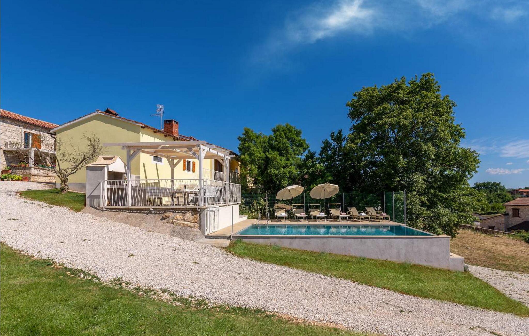 Willkommen in der Villa Vista Mare, einem charmanten einstöckigen Ferienhaus mit atemberaubendem Meerblick und der perfekten Umgebung für einen erholsamen Urlaub. Diese schöne Villa liegt auf einem komplett umzäunten Grundstück und bietet Privatsphäre und Ruhe während Ihres gesamten Aufenthalts. Genießen Sie den atemberaubenden Infinity-Pool, wo Sie die weite Aussicht genießen können, oder speisen Sie im Freien in der Sommerküche mit Esstisch, perfekt für Mahlzeiten an der frischen Luft. Mit zwei Parkplätzen und einem nahe gelegenen Kinderspielplatz ist diese Villa ideal für Familien. Die Gegend um Vižinada ist für ihre außergewöhnlichen Weinproduzenten bekannt und bietet eine Kostprobe der besten Angebote der Region. Nur 16 km entfernt im Ferienort Lanterna finden Sie eine Reihe von Freizeitaktivitäten und wunderschön ausgestattete Strände. Die beliebte Stadt Porec in 17 km Entfernung ist ein Muss. Sie beherbergt die berühmte Euphrasius-Basilika und charmante Straßen voller Restaurants und Bars. Die 110 m² große Villa verfügt über ein gemütliches Wohnzimmer mit Zugang zum Balkon, ein Esszimmer und eine voll ausgestattete Küche. Zwei klimatisierte Schlafzimmer mit Satellitenfernsehen, ein Einzelzimmer und ein Badezimmer vervollständigen diesen einladenden Raum und machen die Villa Vista Mare zu einem wunderbaren Rückzugsort für Ihren Urlaub in Istrien. Bitte beachten Sie, dass in dieser Unterkunft keine Jugendgruppen oder Junggesellenabschiede akzeptiert werden. Eine Jugendgruppe in dieser Unterkunft besteht aus Personen im Alter von 26 Jahren oder darunter.