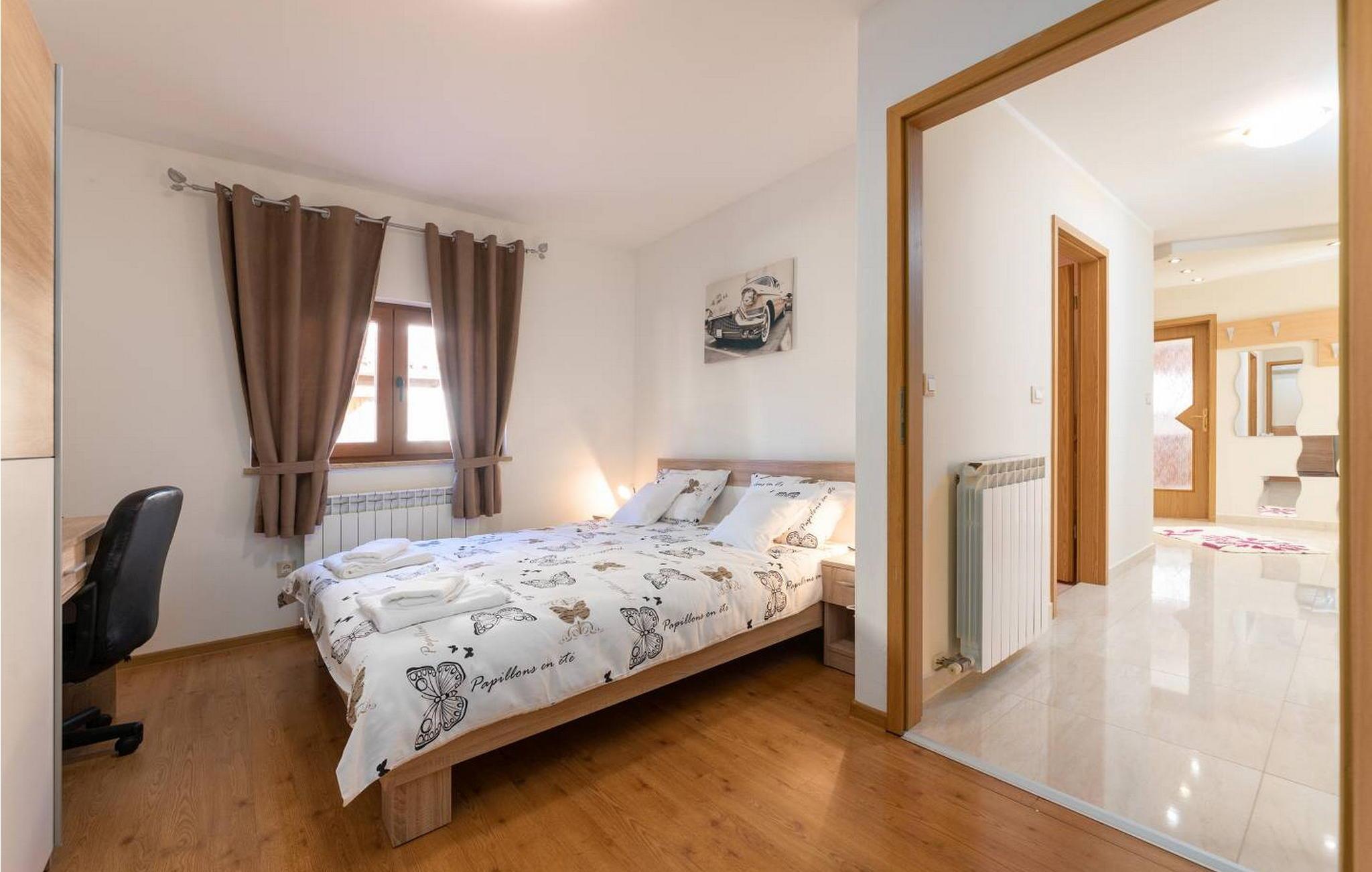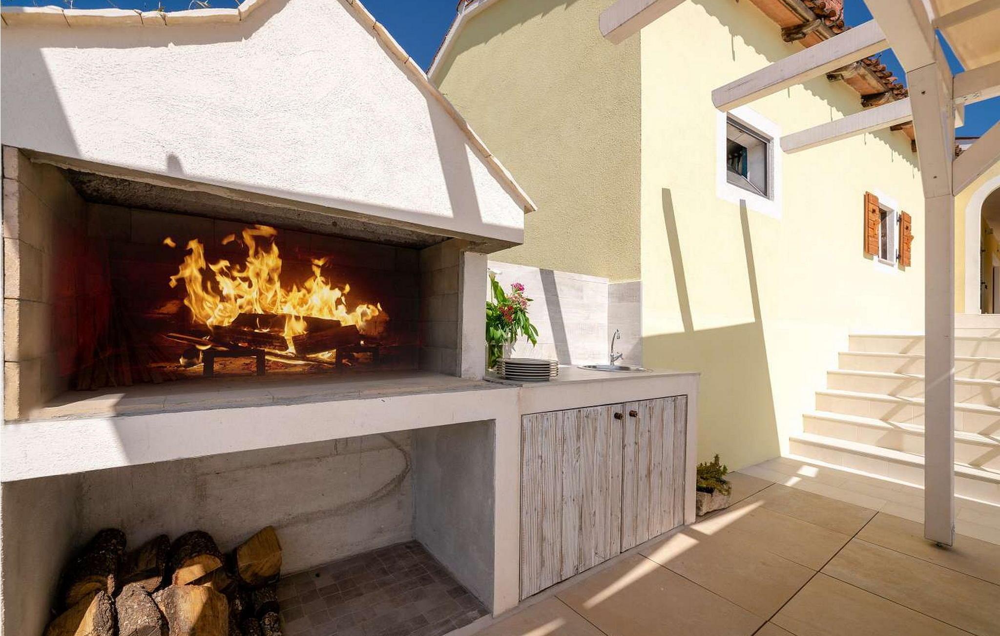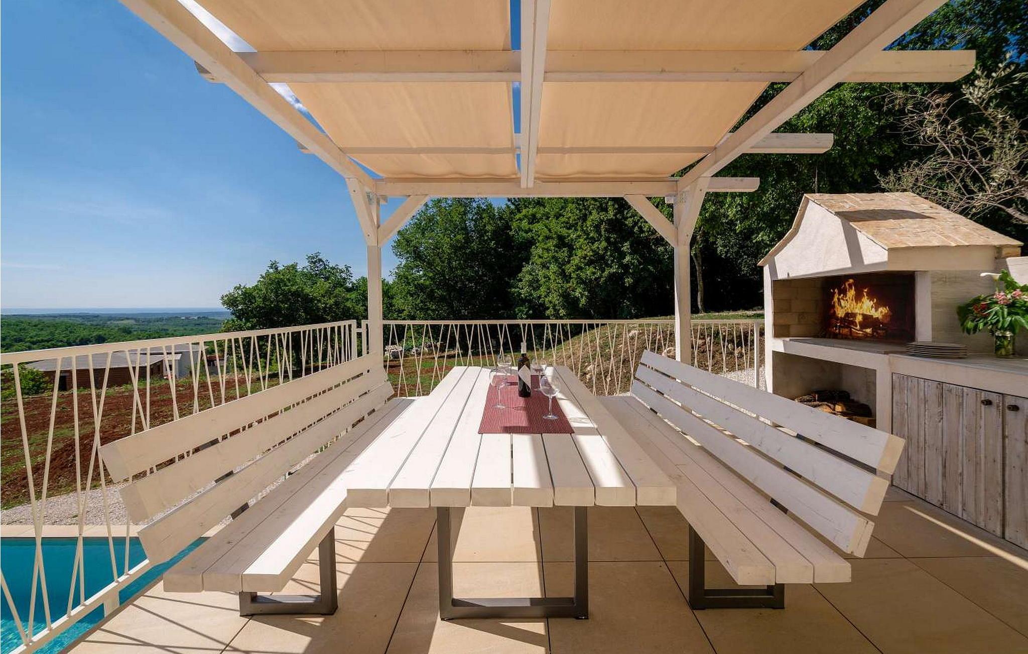Willkommen in der Villa Vista Mare, einem charmanten einstöckigen Ferienhaus mit atemberaubendem Meerblick und der perfekten Umgebung für einen erholsamen Urlaub. Diese schöne Villa liegt auf einem komplett umzäunten Grundstück und bietet Privatsphäre und Ruhe während Ihres gesamten Aufenthalts. Genießen Sie den atemberaubenden Infinity-Pool, wo Sie die weite Aussicht genießen können, oder speisen Sie im Freien in der Sommerküche mit Esstisch, perfekt für Mahlzeiten an der frischen Luft. Mit zwei Parkplätzen und einem nahe gelegenen Kinderspielplatz ist diese Villa ideal für Familien. Die Gegend um Vižinada ist für ihre außergewöhnlichen Weinproduzenten bekannt und bietet eine Kostprobe der besten Angebote der Region. Nur 16 km entfernt im Ferienort Lanterna finden Sie eine Reihe von Freizeitaktivitäten und wunderschön ausgestattete Strände. Die beliebte Stadt Porec in 17 km Entfernung ist ein Muss. Sie beherbergt die berühmte Euphrasius-Basilika und charmante Straßen voller Restaurants und Bars. Die 110 m² große Villa verfügt über ein gemütliches Wohnzimmer mit Zugang zum Balkon, ein Esszimmer und eine voll ausgestattete Küche. Zwei klimatisierte Schlafzimmer mit Satellitenfernsehen, ein Einzelzimmer und ein Badezimmer vervollständigen diesen einladenden Raum und machen die Villa Vista Mare zu einem wunderbaren Rückzugsort für Ihren Urlaub in Istrien. Bitte beachten Sie, dass in dieser Unterkunft keine Jugendgruppen oder Junggesellenabschiede akzeptiert werden. Eine Jugendgruppe in dieser Unterkunft besteht aus Personen im Alter von 26 Jahren oder darunter.