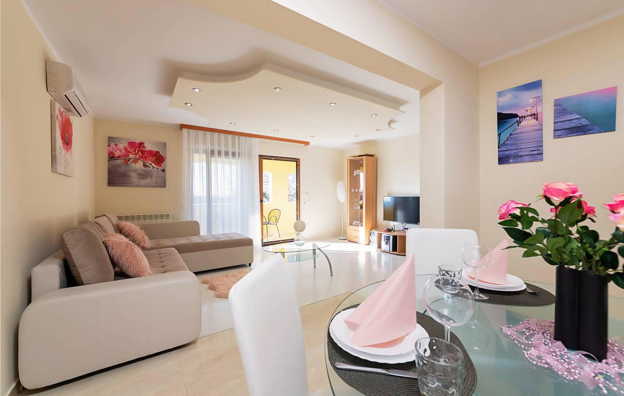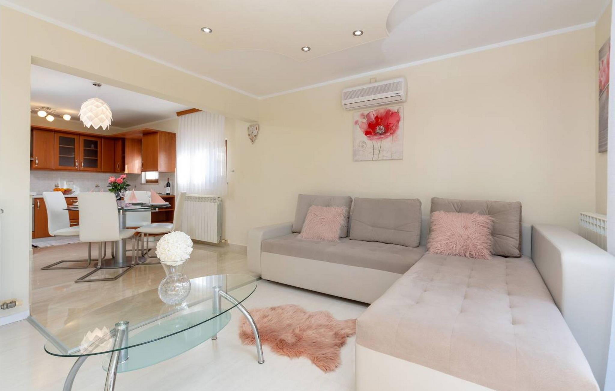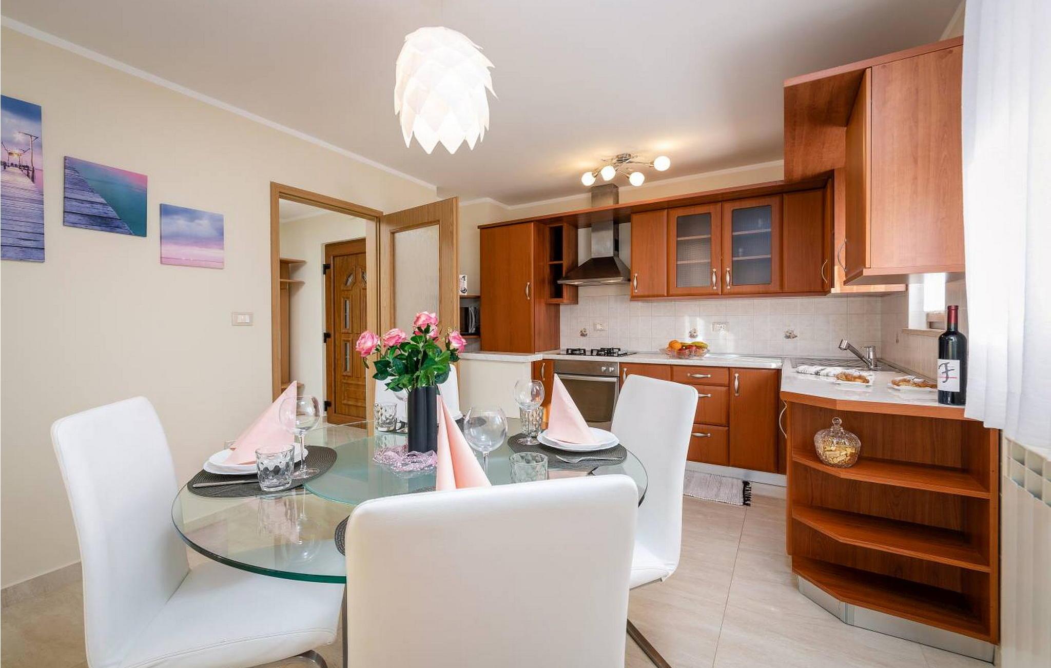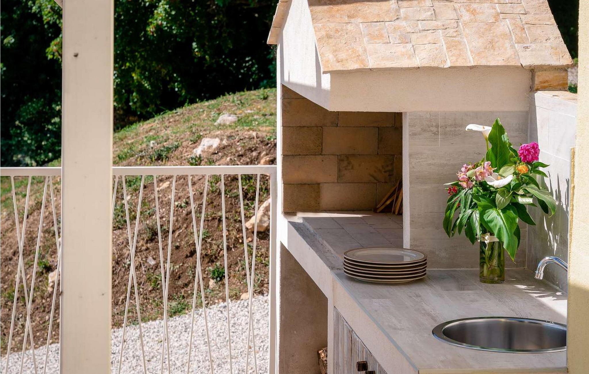 Willkommen in der Villa Vista Mare, einem charmanten einstöckigen Ferienhaus mit atemberaubendem Meerblick und der perfekten Umgebung für einen erholsamen Urlaub. Diese schöne Villa liegt auf einem komplett umzäunten Grundstück und bietet Privatsphäre und Ruhe während Ihres gesamten Aufenthalts. Genießen Sie den atemberaubenden Infinity-Pool, wo Sie die weite Aussicht genießen können, oder speisen Sie im Freien in der Sommerküche mit Esstisch, perfekt für Mahlzeiten an der frischen Luft. Mit zwei Parkplätzen und einem nahe gelegenen Kinderspielplatz ist diese Villa ideal für Familien. Die Gegend um Vižinada ist für ihre außergewöhnlichen Weinproduzenten bekannt und bietet eine Kostprobe der besten Angebote der Region. Nur 16 km entfernt im Ferienort Lanterna finden Sie eine Reihe von Freizeitaktivitäten und wunderschön ausgestattete Strände. Die beliebte Stadt Porec in 17 km Entfernung ist ein Muss. Sie beherbergt die berühmte Euphrasius-Basilika und charmante Straßen voller Restaurants und Bars. Die 110 m² große Villa verfügt über ein gemütliches Wohnzimmer mit Zugang zum Balkon, ein Esszimmer und eine voll ausgestattete Küche. Zwei klimatisierte Schlafzimmer mit Satellitenfernsehen, ein Einzelzimmer und ein Badezimmer vervollständigen diesen einladenden Raum und machen die Villa Vista Mare zu einem wunderbaren Rückzugsort für Ihren Urlaub in Istrien. Bitte beachten Sie, dass in dieser Unterkunft keine Jugendgruppen oder Junggesellenabschiede akzeptiert werden. Eine Jugendgruppe in dieser Unterkunft besteht aus Personen im Alter von 26 Jahren oder darunter.