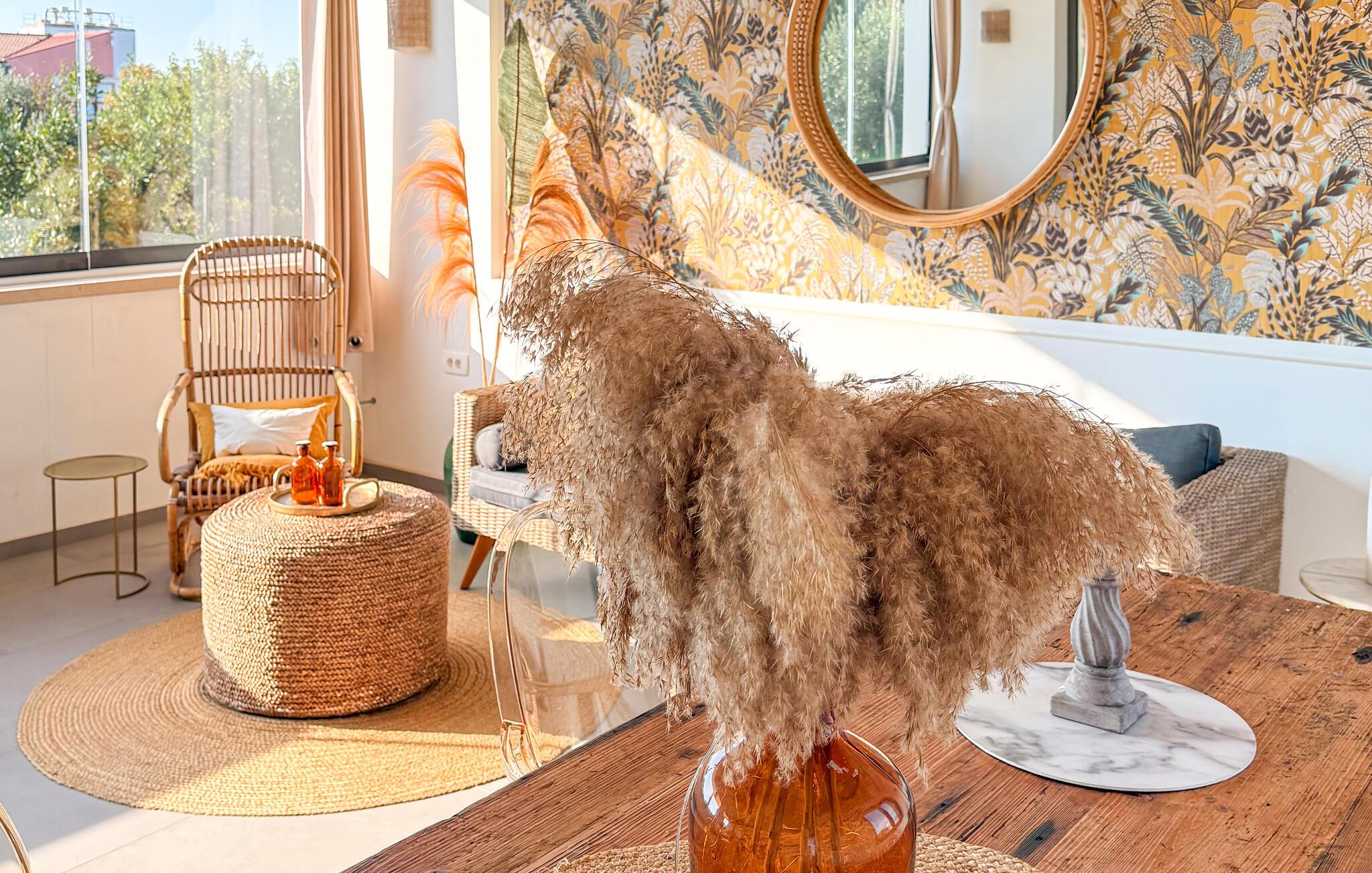 Die gemütliche überdachte Terrasse auf der oberen Etage des Hauses könnte Ihr Lieblingsplatz werden, an dem Sie zum ersten Kaffee am Morgen die Seele baumeln lassen können. Auf der gleichen Ebene befinden sich der offene moderne Wohn- und Kochbereich sowie eine Gästetoilette. Ein Highlight der Villa Casa Juno ist das Poolhaus mit schickem Schlafzimmer für 2 Gäste, Badezimmer und einer eigenen kleinen Küche.