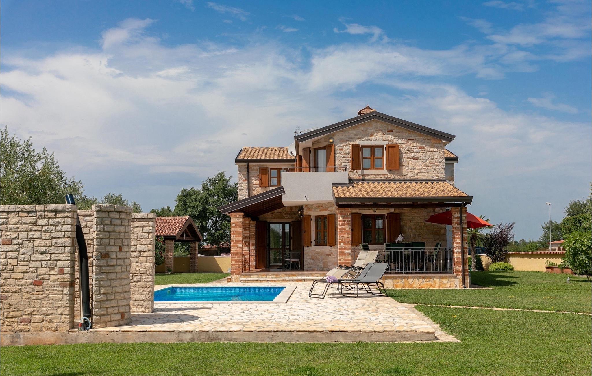 Villa Shirin ist eine wunderschöne Familienvilla umgeben von viel Natur und könnte der ideale Ort für Ihren erholsamen Urlaub in Istrien sein. Sie werden wahrscheinlich die meiste Zeit im wunderschönen Außenbereich der Villa verbringen. Es gibt einen gepflegten Garten, viel Platz zum Spielen für Kinder, einen privaten und beheizbaren Pool mit bequemen Sonnenliegen und einen überdachten Essbereich im Freien mit Holzkohlegrill für die Zubereitung köstlicher Mahlzeiten. Genuss, Entspannung und Spaß kommen hier garantiert auf. Von hier aus gelangen die Gäste in den Wohnbereich im Erdgeschoss, der eine voll ausgestattete Küche mit Essbereich, ein gemütliches Wohnzimmer mit Kamin, ein Badezimmer mit Dusche und ein Schlafzimmer mit Doppelbett umfasst. Drei weitere Schlafzimmer und zwei Badezimmer befinden sich im Obergeschoss. Das erste Schlafzimmer ist klimatisiert und verfügt über einen TV und ein Doppelbett. Das zweite Schlafzimmer enthält ebenfalls ein Doppelbett, hat aber auch eine Klimaanlage und ein eigenes Badezimmer mit Dusche. Das dritte und letzte Schlafzimmer hat eine Klimaanlage und ein Doppelbett. Besucher haben auch Zugang zu einem weiteren Badezimmer mit Badewanne auf dieser Etage. Man kann mit Sicherheit sagen, dass Vila Shirin aufgrund seiner Annehmlichkeiten und seiner Lage ein fantastisches Reiseziel ist, um sich und Ihrer Familie einen wundervollen Urlaub in Istrien zu gönnen. Beginnen Sie also sofort mit der Planung Ihres Urlaubs!Die Villa Shirin befindet sich in der kleinen Stadt Višnjan, in der Nähe von Porec und Novigrad. Mit ihrer Lage inmitten der Natur und dennoch in der Nähe von Städten, Geschäften und Stränden ist diese Villa eine gute Wahl für einen erholsamen Urlaub mit Ihrer Familie und Freunden. Der Strand ist nur etwa 8 Kilometer mit dem Auto entfernt in der Stadt Porec. Diese Stadt bietet Ihnen atemberaubende Strände und Buchten, in denen Sie den ganzen Tag im kristallklaren und türkisfarbenen Wasser der Adria schwimmen und den Sommer wirklich genießen können. Sie können erstaunliche Architektur und historische Stätten sehen, preisgekrönte Restaurants und charmante Tavernen besuchen, um einige traditionelle Gerichte aus dieser Region zu probieren, und die Einheimischen werden Sie überall herzlich willkommen heißen. Während Ihres Aufenthalts in der Villa Shirin können Sie auch charmante kleinere Städte wie Motovun, Novigrad und Umag besuchen, wo Sie definitiv den istrischen Geist spüren werden. Zögern Sie also nicht, diese atemberaubende Region zu besuchen; Sie werden einen Urlaub verbringen, an den Sie sich erinnern werden!