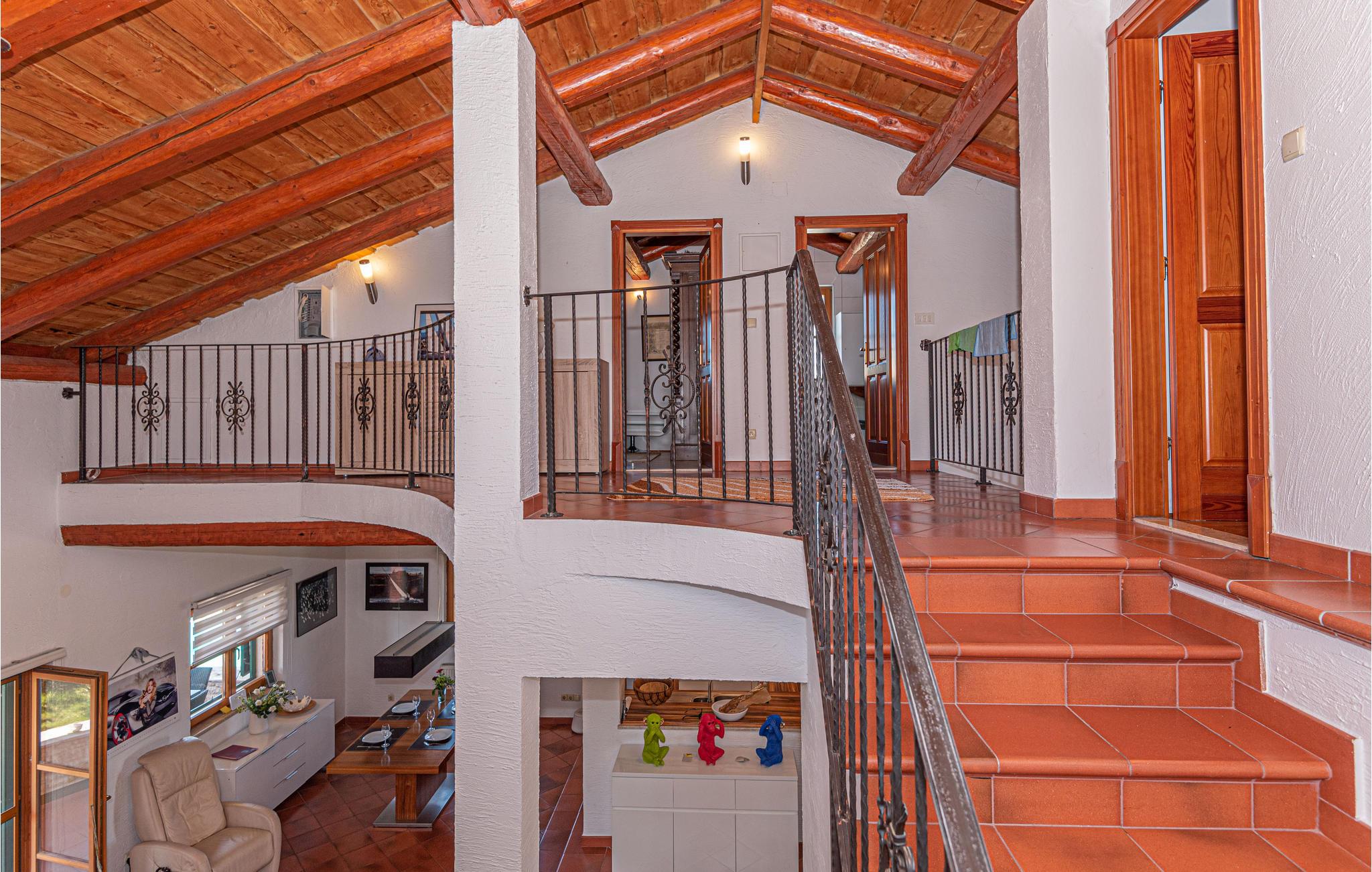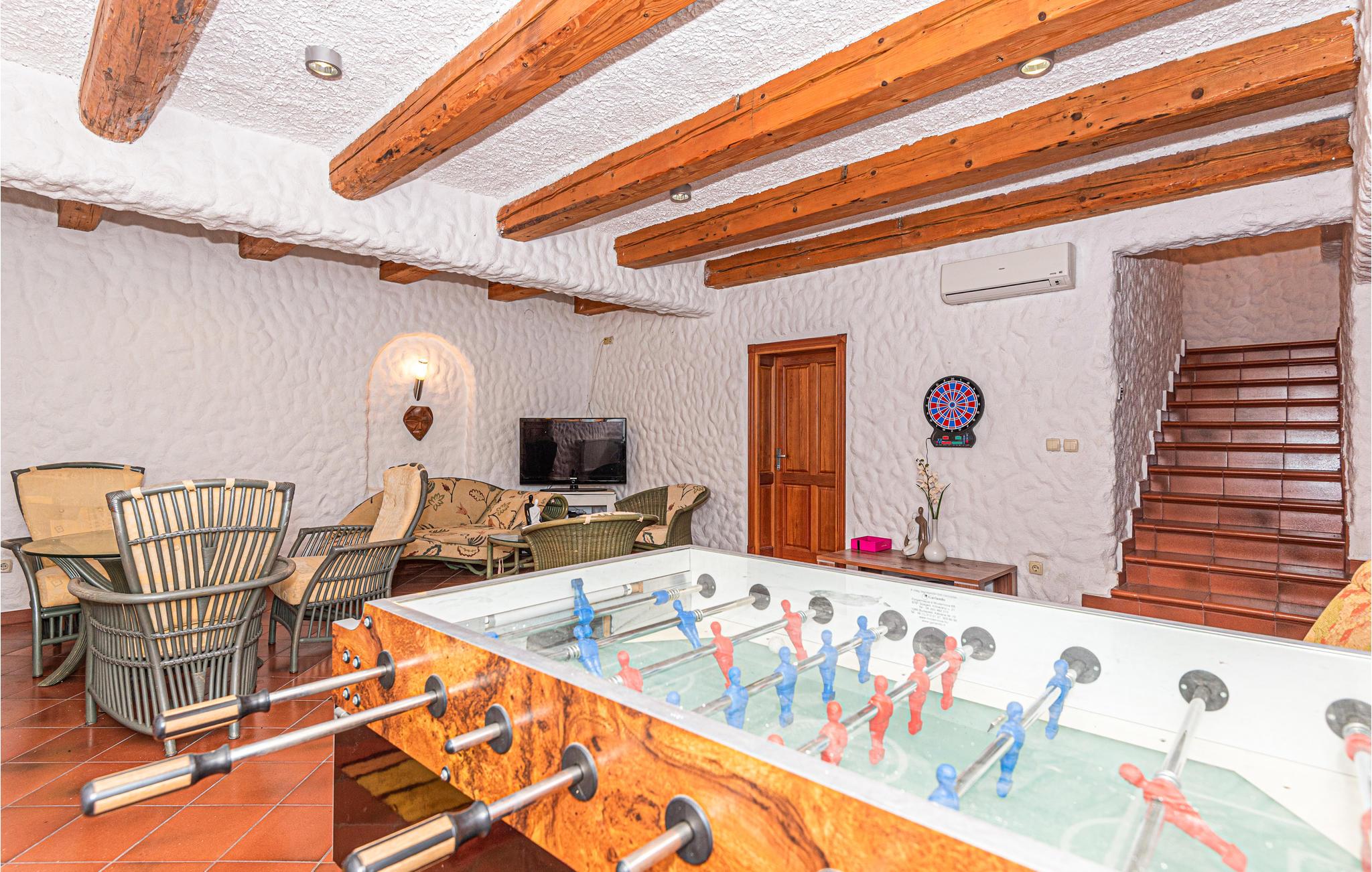 Genießen Sie Ihren Aufenthalt in diesem stilvollen Ferienhaus, das Ihnen eine erholsame Auszeit bietet. Das offene Raumkonzept verspricht eine angenehme und gesellige Atmosphäre, während die hochwertige Einrichtung für Komfort sorgt. Das Haus verfügt über ein geräumiges Wohnzimmer mit einem Massagesessel, in dem Sie sich entspannen können. Angrenzend befinden sich ein Essbereich und eine voll ausgestattete Küche. Im Untergeschoss erwartet Sie ein eigener Wellness- und Unterhaltungsbereich mit Sauna sowie einem Spielraum mit Billard, Dart und Tischfußball.