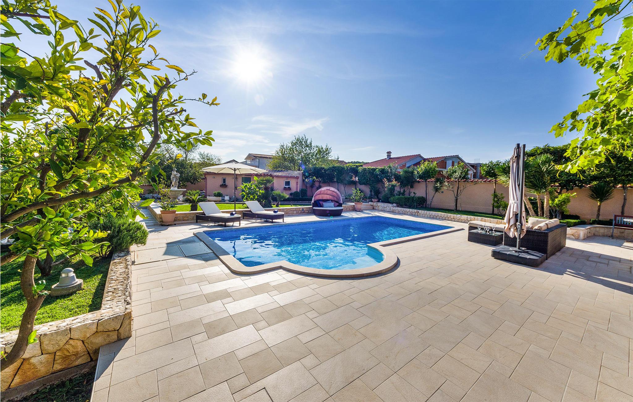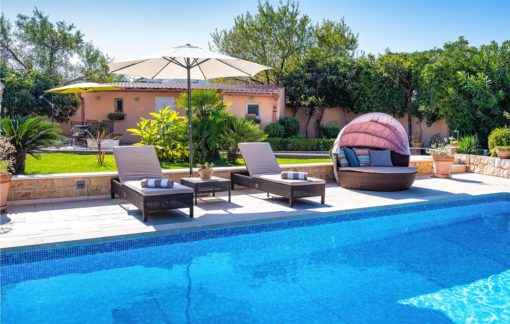 Der schön angelegte Garten wird zu Ihrem zweiten Wohnzimmer, den hier können Sie nicht nur stundenlang im Pool baden, sondern auch auf dem Sonnendeck und den Gartenmöbeln verweilen, Boule spielen oder am Abend zum Grillen zusammenkommen.