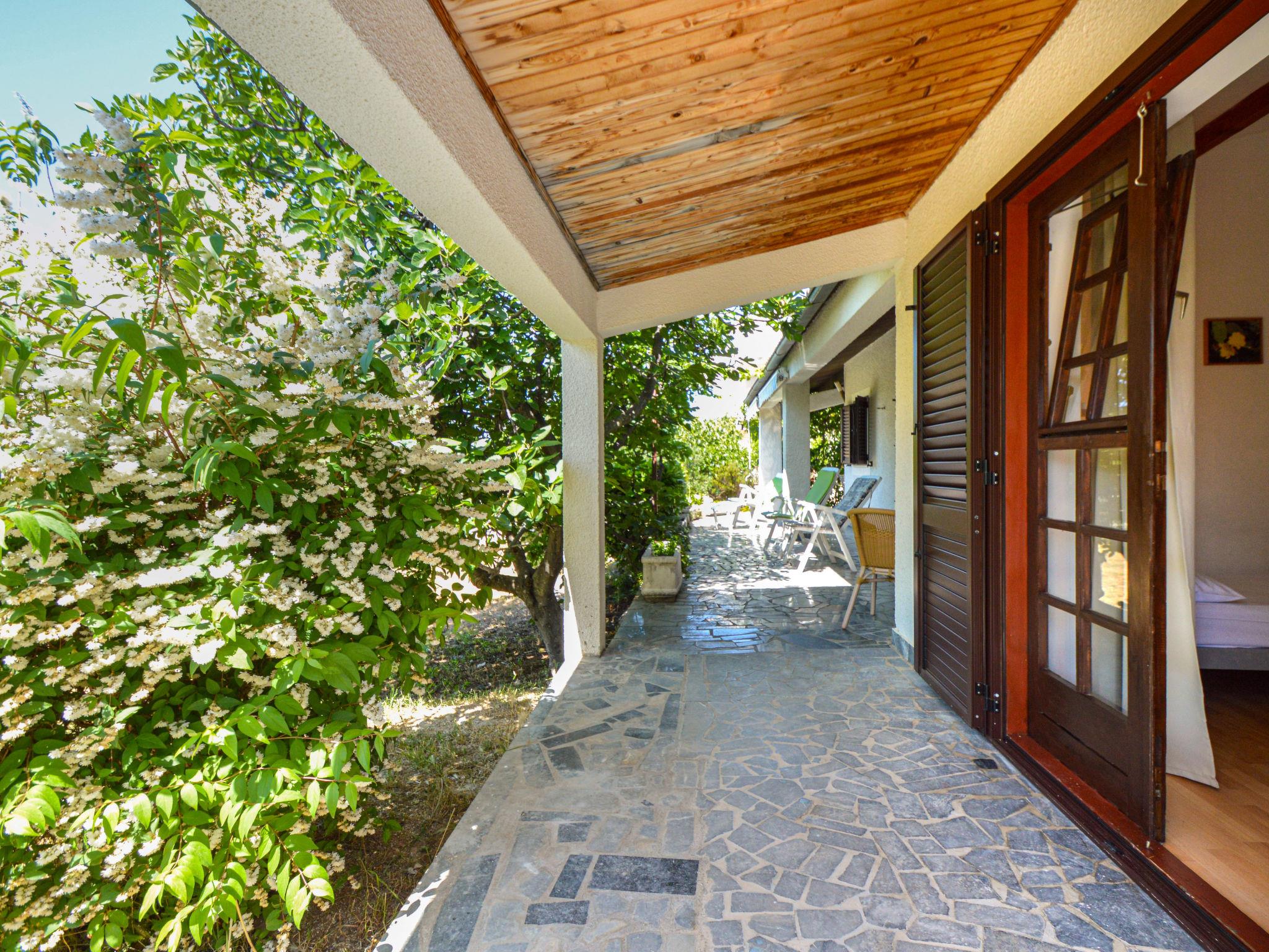 Einfamilienhaus "Karmela", auf 2 Stockwerken. Ausserhalb des Ortes, 1 km vom Zentrum, ruhige, sonnige, erhöhte Lage, 500 m vom Meer. Zur Alleinbenutzung: Grundstück 850 m2, Garten (eingezäunt) mit Bäumen, Naturgarten, Parkplatz beim Haus auf dem Grundstück. Einkaufsgeschäft 500 m, Restaurant 1 km, Bushaltestelle 2.4 km, Kieselstrand, Steinstrand 500 m.