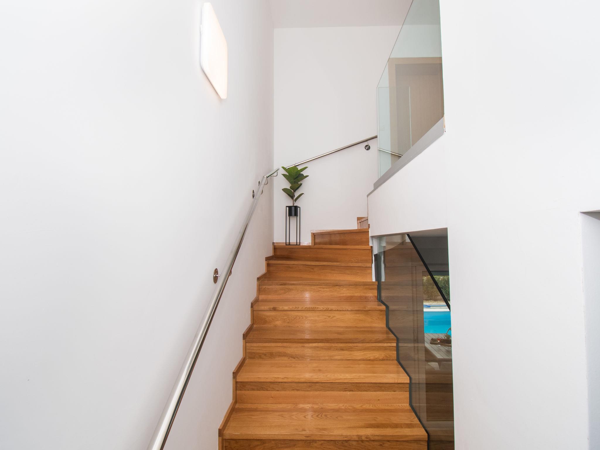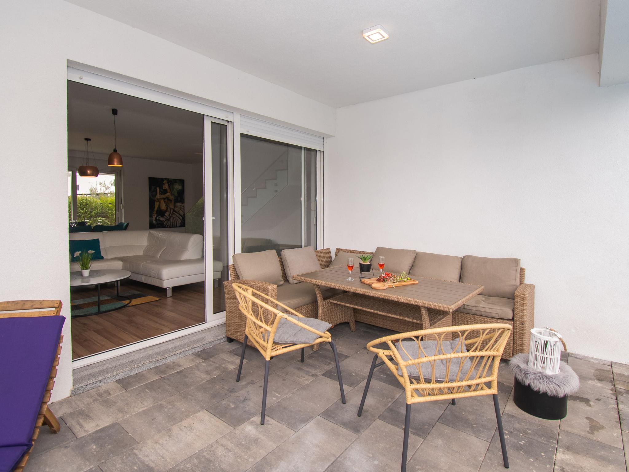 5-Zimmer-Doppelhaushälfte 150 m2 auf 2 Stockwerken. Wohn-/Esszimmer 40 m2 mit Sat-TV (Flachbildschirm), Klimaanlage. Ausgang zur Terrasse. 1 Zimmer mit 1 franz. Bett (180 cm, Länge 200 cm), Klimaanlage. Offene Küche (Backofen, Geschirrspüler, 4 Glaskeramikplatten, Mikrowelle, Tiefkühler, elektrische Kaffeemaschine). Dusche/WC. Obergeschoss: 1 Zimmer mit 1 franz. Bett (200 cm, Länge 210 cm), Dusche/WC und Sat-TV (Flachbildschirm), Klimaanlage. Ausgang zur Terrasse. 1 Zimmer mit 1 franz. Bett (200 cm, Länge 210 cm), Dusche/WC und Klimaanlage. Ausgang zur Terrasse. 1 Zimmer mit 1 franz. Bett (200 cm, Länge 210 cm), Dusche/WC und Klimaanlage. Warmluftheizung. Terrasse 20 m2, Terrasse 15 m2. Terrassenmöbel. Sicht auf das Schwimmbad. Zur Verfügung: Safe, Haartrockner. Internet (Wireless LAN, gratis).