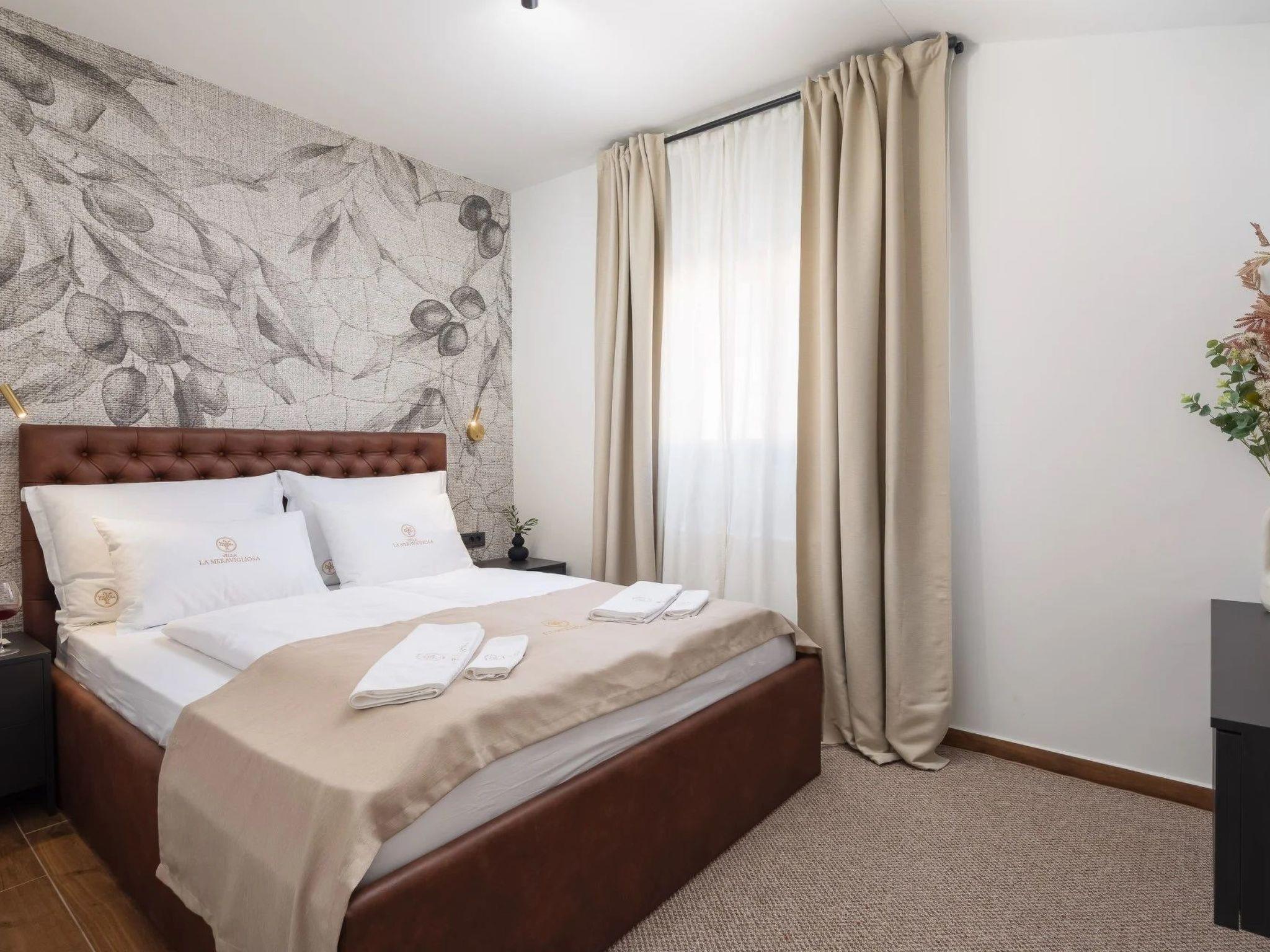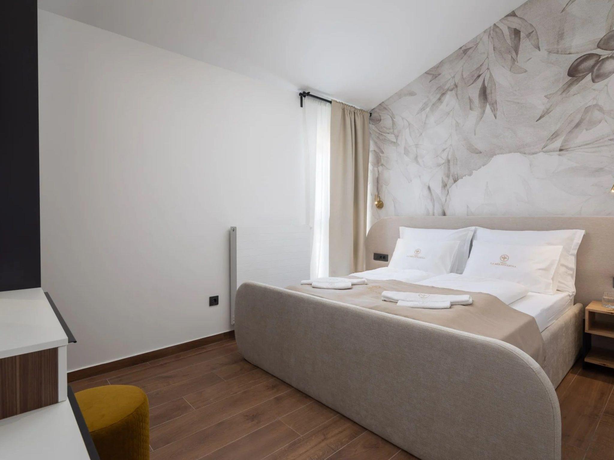 Die Villa La Meravigliosa bietet Platz für bis zu 8 Gäste in 4 Doppelzimmern. 3 der Schlafzimmer verfügen über ein eigenes Bad. Die gesamte Villa befindet sich im Erdgeschoss. Das Willkommenspaket erwartet Sie in der voll ausgestatteten Küche, die mit dem Essbereich verbunden ist, und einem gemütlichen Wohnzimmer.