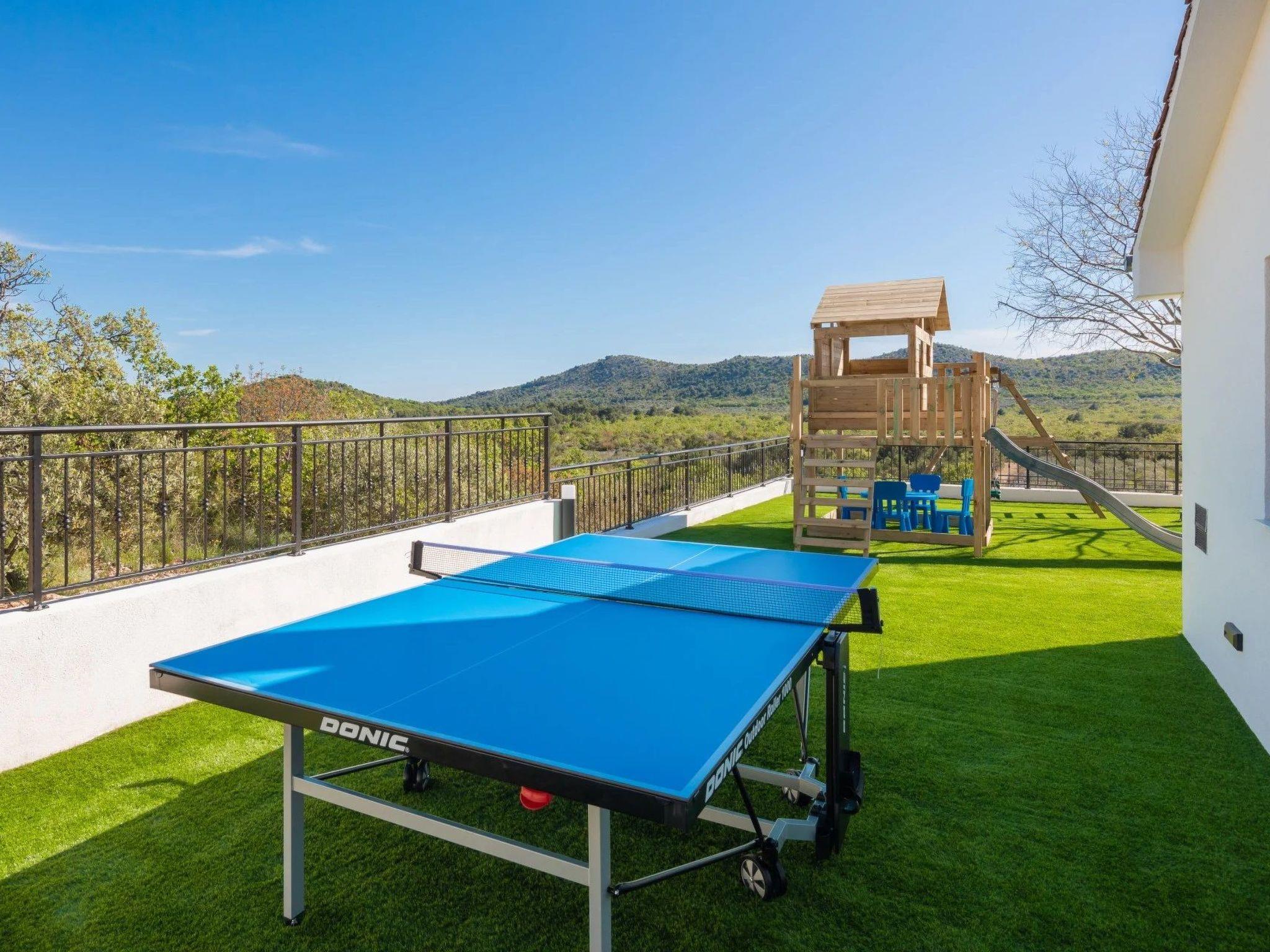 Der extra große Garten ist komplett eingezäunt und bietet Ihnen viel Privatsphäre. Im Hof ??gibt es einen Kinderspielplatz und Tischtennis. Auf dem Sonnendeck gibt es einen privaten Pool mit Liegestühlen. Außerdem gibt es einen Grillplatz mit einem Esstisch im Freien.