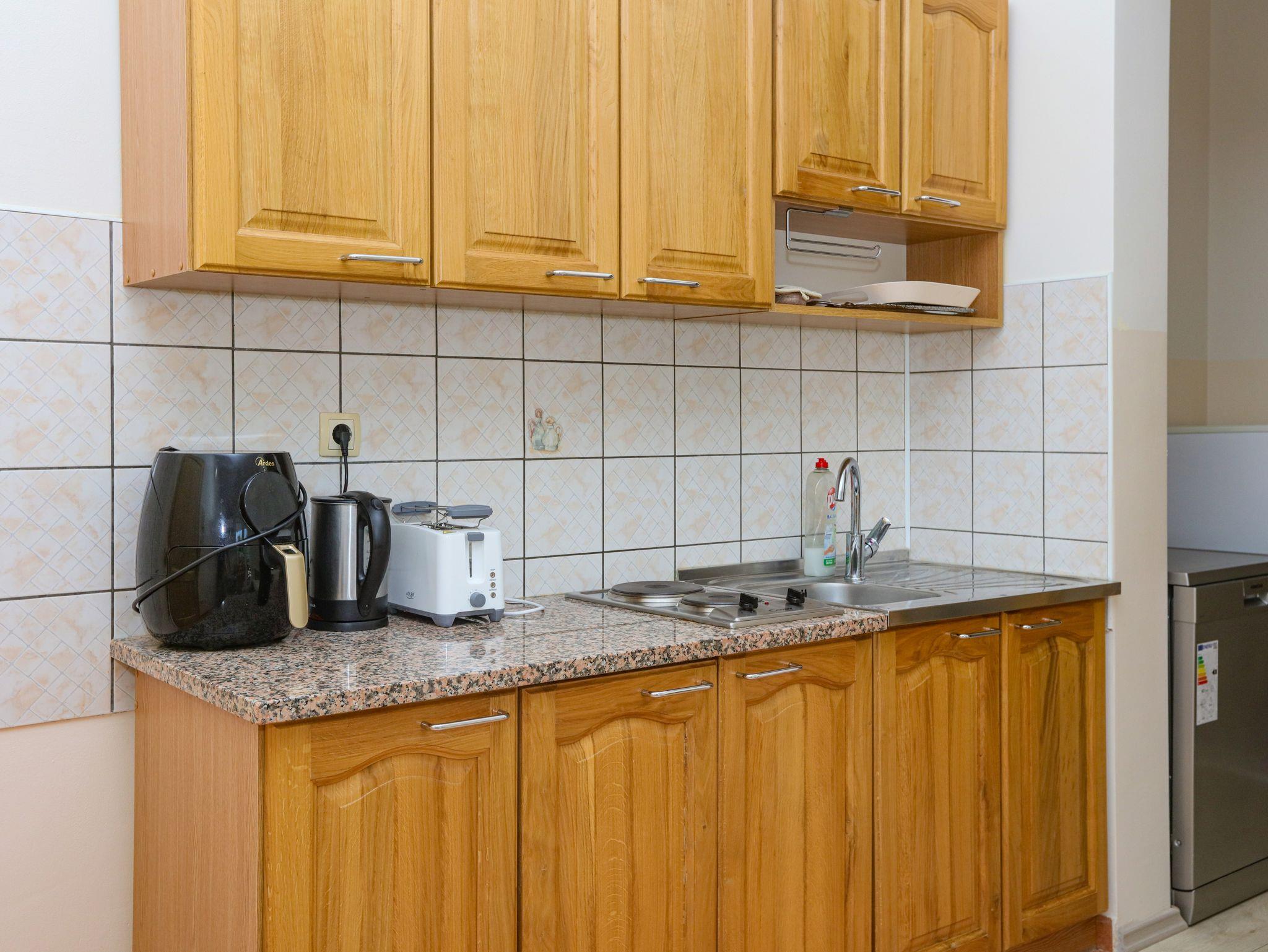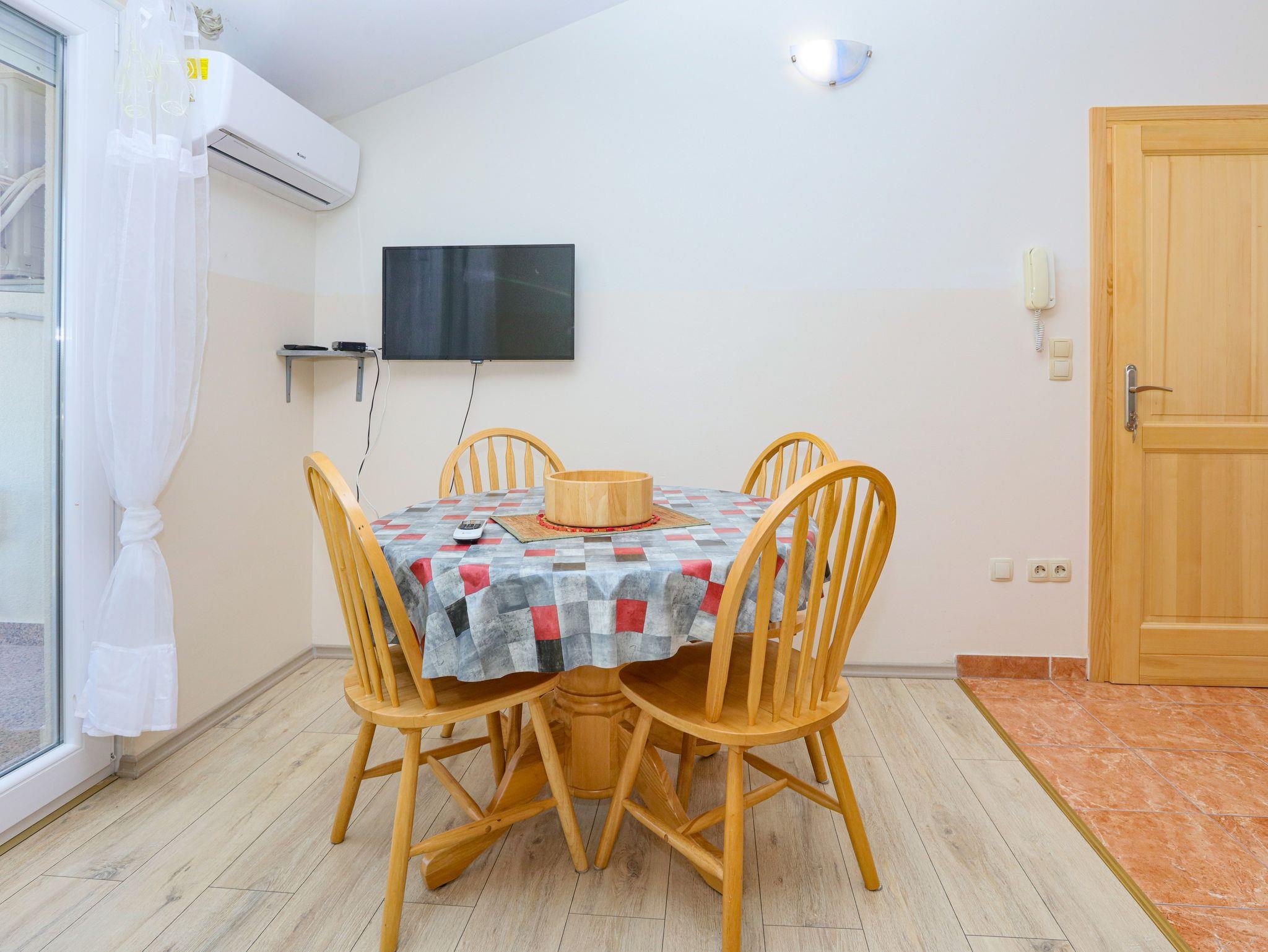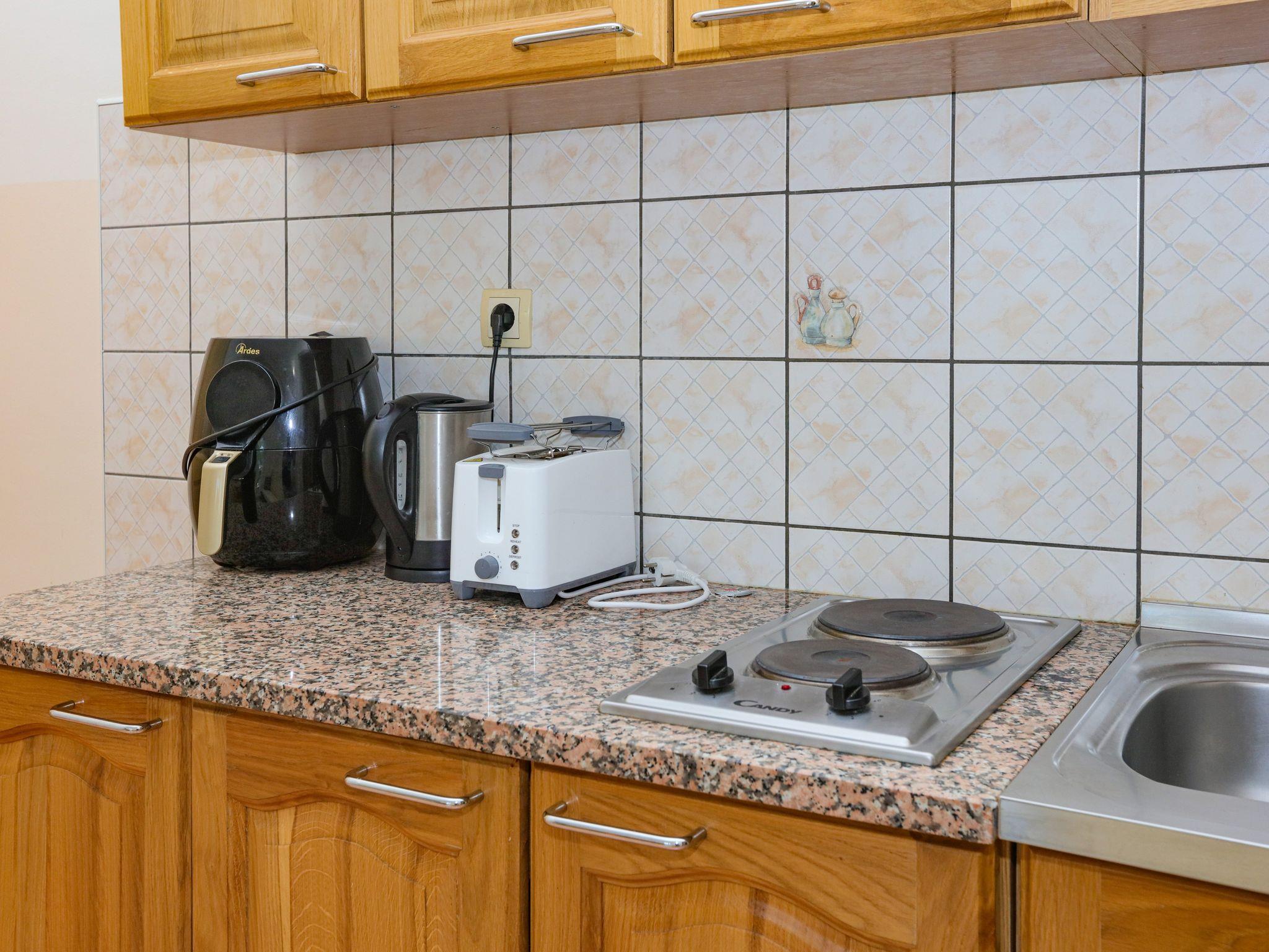 Ferienwohnung bietet Platz für 4 Gäste. Die Betten sind in Schlafzimmern, die es 1 gibt, und in Wohnzimmer, innerhalb einer Gesamtfläche von 36m2, angeordnet. Die Gäste haben einen eigenen Balkon zur Verfügung, auf der sie in warmen Sommernächten genießen können. Es ist erlaubt, Speisen auf dem Gemeinschafts-Grill vorzubereiten. In der Unterkunftseinheit besteht die Möglichkeit des Mitbringens von Haustieren, und die Dienstleistung ist im Preis der Unterkunft enthalten. IM PREIS INBEGRIFFEN: Kurtaxe, Endreinigung, Klimatisierung, Parkplatz, Internet, Wäschewaschen, Haustiere, Kinderbett, Zusatzbett, Föhn. Die Verfügbarkeit zusätzlicher Dienstleistungen in Ihrem reservierten Termin und die Preise derselben (falls nicht aufgeführt) müssen im Voraus überprüft werden. Zusätzliche Dienstleistungen die in der Zahlungsaufforderung nicht aufgeführt sind werden direkt beim Vermieter bezahlt, angenommen der Gast nutzt auch diese. Ermäßigung auf den Grundpreis: Gratistag 14=13 (bei einem Aufenthalt von 14 Tagen oder mehr erhalten Sie einen Gratistag für den Aufenthalt bis 31.12.26).