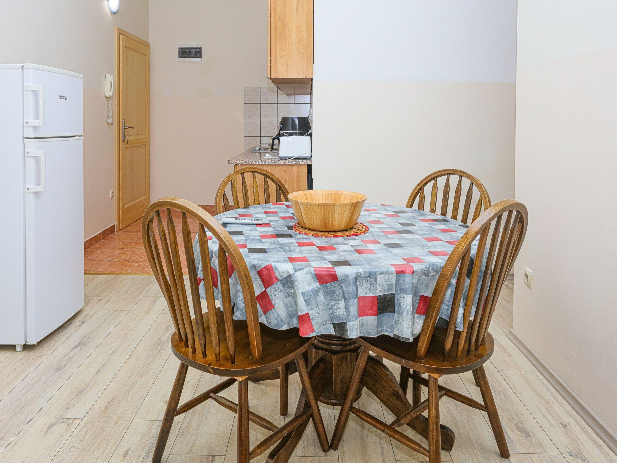 Ferienwohnung bietet Platz für 4 Gäste. Die Betten sind in Schlafzimmern, die es 1 gibt, und in Wohnzimmer, innerhalb einer Gesamtfläche von 36m2, angeordnet. Die Gäste haben einen eigenen Balkon zur Verfügung, auf der sie in warmen Sommernächten genießen können. Es ist erlaubt, Speisen auf dem Gemeinschafts-Grill vorzubereiten. In der Unterkunftseinheit besteht die Möglichkeit des Mitbringens von Haustieren, und die Dienstleistung ist im Preis der Unterkunft enthalten. IM PREIS INBEGRIFFEN: Kurtaxe, Endreinigung, Klimatisierung, Parkplatz, Internet, Wäschewaschen, Haustiere, Kinderbett, Zusatzbett, Föhn. Die Verfügbarkeit zusätzlicher Dienstleistungen in Ihrem reservierten Termin und die Preise derselben (falls nicht aufgeführt) müssen im Voraus überprüft werden. Zusätzliche Dienstleistungen die in der Zahlungsaufforderung nicht aufgeführt sind werden direkt beim Vermieter bezahlt, angenommen der Gast nutzt auch diese. Ermäßigung auf den Grundpreis: Gratistag 14=13 (bei einem Aufenthalt von 14 Tagen oder mehr erhalten Sie einen Gratistag für den Aufenthalt bis 31.12.26).