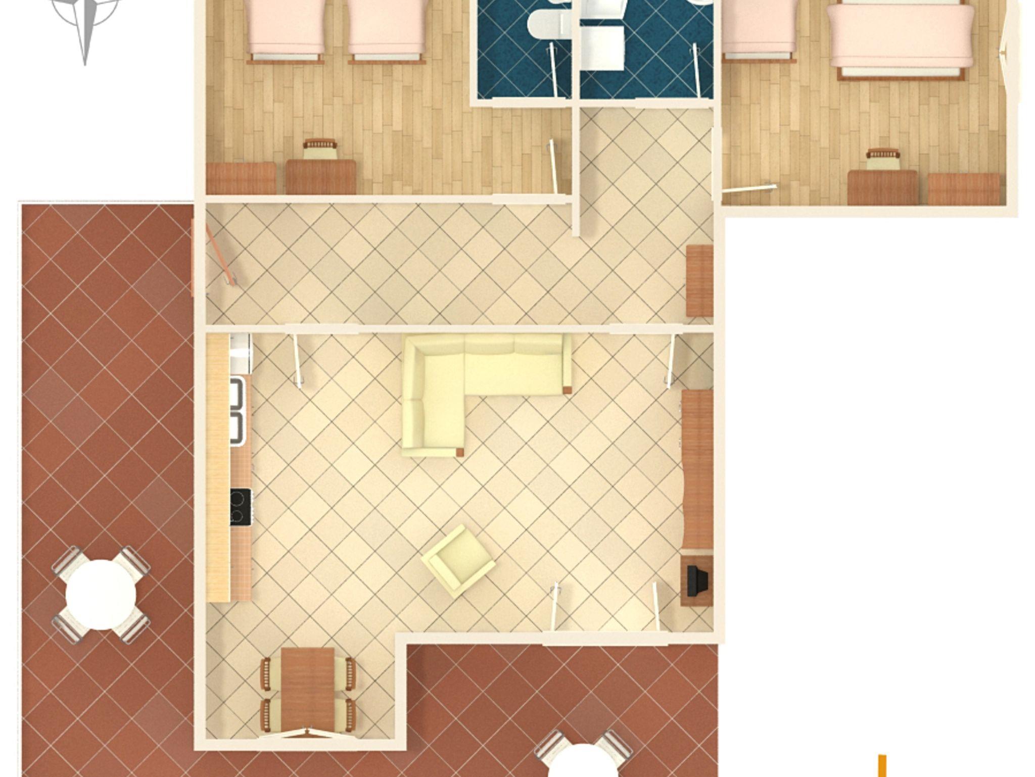 Ferienwohnung bietet Platz für 5 Gäste. Die Betten sind in Schlafzimmern, die es 2 gibt, innerhalb einer Gesamtfläche von 69m2, angeordnet. Die Gäste haben eine eigene Terrasse zur Verfügung, auf der sie in warmen Sommernächten genießen können. Es ist erlaubt, Speisen auf dem Gemeinschafts-Grill vorzubereiten. In der Unterkunftseinheit besteht die Möglichkeit des Mitbringens von Haustieren gegen Aufpreis. IM PREIS INBEGRIFFEN: Kurtaxe, Endreinigung, Parkplatz, Internet, Kinderbett. UNVERBINDLICHE ZUSÄTZLICHE KOSTEN: Klimatisierung (8,00 € pro Nacht), Wäschewaschen (10,00 € Waschen), Haustiere (9,00 € pro Nacht). Die Verfügbarkeit zusätzlicher Dienstleistungen in Ihrem reservierten Termin und die Preise derselben (falls nicht aufgeführt) müssen im Voraus überprüft werden. Zusätzliche Dienstleistungen die in der Zahlungsaufforderung nicht aufgeführt sind werden direkt beim Vermieter bezahlt, angenommen der Gast nutzt auch diese.