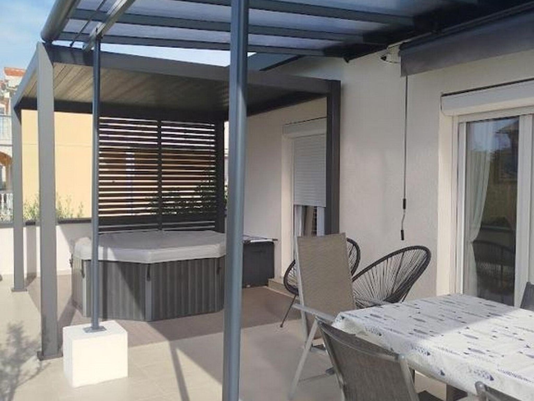 Ferienwohnung bietet Platz für 4 Gäste. Die Betten sind in Schlafzimmern, die es 2 gibt, innerhalb einer Gesamtfläche von 57m2, angeordnet. Die Gäste haben eine eigene Terrasse zur Verfügung, auf der sie in warmen Sommernächten genießen können. Es ist erlaubt, Speisen auf dem Gemeinschafts-Grill vorzubereiten. Während ihres Aufenthalts können Gäste das gemeinsam zur Nutzung stehende Schwimmbad benutzen. In der Unterkunftseinheit besteht die Möglichkeit des Mitbringens von Haustieren gegen Aufpreis. IM PREIS INBEGRIFFEN: Kurtaxe, Endreinigung, Klimatisierung, Zentralheizung, Pool, Parkplatz, Internet, Wäschewaschen, Bügeleisen, Föhn. VERBINDLICHE ZUSÄTZLICHE KOSTEN: Aufzahlung für Kurzaufenthalte (prozentualer Zuschlag pro Nächtigungsanzahl: 30% - 1, 20% - 2, 10% - 3). UNVERBINDLICHE ZUSÄTZLICHE KOSTEN: Haustiere (15,00 € pro Nacht). Die Verfügbarkeit zusätzlicher Dienstleistungen in Ihrem reservierten Termin und die Preise derselben (falls nicht aufgeführt) müssen im Voraus überprüft werden. Zusätzliche Dienstleistungen die in der Zahlungsaufforderung nicht aufgeführt sind werden direkt beim Vermieter bezahlt, angenommen der Gast nutzt auch diese.