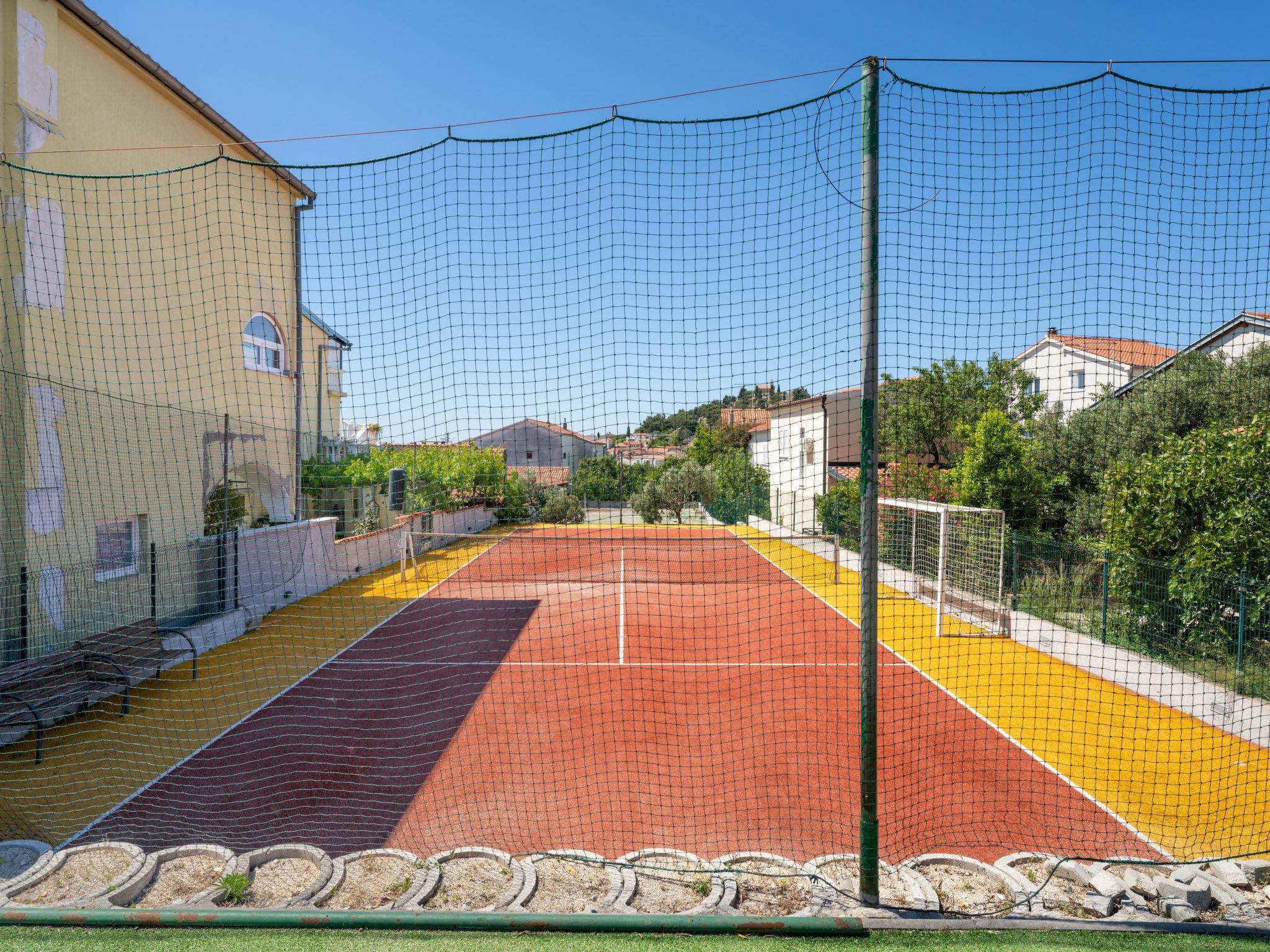 Tribunj 3 km von Vodice: Einfamilienhaus "Tina", auf 2 Stockwerken. Ruhige, sonnige Lage, 450 m vom Meer, 550 m vom Strand. Zur Mitbenutzung: Grundstück 2'000 m2 (eingezäunt), Schwimmbad eckig (8 x 4 m, 130 - 160 cm tief, saisonale Verfügbarkeit: 11.Mai. - 12.Okt.) mit Innentreppe. Aussendusche, Sprudelbad, Tennis, Basketball, Grill. Im Hause: Internetzugang, Waschmaschine. Abholservice vom Flughafen. Parkplatz beim Haus auf dem Grundstück. Einkaufsgeschäft 350 m, Restaurant 400 m, Bushaltestelle 3.7 km, Kieselstrand 950 m, Felsstrand, betonierter Strand 550 m. Jacht-Hafen 550 m. Nahe gelegene Sehenswürdigkeiten: NP Krka 25 km. Bitte beachten: Ferienwohnung Ref. HR4405.128, 130 befindet sich auf dem gleichen Grundstück. Schwimmbad mit Hydromassage. Sprudelbad (extra).
