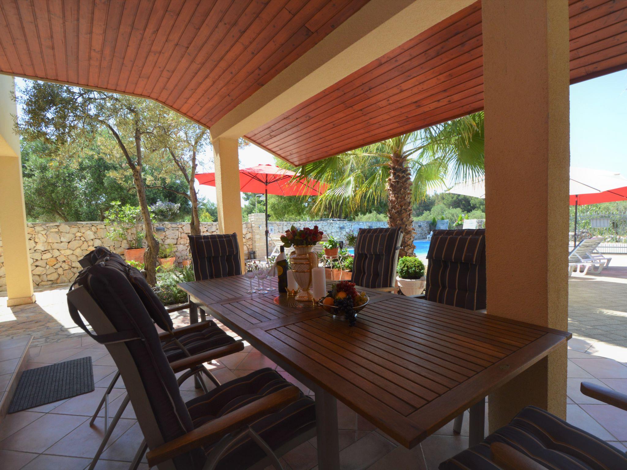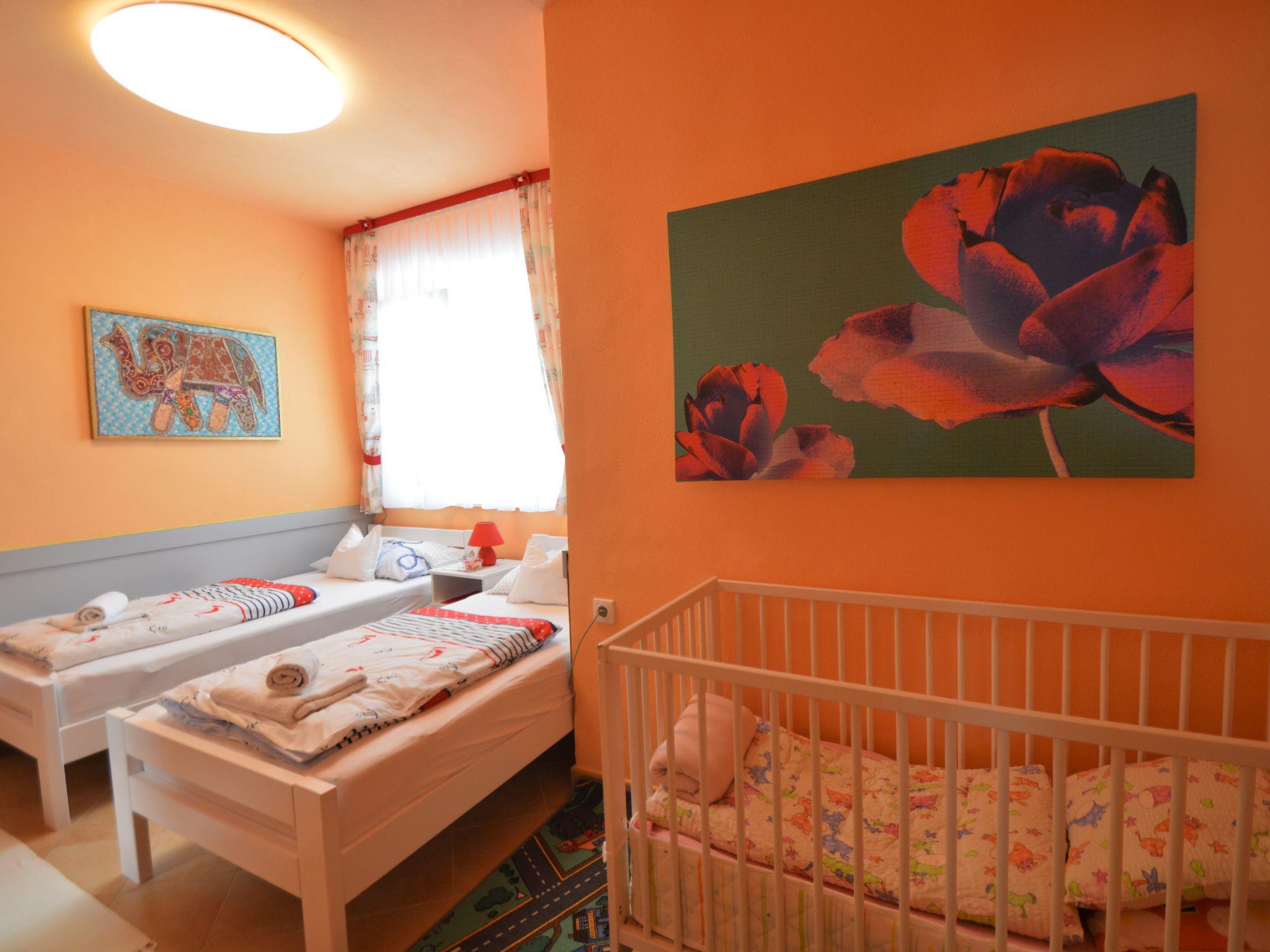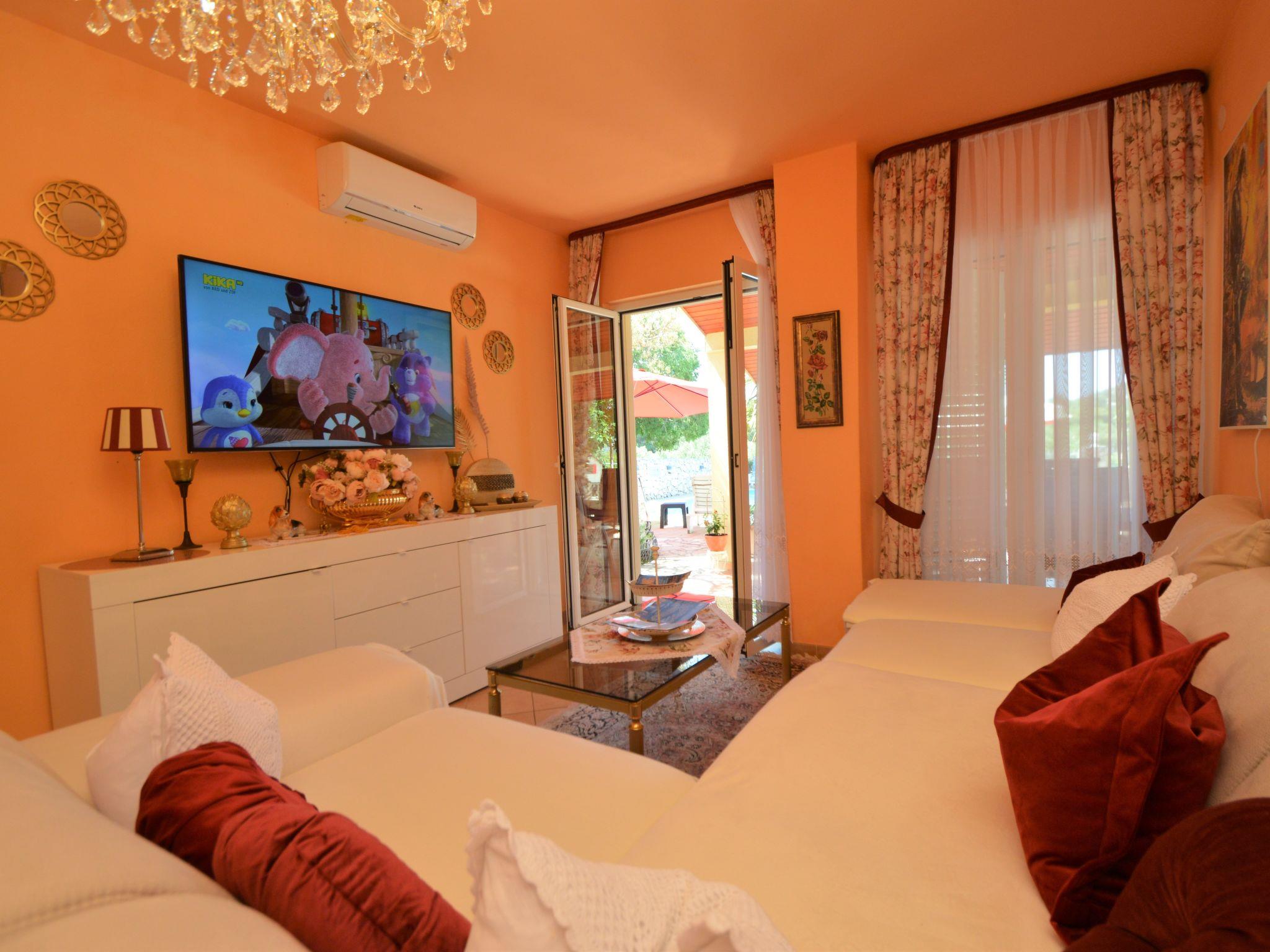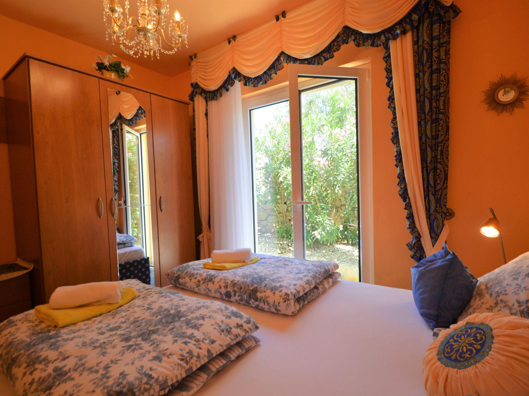 4-Zimmer-Wohnung 95 m2, im Erdgeschoss, Südlage. Schön und gemütlich eingerichtet: Wohn-/Esszimmer 25 mit Sat-TV (Flachbildschirm), Klimaanlage. Ausgang zur Terrasse. 1 Zimmer mit 1 franz. Bett (160 cm, Länge 200 cm). 1 Zimmer mit 1 franz. Bett (160 cm, Länge 200 cm), Klimaanlage. Durchgangszimmer mit 2 Betten (90 cm, Länge 200 cm). Offene Küche (Backofen, Geschirrspüler, 4 Glaskeramikplatten, Wasserkocher, Mikrowelle, Tiefkühler, elektrische Kaffeemaschine). Bad/Bidet/WC, sep. WC. Keine Heizmöglichkeit. Terrasse 30 m2, überdacht. Terrassenmöbel, Gartengrill. Zur Verfügung: Waschmaschine, Babybett. Internet (Wireless LAN, gratis). Bitte beachten: eigener Eingang. 26017368543