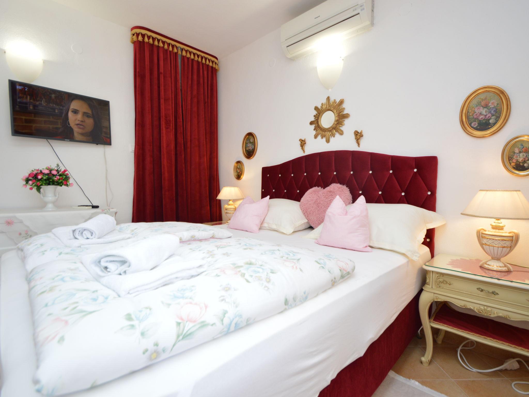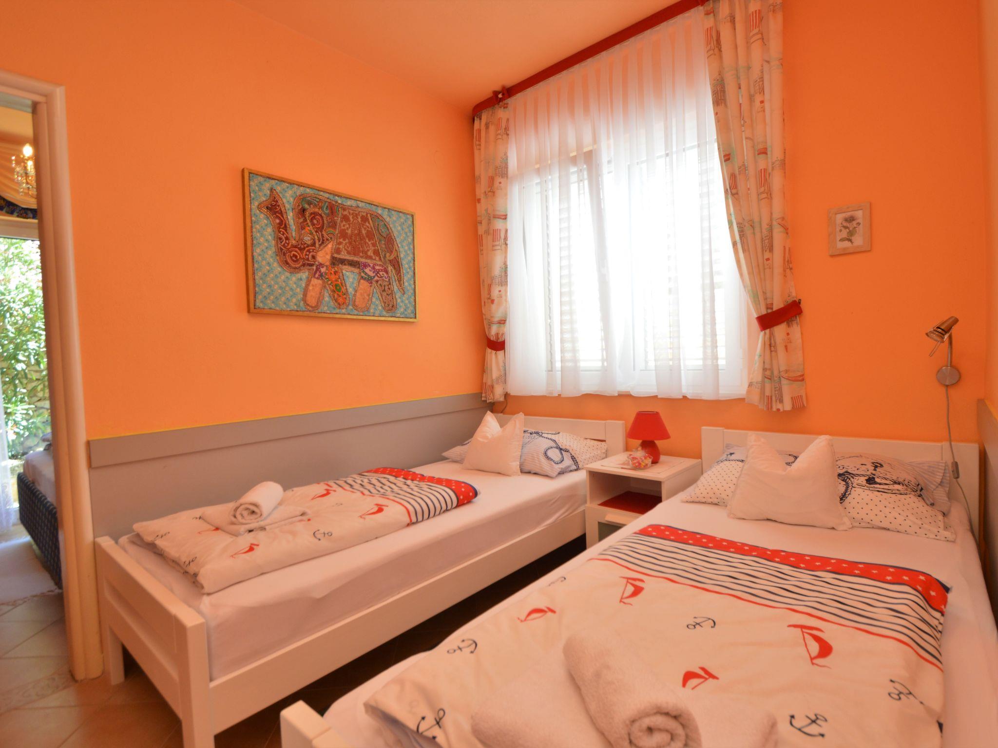 Tribunj 3 km von Vodice: Schönes Mehrfamilienhaus "Friedrich". Im Weiler Sovlje, 1.5 km vom Zentrum von Tribunj, ruhige, sonnige Lage, 250 m vom Meer, 300 m vom Strand. Zur Mitbenutzung: gepflegter Garten (eingezäunt), Schwimmbad (24 m2, 150 cm tief, saisonale Verfügbarkeit: 01.Mai. - 22.Okt.) mit Innentreppe. Aussendusche, Laube, Gartenmöbel, Kinderspielplatz. Im Hause: Internetzugang, Waschmaschine (zur Mitbenutzung, extra). Parkplatz beim Haus. Einkaufsgeschäft 1.3 km, Restaurant 350 m, Bushaltestelle 5.4 km, Kieselstrand 400 m, Felsstrand 300 m, betonierter Strand 400 m. Zur Mitbenutzung: Liegestühle und Sonnenschirme. Parkplatz für Anhänger vorhanden.