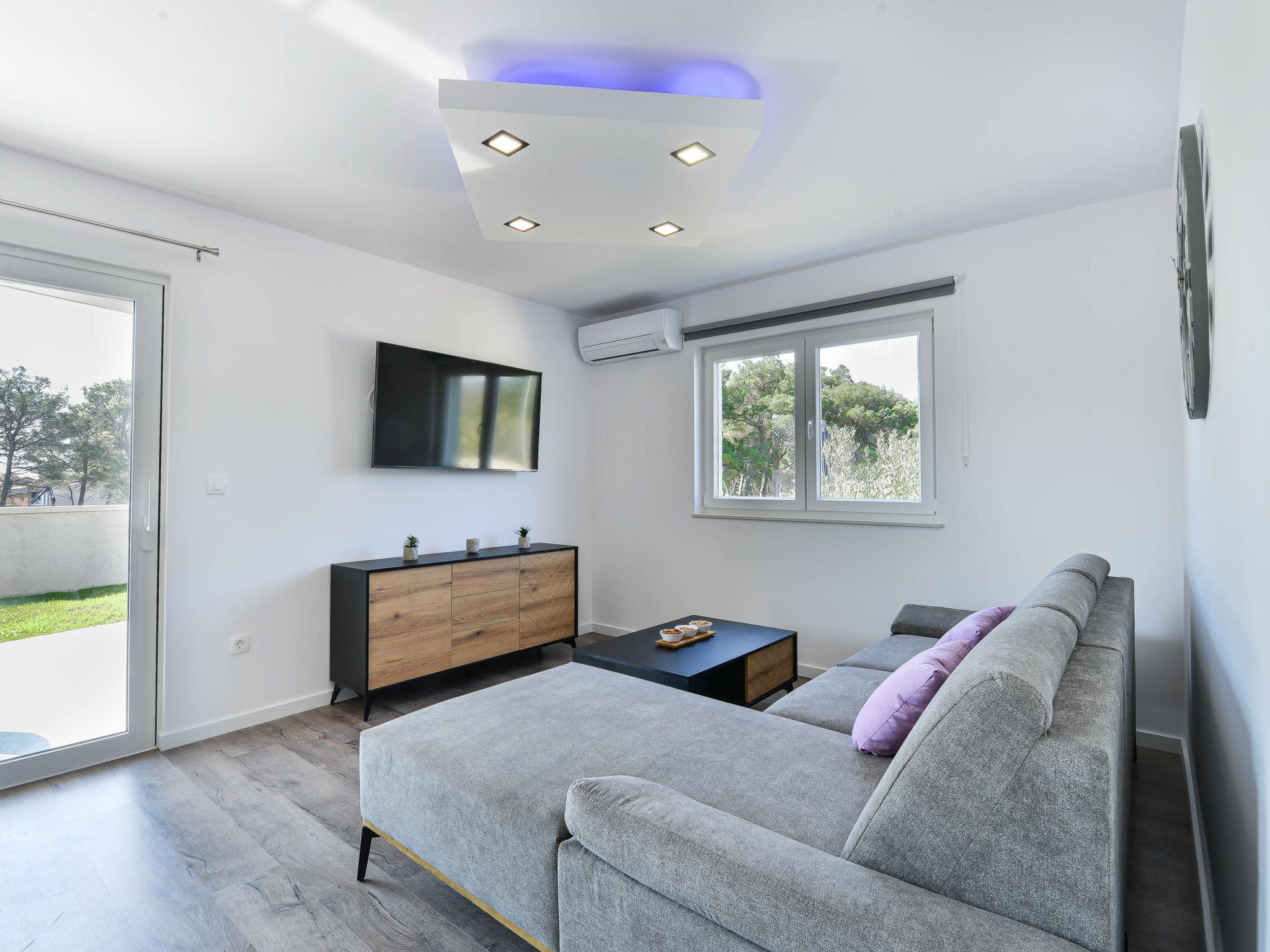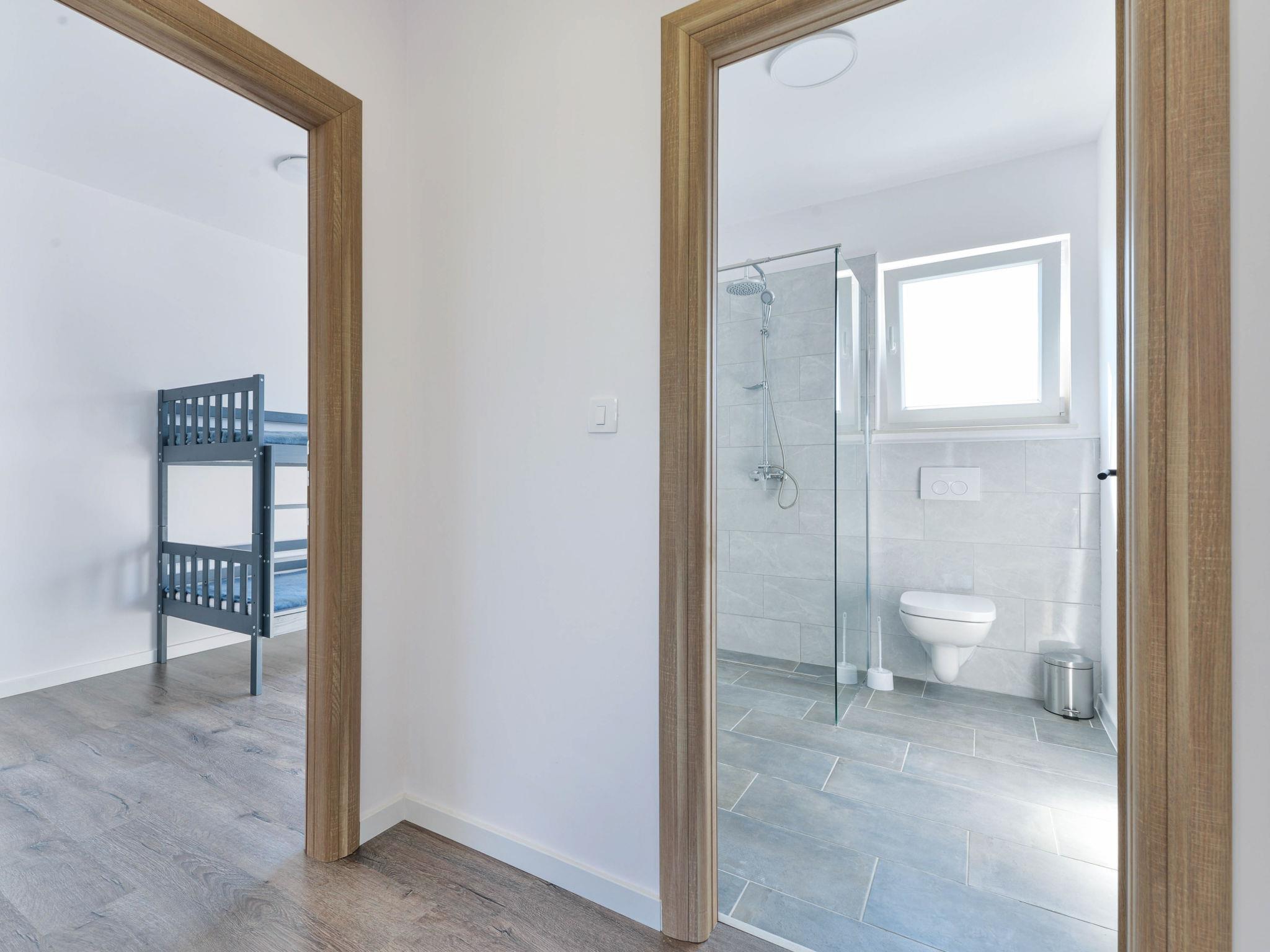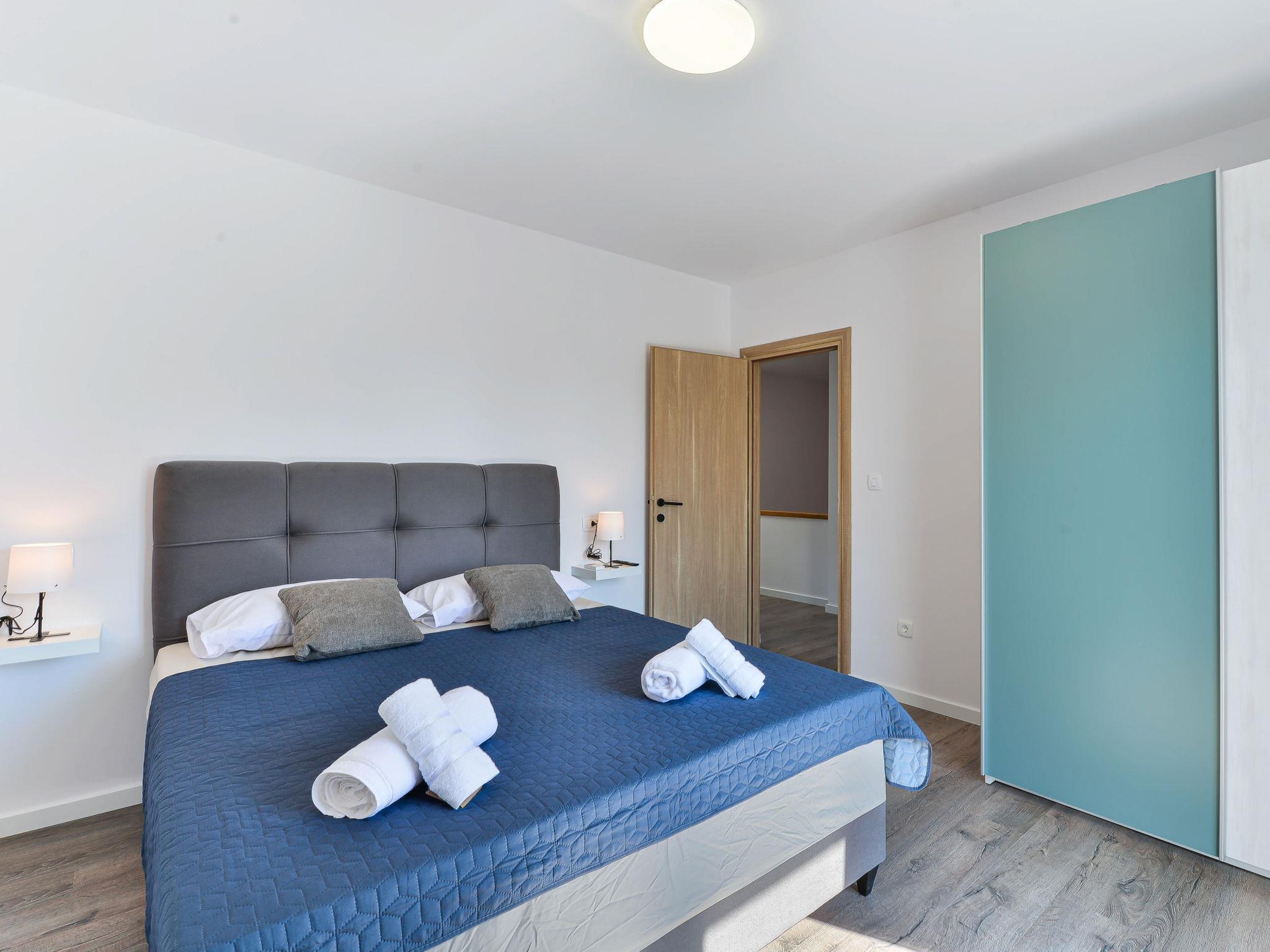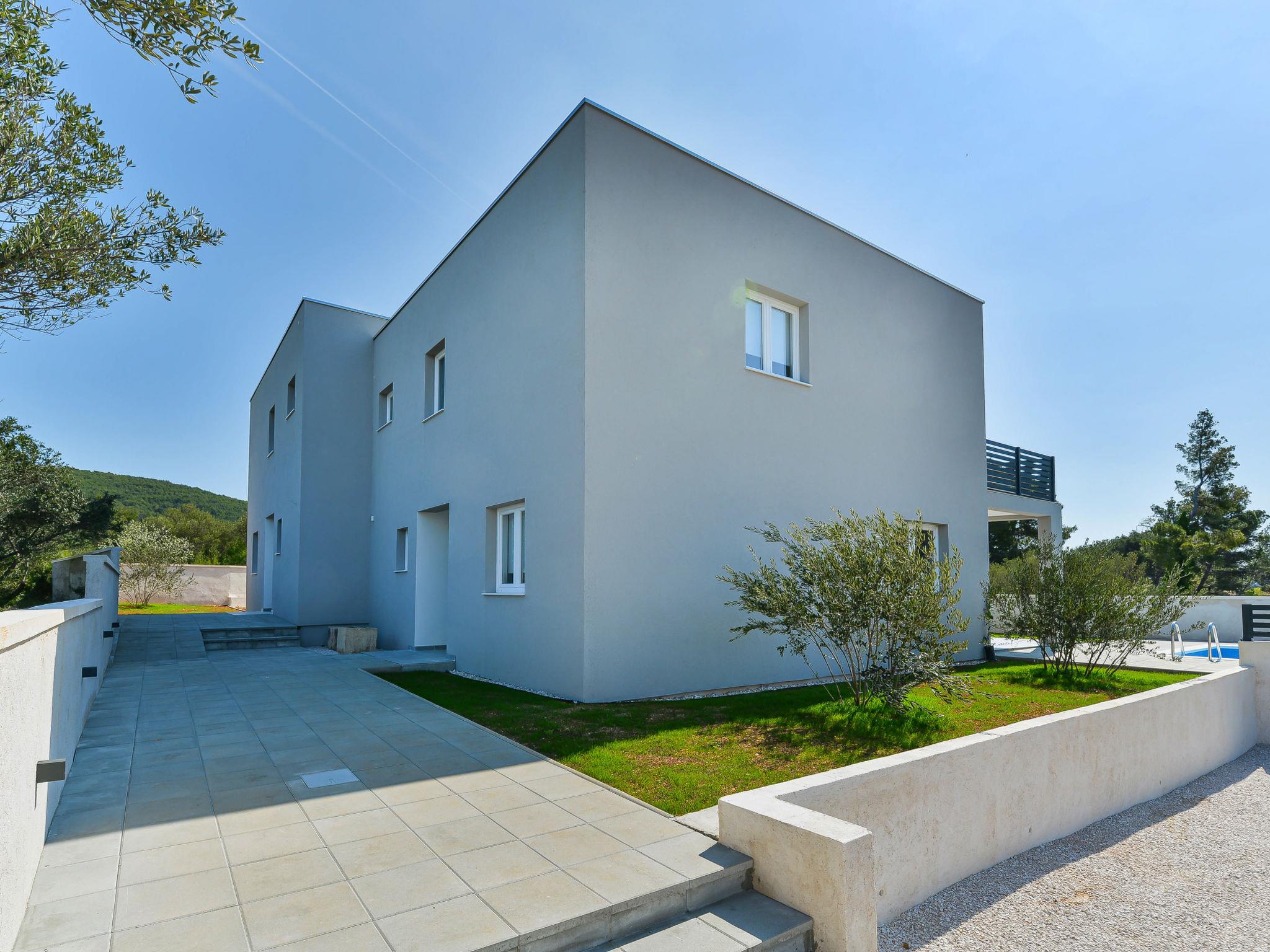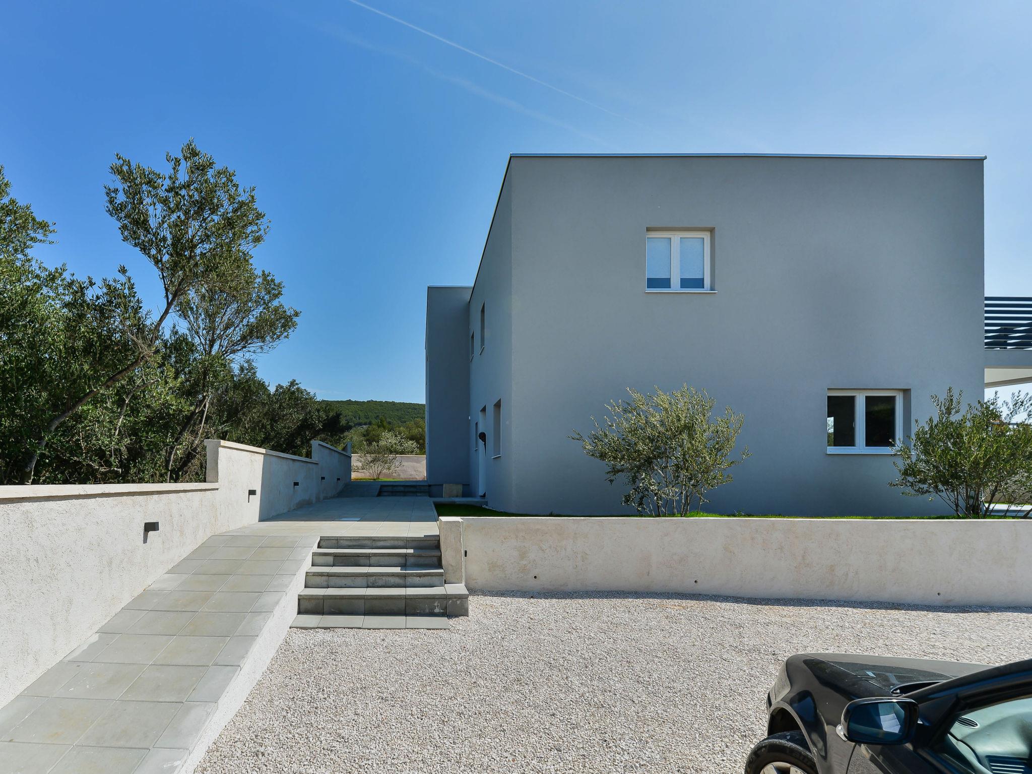 Tribunj 5 km von Vodice: Modernes, schönes Doppelhaus "Gušt", auf 2 Stockwerken, Baujahr 2023. Im Weiler Sovlje, 1.5 km vom Zentrum von Tribunj, ruhige, sonnige Lage, 400 m vom Meer, 500 m vom Strand. Zur Alleinbenutzung: Grundstück 350 m2, Schwimmbad eckig, beheizt (6 x 3 m, 21 m2, 150 cm tief, saisonale Verfügbarkeit: 01.Mai. - 31.Okt.). Aussendusche, Grill, Poolpflege durch den Besitzer/Gärtner. Im Hause: Internetzugang, Waschmaschine. Parkplatz (für 2 Autos) beim Haus auf dem Grundstück. Einkaufsgeschäft 1.5 km, Restaurant 350 m, Bushaltestelle 5.2 km, Kieselstrand, betonierter Strand 500 m.