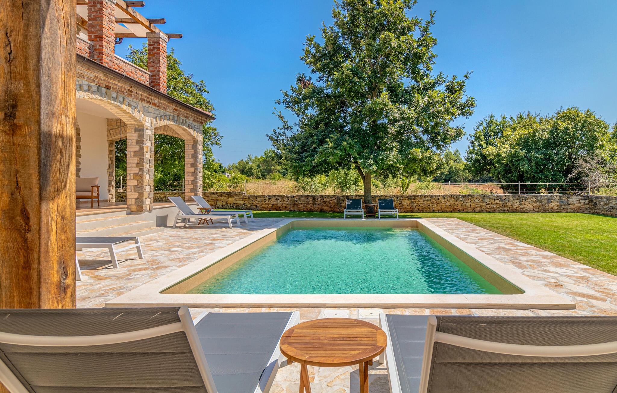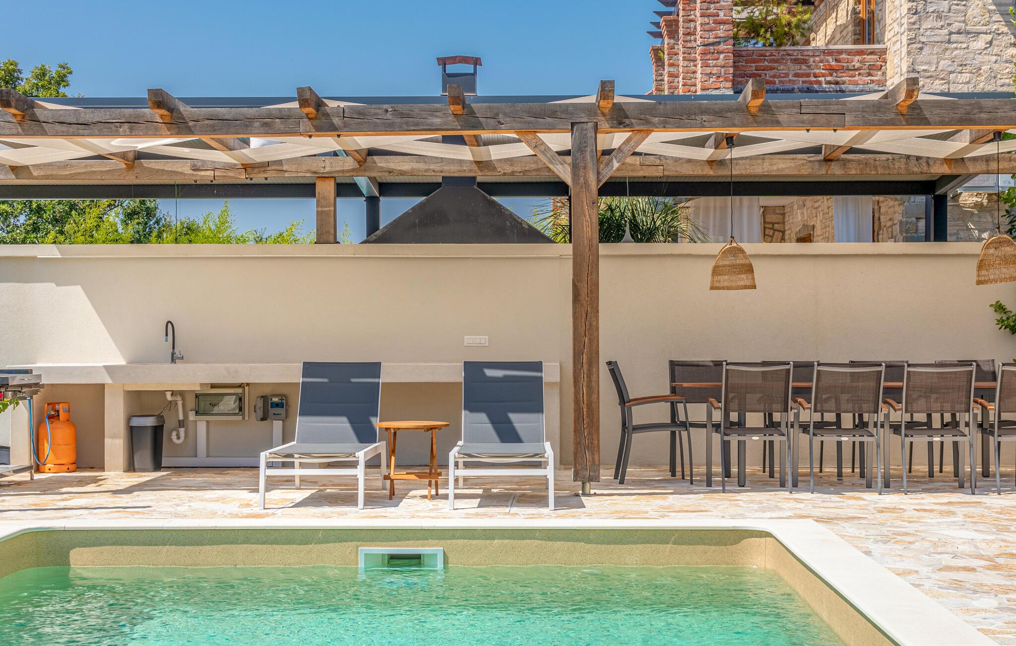 Draußen können Sie ausgiebig die Sonne genießen und sich im Pool erfrischen.