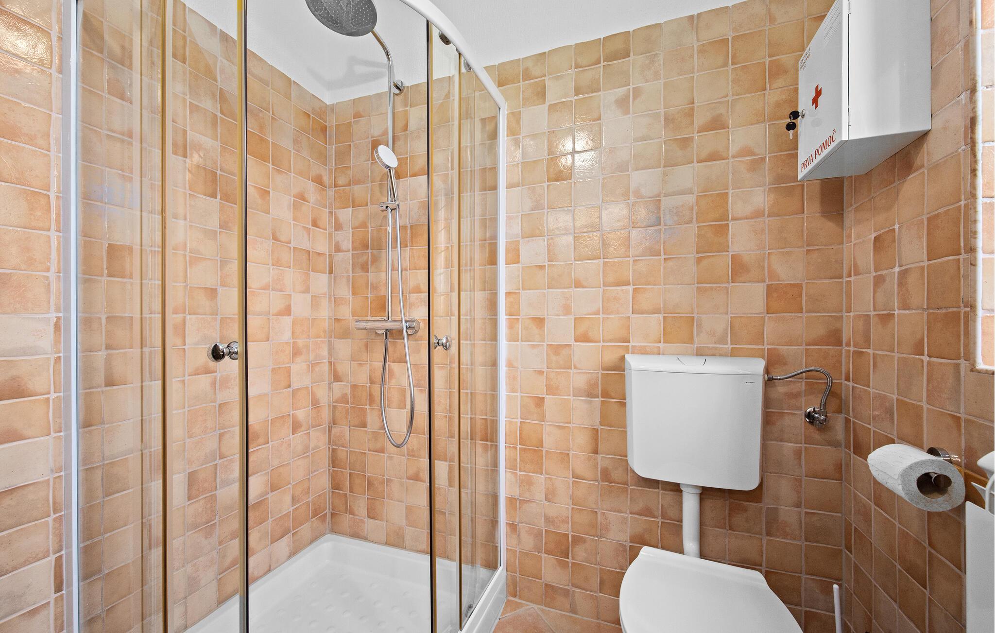 - WC mit warmem und kaltem Wasser, Dusche