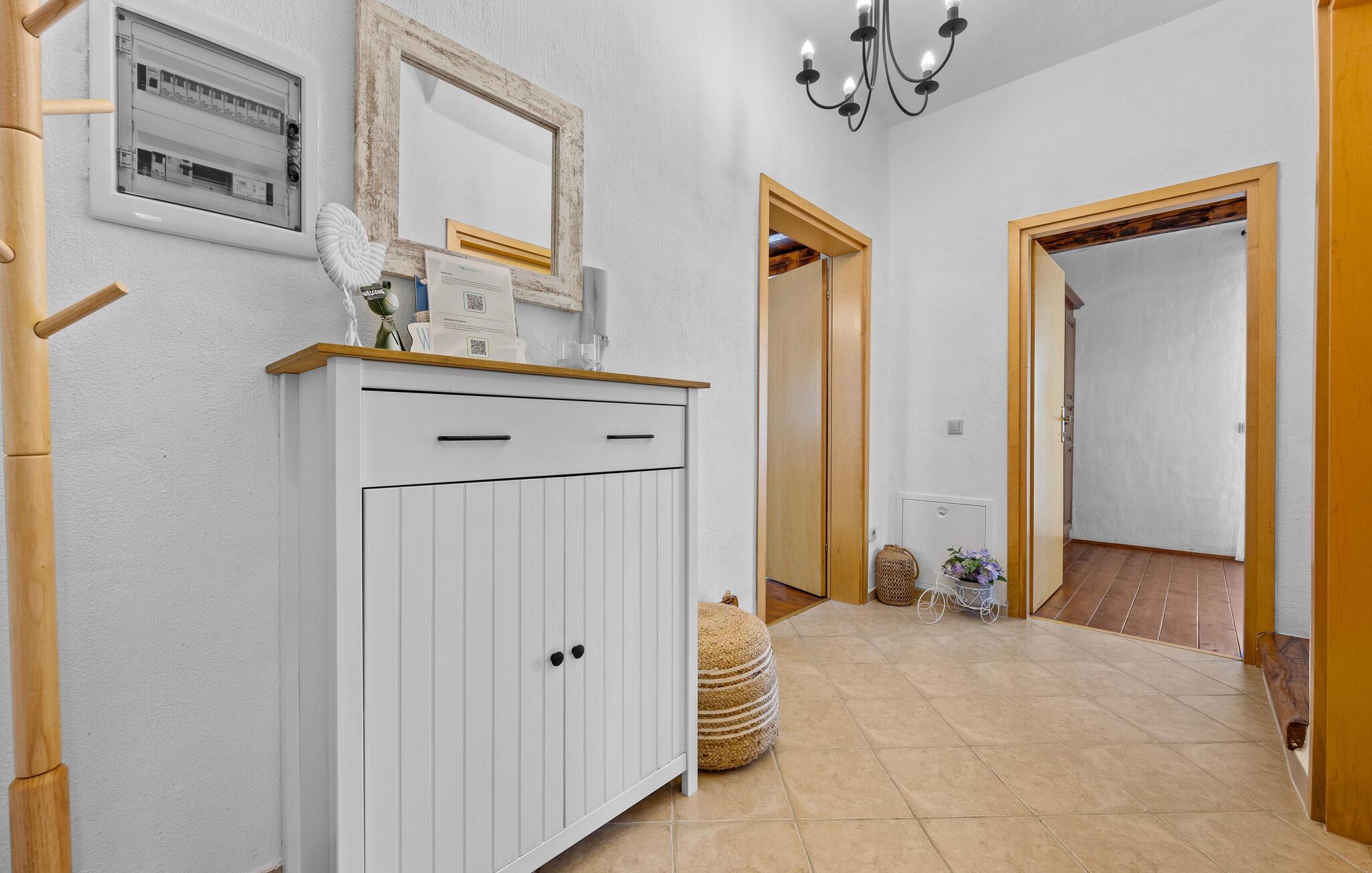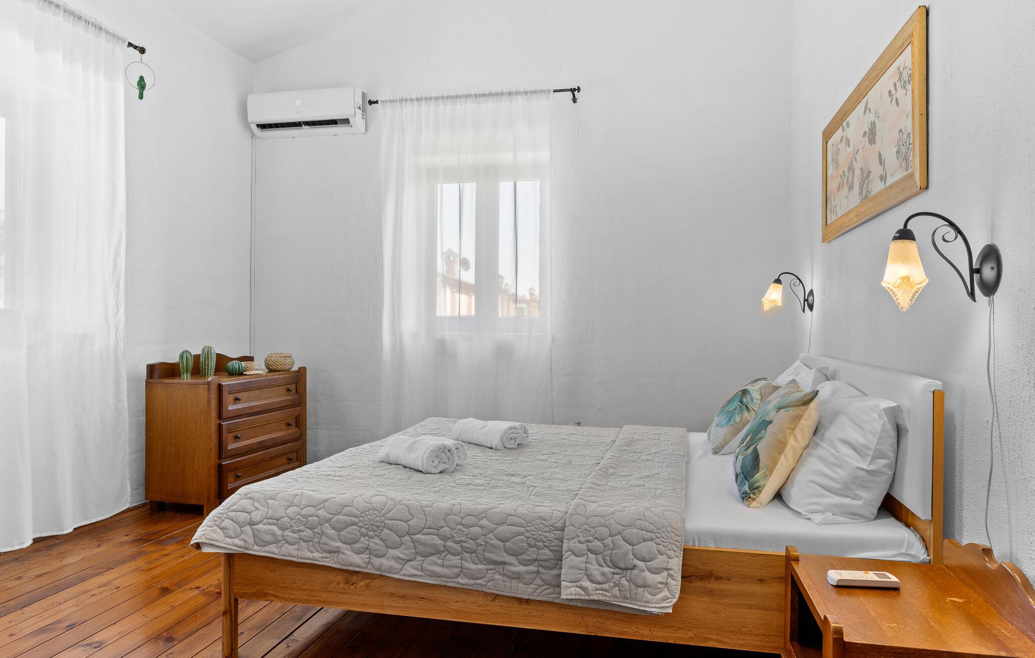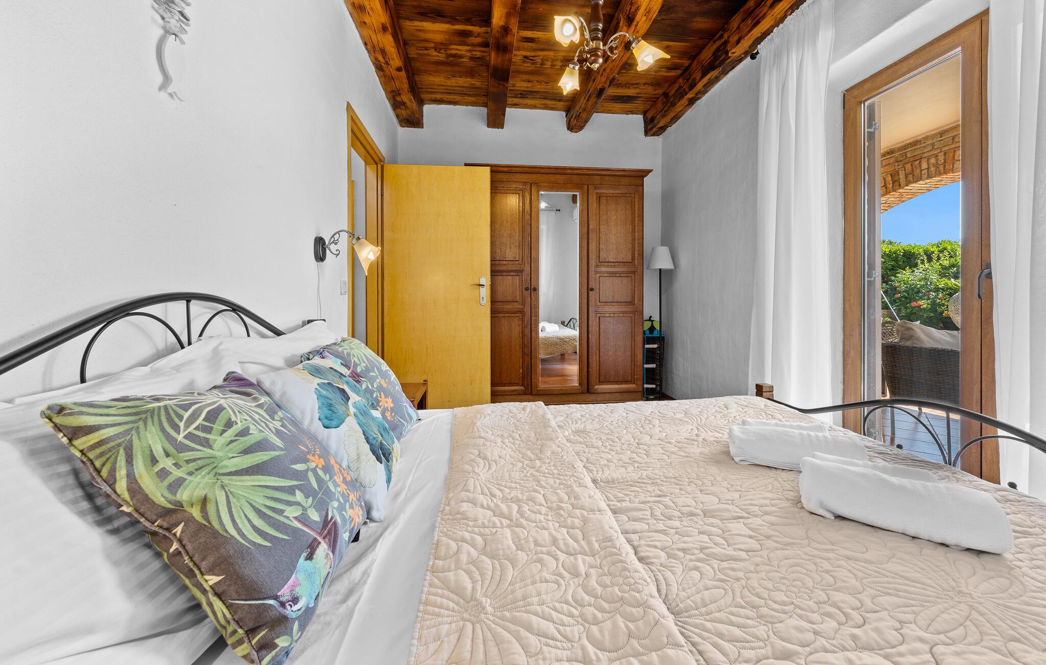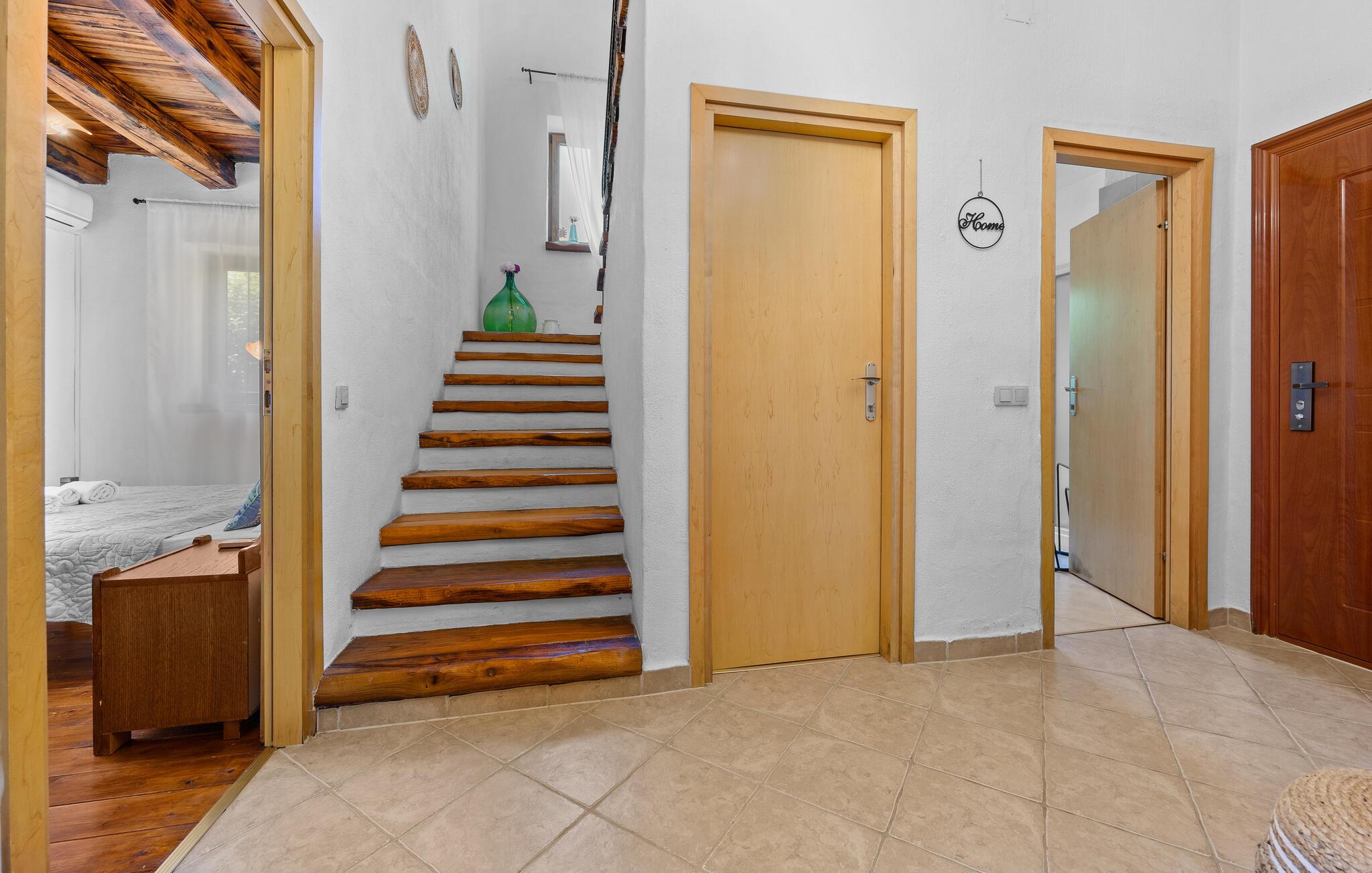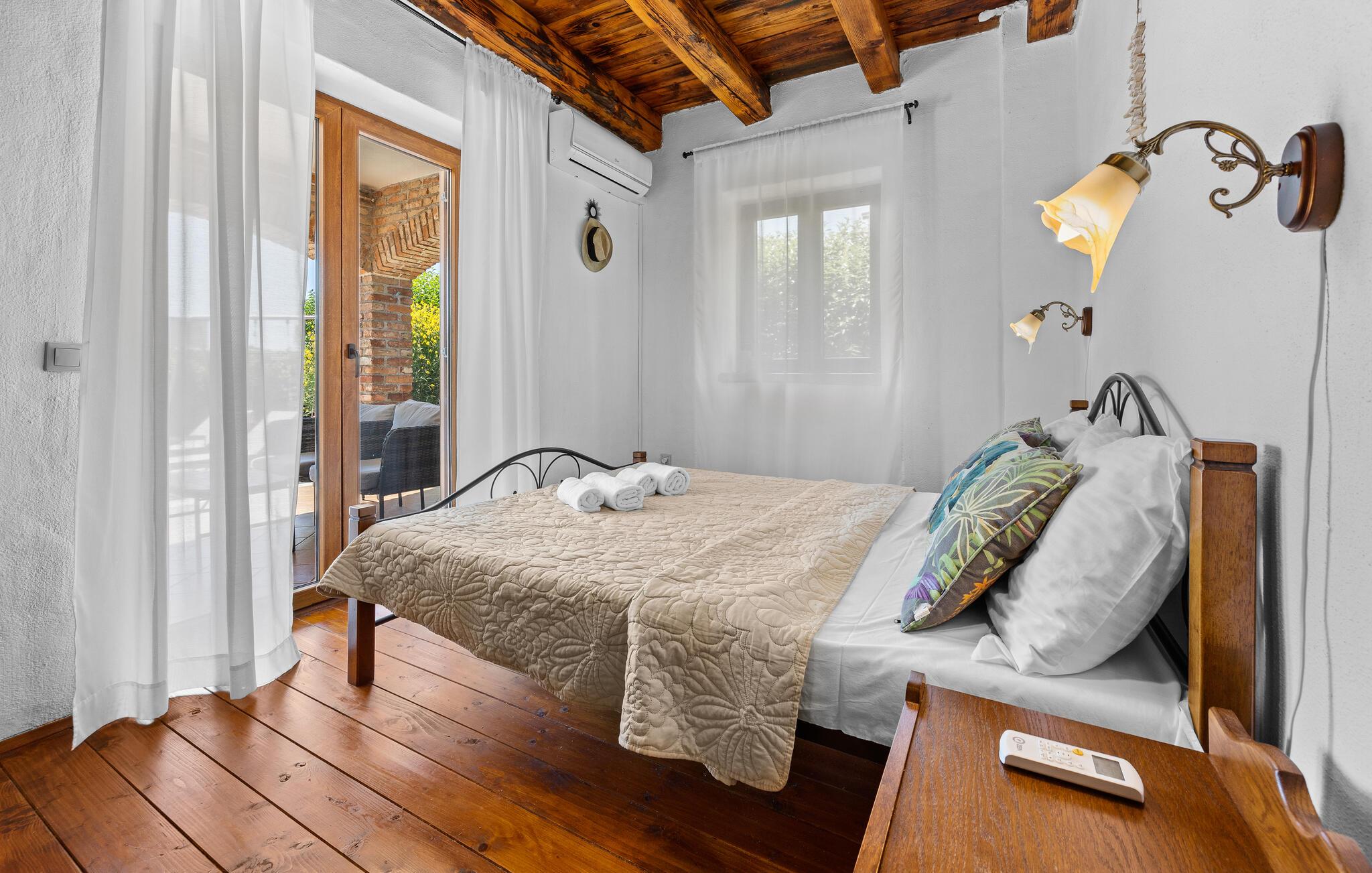Verbringen Sie unvergessliche Tage in diesem großzügigen Ferienhaus, das traditionellen Charme mit modernem Komfort vereint. Hier erwarten Sie Erholung, Ruhe und istrische Lebensfreude in einer stilvollen Umgebung. Im Inneren begrüßt Sie ein einladender Wohnbereich mit Natursteinwänden, Holzbalken und elegantem Mobiliar. Machen Sie es sich auf dem schönen Sofa gemütlich, genießen Sie den Blick auf den Pool oder lassen Sie den Abend am Kamin ausklingen. Die offene Küche mit Essbereich ist bestens ausgestattet und bietet viel Platz für gemeinsame Mahlzeiten. Hochwertige Materialien und warme Farben schaffen eine harmonische, wohnliche Atmosphäre, die zum Verweilen einlädt.