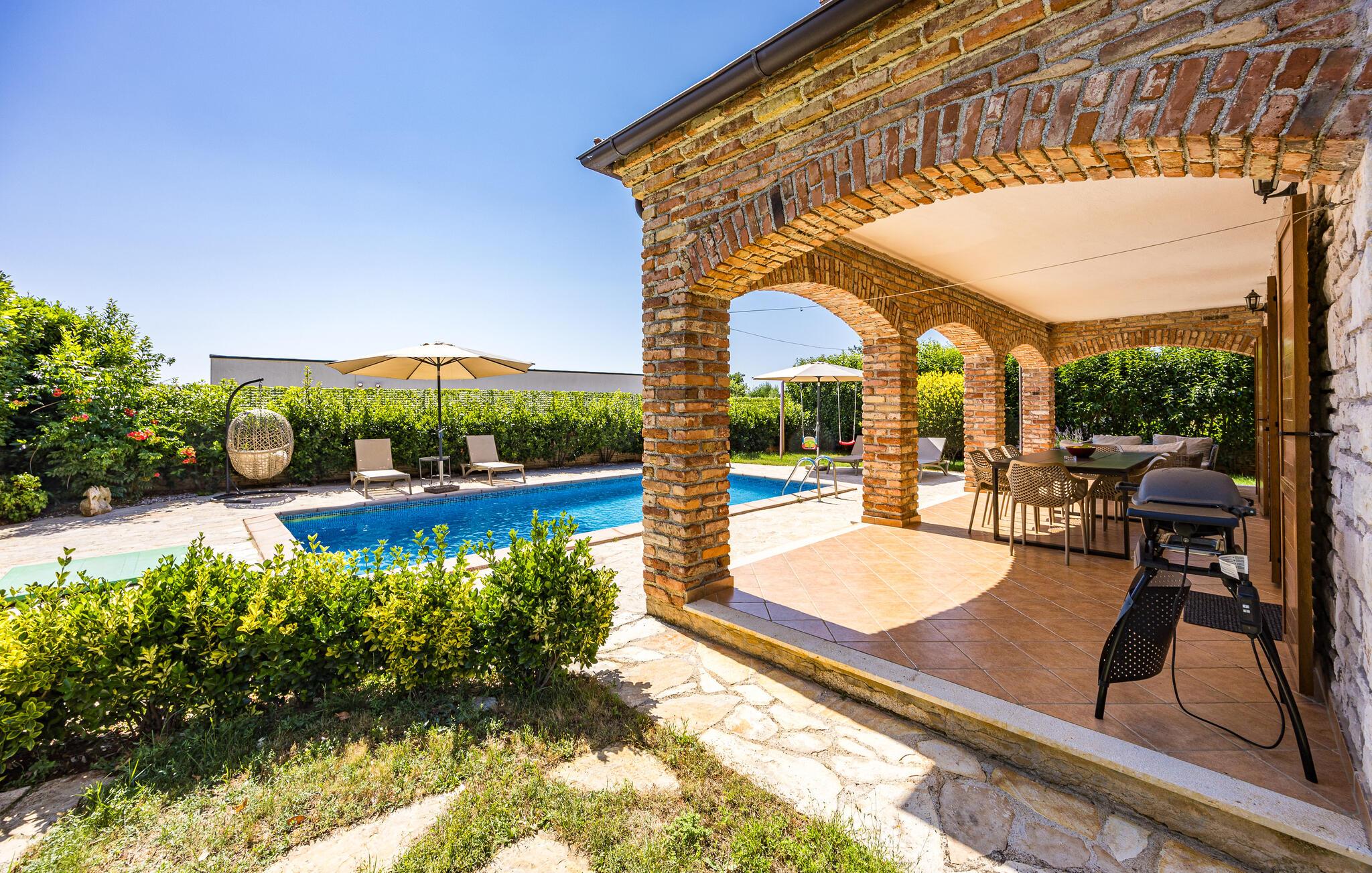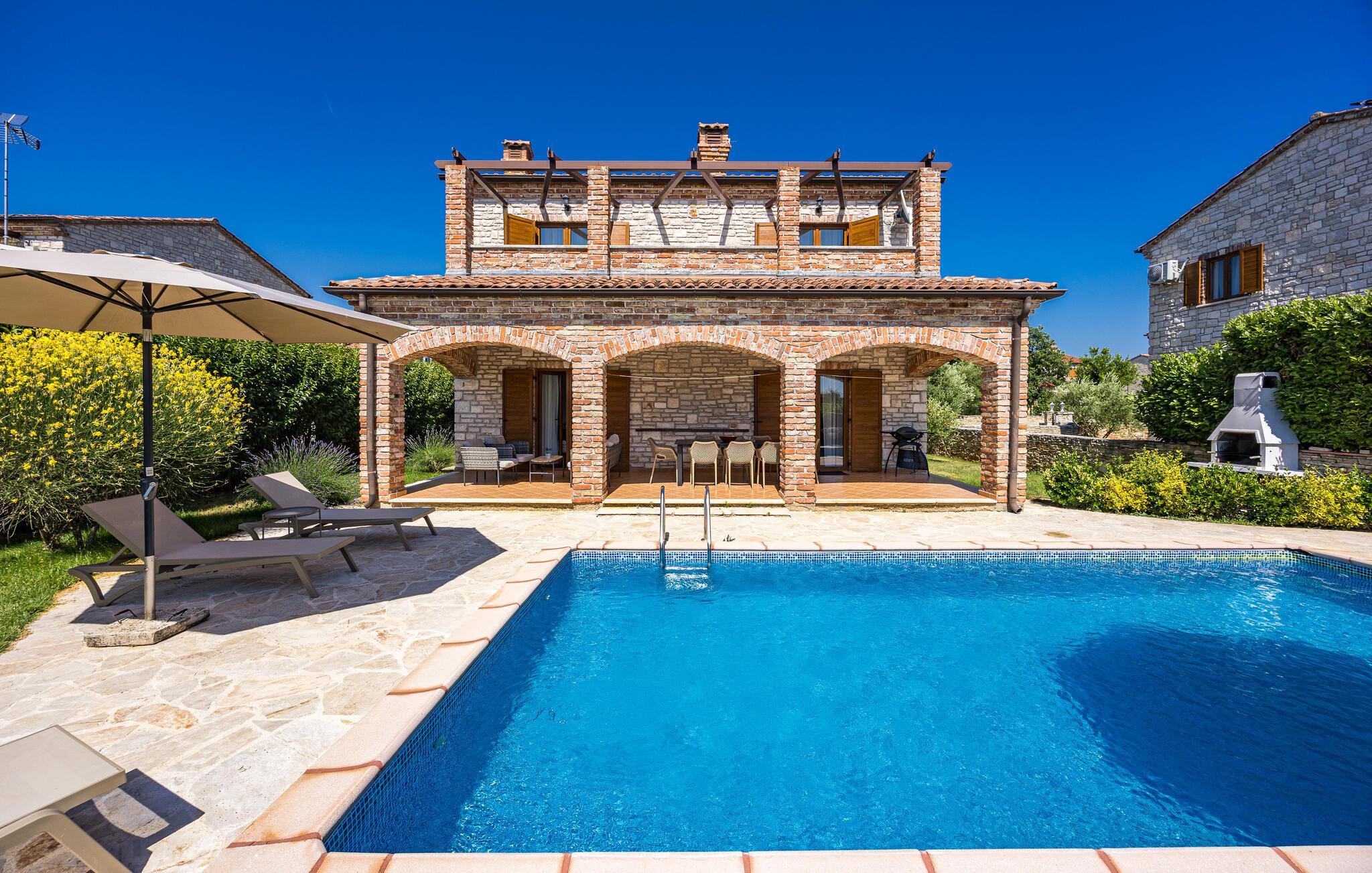 Genießen Sie wundervolle Urlaubstage in dieser stilvollen Villa mit Pool, Sonnenterrasse und luxuriösem Ambiente.