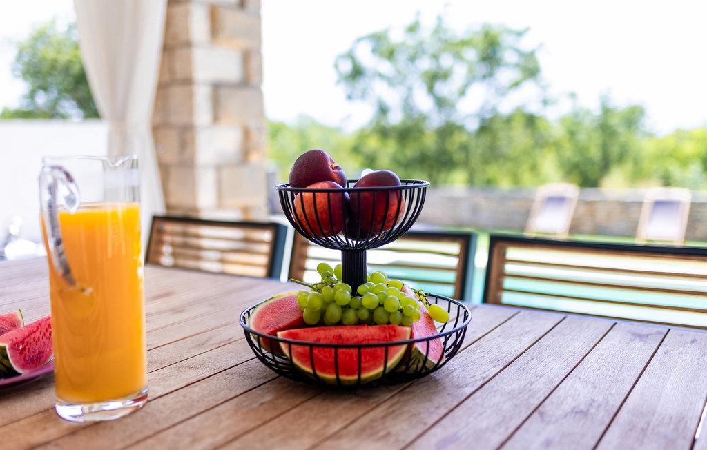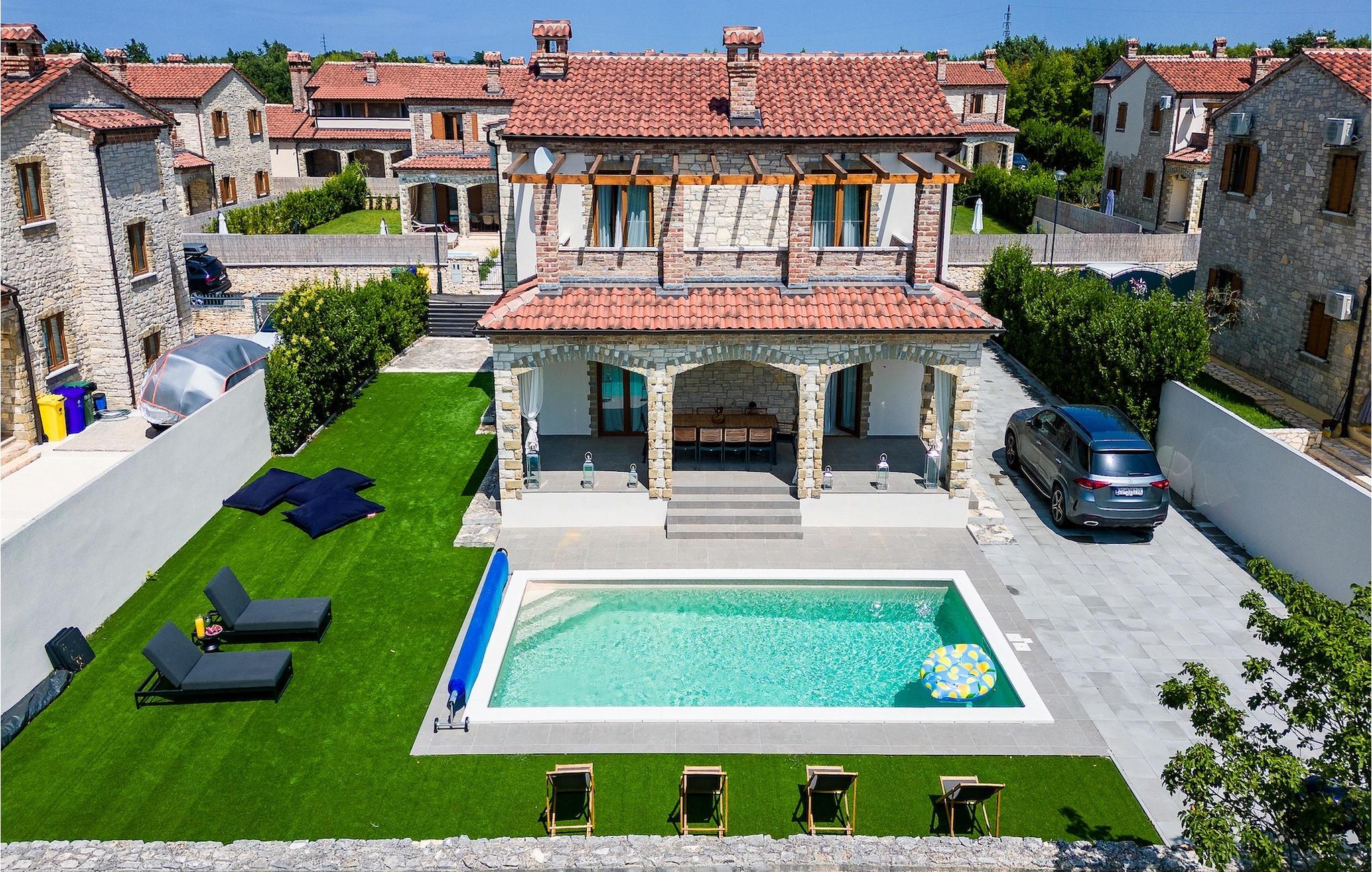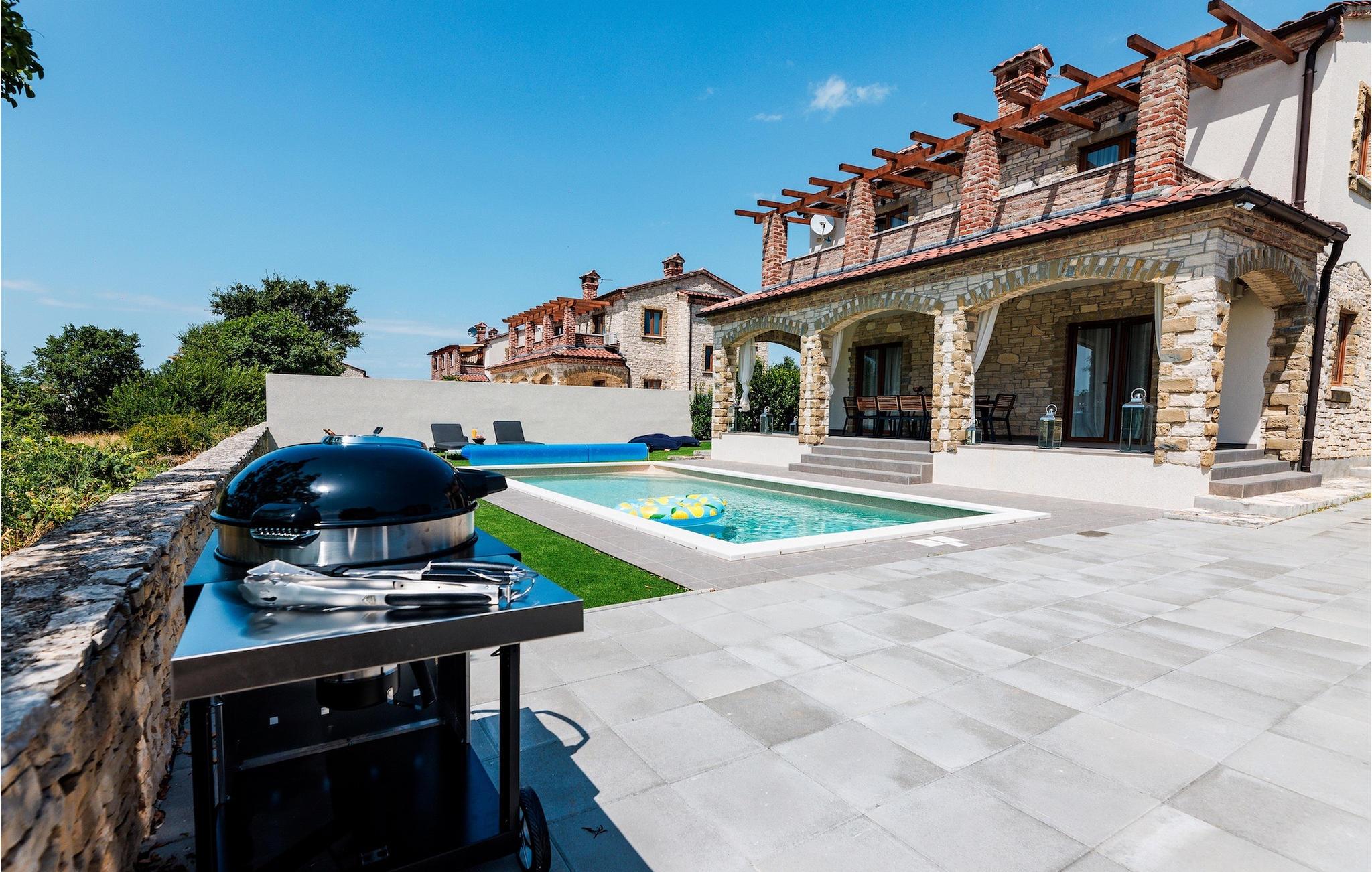 Die rustikale Villa Olivia Cabrunici mit einem wunderschönen 32 m2 großen Pool und Liegestühlen am Eingang der Villa bietet Ruhe und Erfrischung während der Sommerhitze. Das Besondere an diesem Pool ist, dass sich die ganze Familie oder Freundeskreis mit dem Volleyball-Set im Pool vergnügen oder sich auf den Luftmatratzen im Pool vergnügen kann, während man ein erfrischendes Getränk trinkt und die Sonnenstrahlen genießt. Wenn Sie Haustiere haben, ist diese Villa auch für sie geeignet und der vollständig eingezäunte, geräumige Garten wird sie begeistern. Bereiten Sie köstliche traditionelle Gerichte auf dem Grill zu und genießen Sie diese mit Ihren Lieben im überdachten Essbereich im Freien mit 10 Sitzplätzen. Im Inneren der Villa finden Sie eine voll ausgestattete Küche, ein Wohnzimmer und ein Esszimmer für 6 Personen. Die traditionelle Atmosphäre erstreckt sich im Innen- und Außenbereich der Villa. Zusätzlich zur Unterhaltung im Freien bietet diese Villa allen Videospielliebhabern einen Raum mit einer PlayStation 5-Spielekonsole. Entspannen Sie nach einem aktiven Tag in den drei Schlafzimmern mit Doppelbetten im ersten Stock der Villa und erfrischen Sie sich in den beiden Badezimmern auf dieser Etage. Verbringen Sie Ihre Vormittage auf der wunderschönen Terrasse im ersten Stock mit einer Aussicht wie von einem Gemälde, dem glitzernden Wasser des Pools, der unberührten Natur und dem blauen Himmel. Die Villa bietet Ihnen alles, was Sie für einen angenehmen und ruhigen Urlaub benötigen. Verbringen Sie einen Urlaub in der Villa Cabrunici und spüren Sie die unbezahlbare istrische Atmosphäre. Die Villa Olivia Cabrunici liegt im Zentrum Istriens in der kleinen Stadt Cabrunici. Genießen Sie die Tradition einer ländlichen Gegend mit einem reichen gastronomischen Angebot und unberührter Natur fernab vom Trubel der Stadt. Die Einheimischen werden Sie auf jeden Fall mit ihren Legenden und Geschichten über diese Gegend unterhalten, während Sie ihre hausgemachten Köstlichkeiten probieren. Von der idealen Lage der Villa im Zentrum Istriens aus können Sie verschiedene Ausflüge unternehmen und ganz Istrien erkunden. Entdecken Sie in der Nähe von Cabrunic die bezaubernden Städte Vodnjan, Svetvincenat und Zminj und besuchen Sie von Fazana aus den berühmten Nationalpark Brijuni. Übernachten Sie in Rovinj, das Sie mit seinen kulturellen und historischen Sehenswürdigkeiten begeistern wird, darunter die Kirche St. Euphemia. Geschichtsliebhabern empfehlen wir einen Besuch im wunderschönen Porec, wo Sie die byzantinische Euphrasius-Basilika besichtigen können, die zum UNESCO-Weltkulturerbe gehört. Istrien wird Sie mit seinen wunderschönen Stränden, Buchten und seiner einzigartigen Schönheit verzaubern. Die Temperatur des beheizten Schwimmbades hängt von äußeren Faktoren, einschließlich der Wetterbedingungen, ab und daher kann die Wassertemperatur nicht garantiert werden.