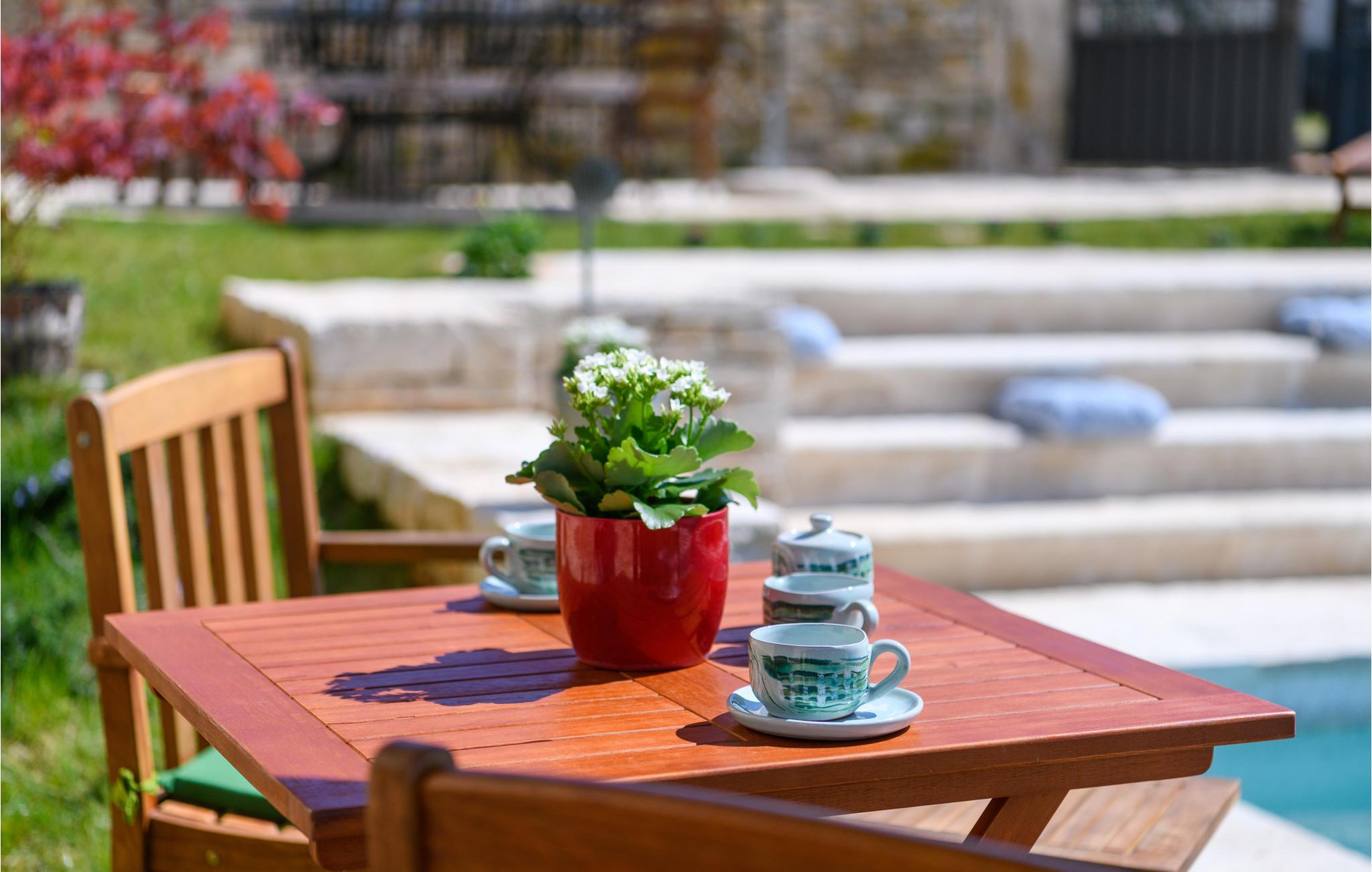 Herzlich Willkommen in dieser Unterkunft, die in allen Aspekten eine außerordentliche, einzigartige Atmosphäre inne hat. Das liebevoll umfunktionierte, zeitgemäß gestaltete alte Landhaus verwöhnt Sie mit rustikalen alten Steinwänden, komfortablen Möbeln, offenen, hellen Zimmern und einem großen Pool. Auch die sichtbaren, schönen Deckenbalken aus Holz tragen ihren Teil zur authentischen, ländlichen Atmosphäre bei.