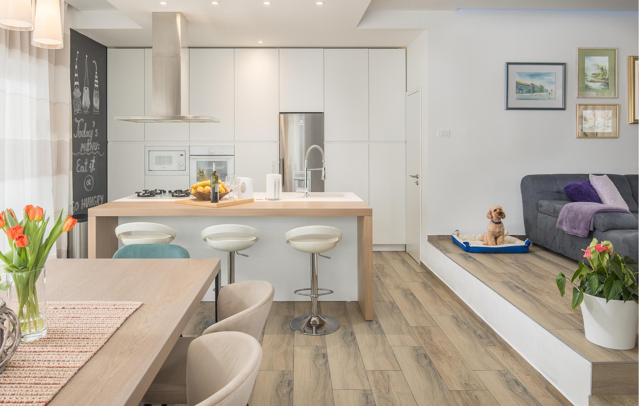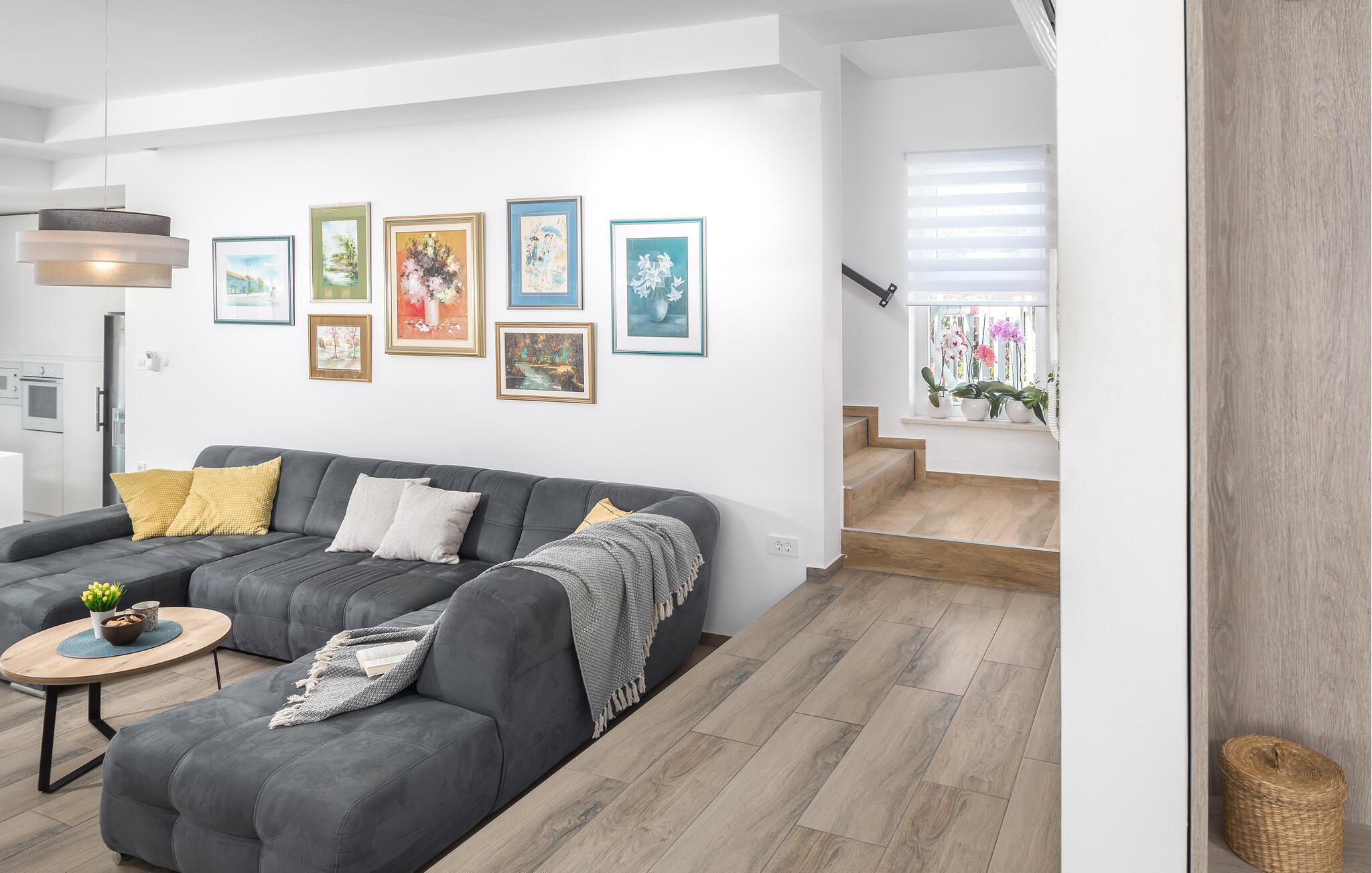 Dieses moderne Haus ist wie geschaffen für eine Auszeit vom hektischen Alltag. Lichtdurchflutete Räume, viel Platz zum Entspannen und liebevoll ausgesuchte Details schaffen eine Atmosphäre, in der Sie sich sofort wohlfühlen. Plaudern Sie bei einer Tasse Kaffee auf dem Sofa, verbringen Sie einen gemütlichen Nachmittag bei Brett- und Kartenspielen oder probieren Sie neue Rezepte in der Küche aus.