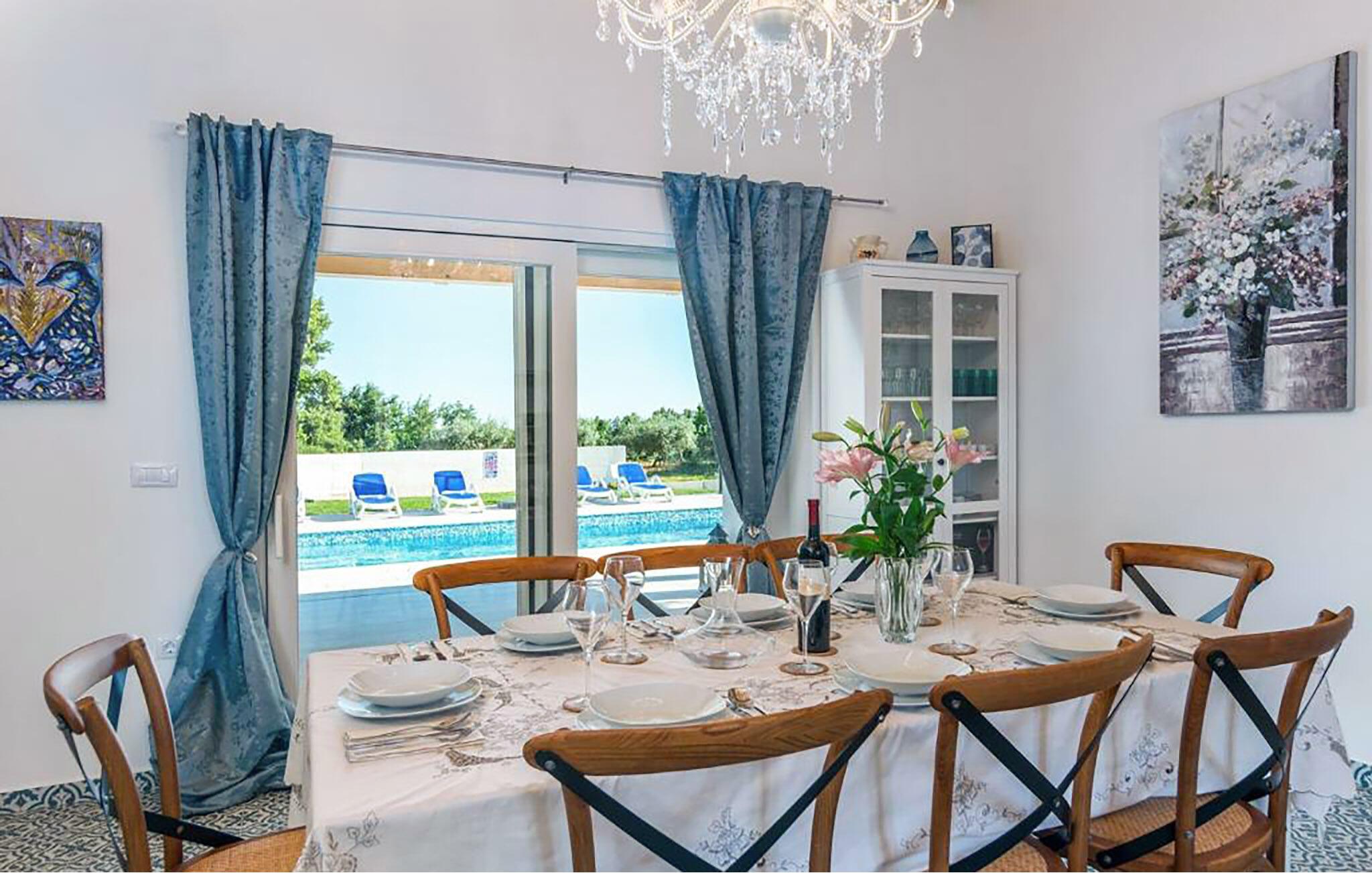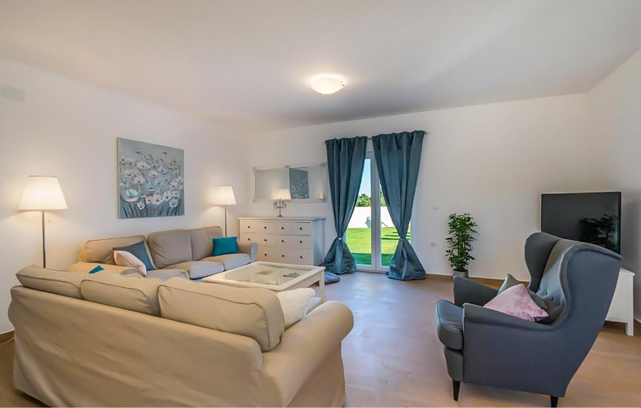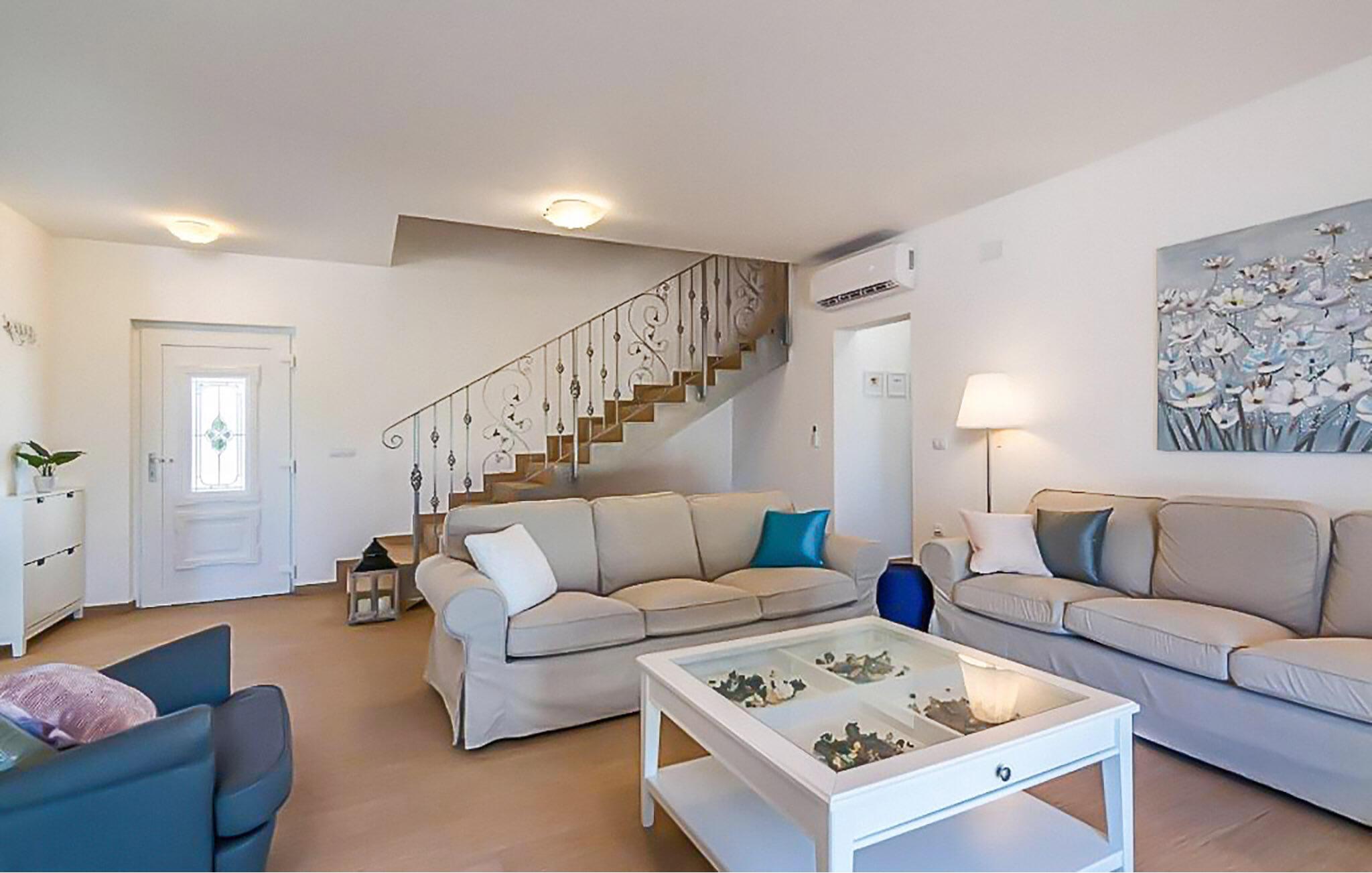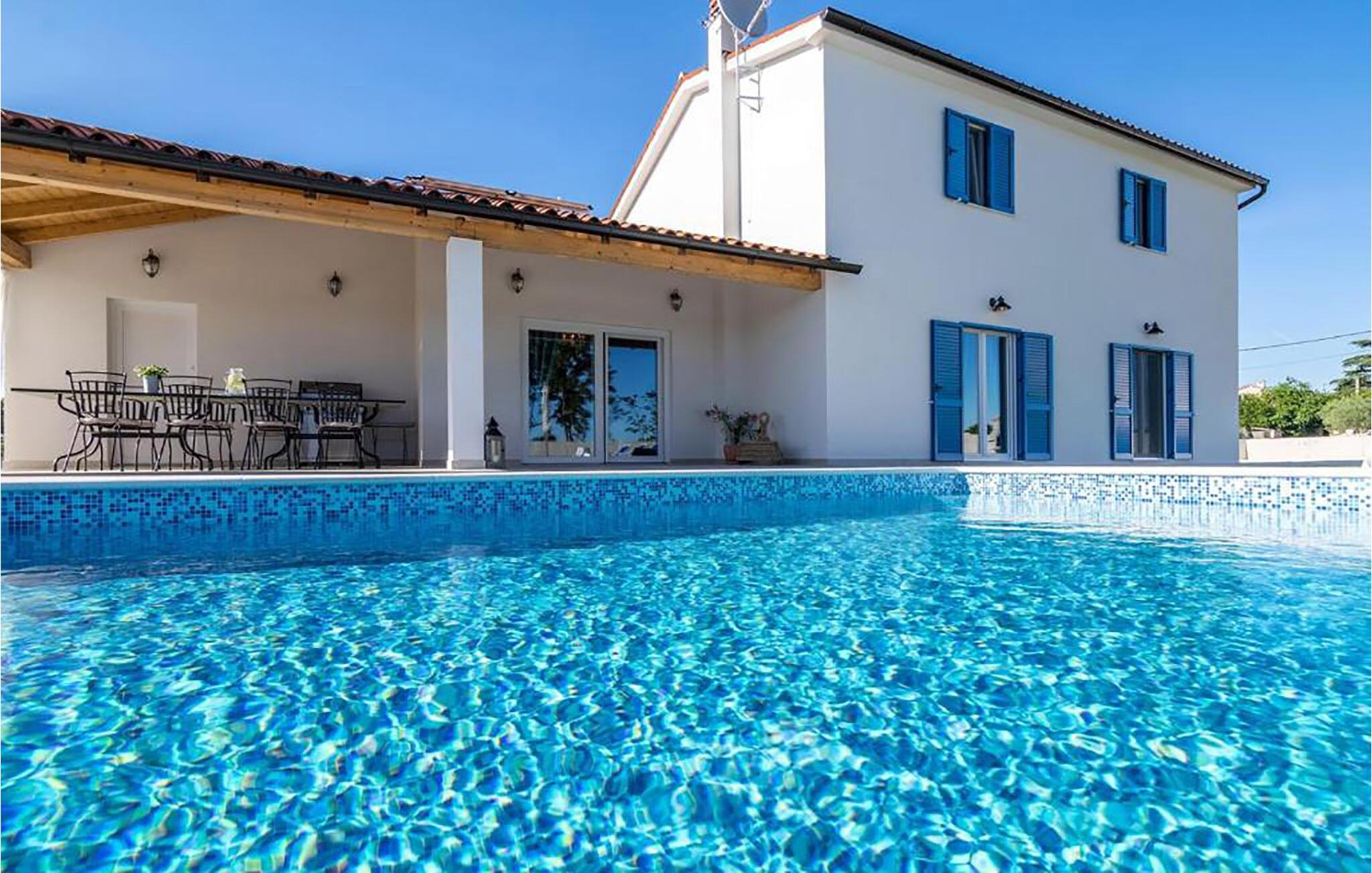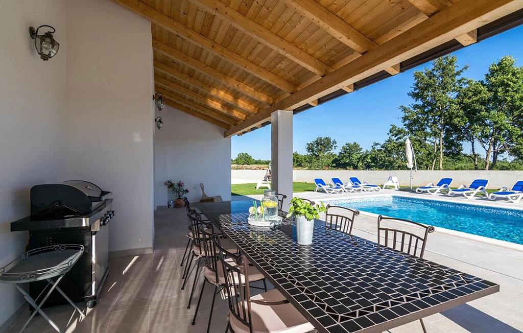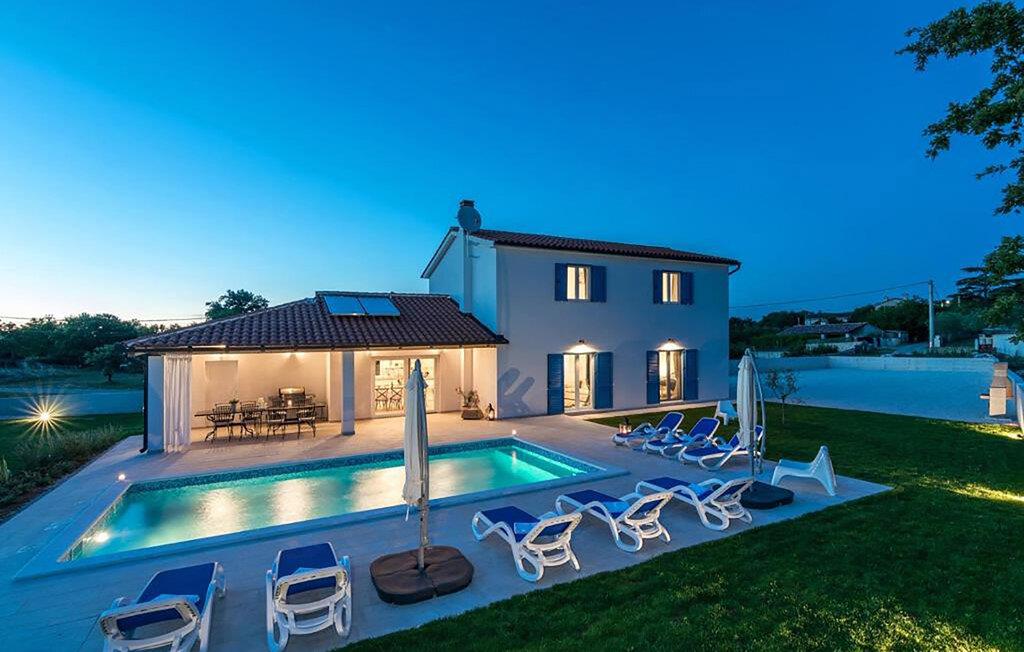 In der malerischen Umgebung von Juršici erwartet Sie diese stilvolle Villa, die mit viel Platz, Komfort und einer ruhigen Atmosphäre überzeugt. Die großzügigen Räume sind geschmackvoll eingerichtet, und der einladende Wohnbereich sorgt für eine behagliche Stimmung. In der modernen Küche können Sie gemeinsame Mahlzeiten zubereiten, während die gemütliche Sitzecke zum Verweilen einlädt. Draußen bietet Ihnen die weitläufige Terrasse mit Blick auf den Garten den perfekten Ort für entspannte Stunden. Ob ein Sprung in den Pool oder ein Glas Wein unter dem Sternenhimmel – hier genießen Sie einen erholsamen Urlaub.