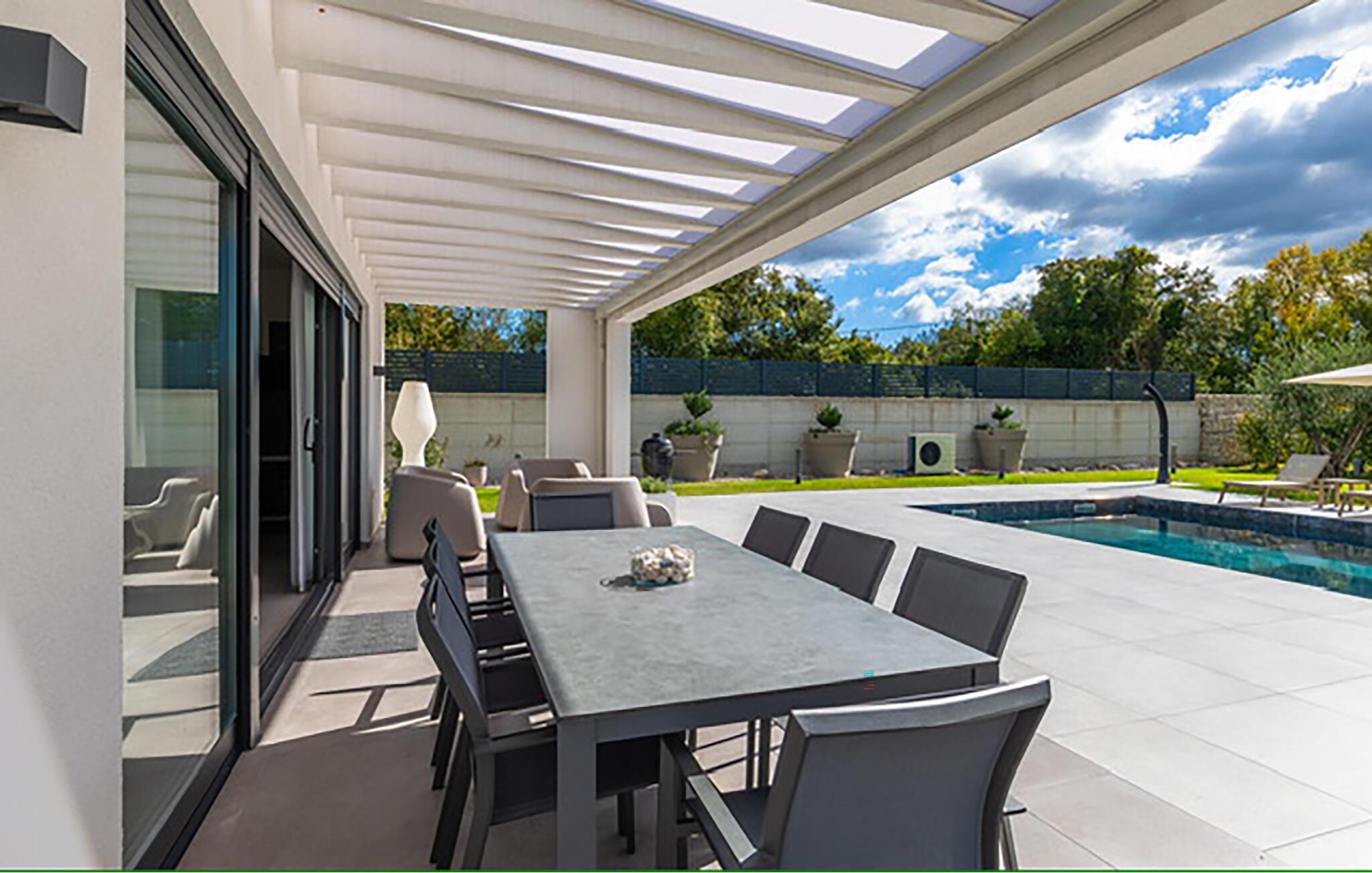 Der gepflegte Außenbereich ist wie geschaffen, um das sonnenverwöhnte Klima zu genießen. Servieren Sie Ihr Frühstück auf der überdachten Veranda, erfrischen Sie sich nach Lust und Laune im herrlichen Pool und tanken Sie Energie auf der Liege. Zelebrieren Sie laue Sommernächte mit einem stimmungsvollen Grillabend und plaudern Sie bis in die Nacht hinein unter dem Sternenhimmel.