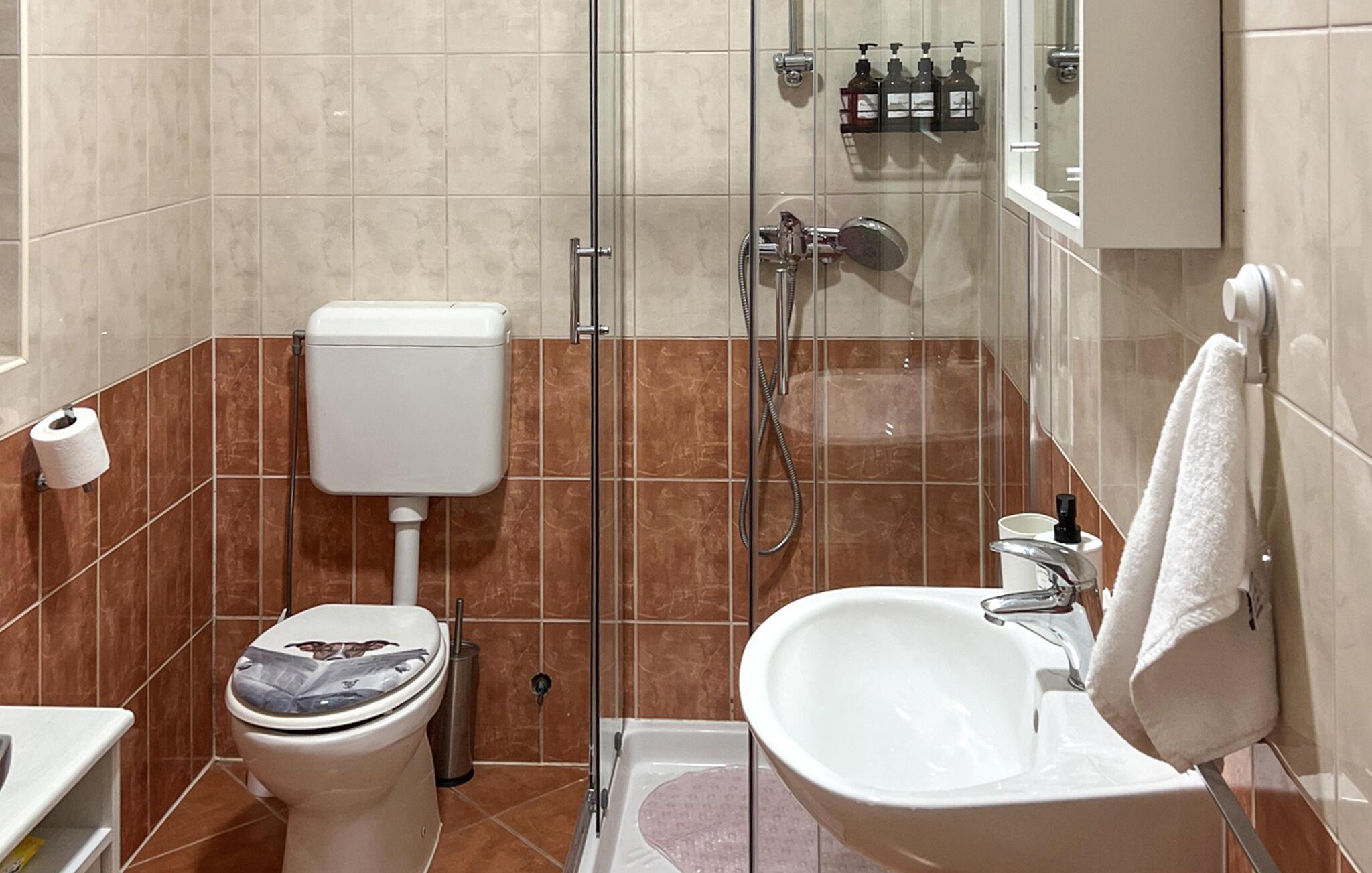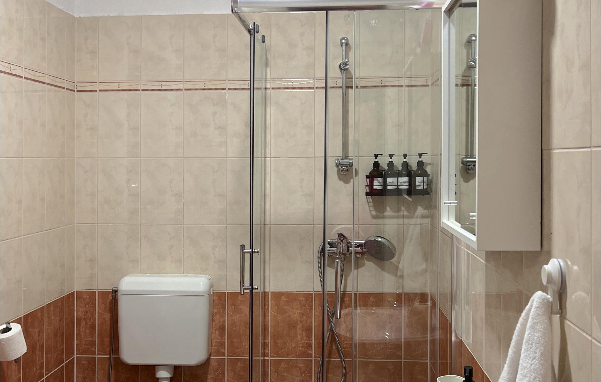 - WC mit warmem und kaltem Wasser, Dusche