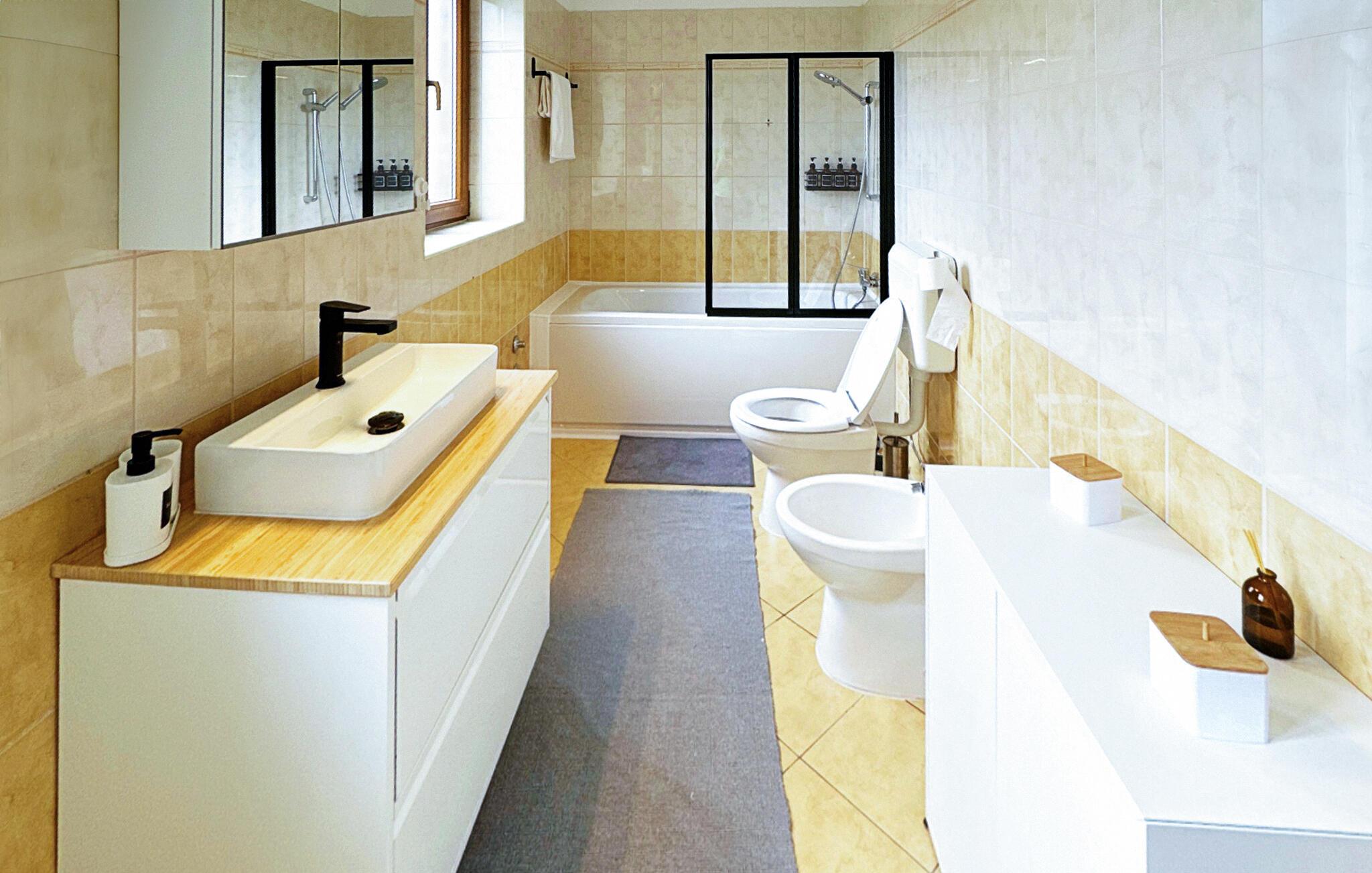- WC mit warmem und kaltem Wasser, Badewanne