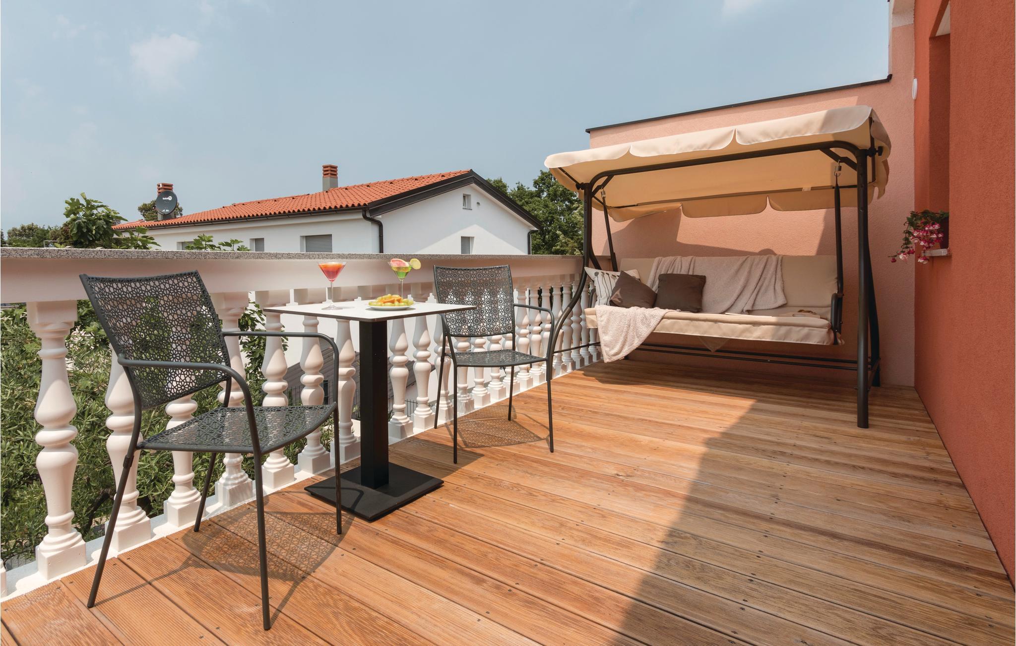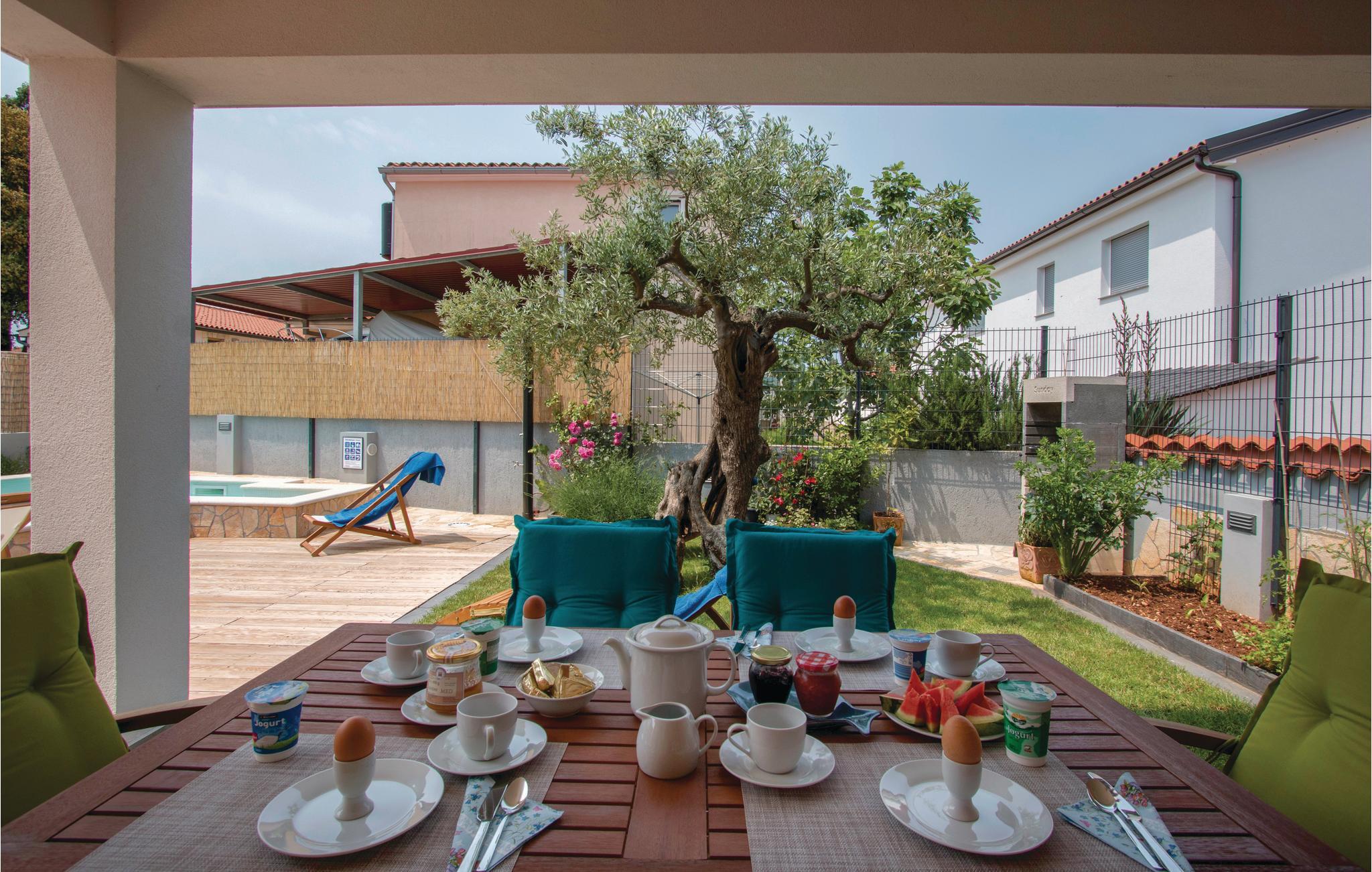 Verbringen Sie einen angenehmen und erholsamen Urlaub in dieser wunderschönen Doppelhaushälfte, die auch den Namen "Buža Pontoža" trägt, nach einer istrischen Art von Oliven, deren Baum auch im Hof vor dem Haus gepflanzt wurde. Die modern eingerichteten Innenräume bestehen aus der Küche mit Essbereich und dem Wohnzimmer im Erdgeschoss, während sich im ersten Stock zwei klimatisierte Schlafzimmer mit eigenem Bad befinden.