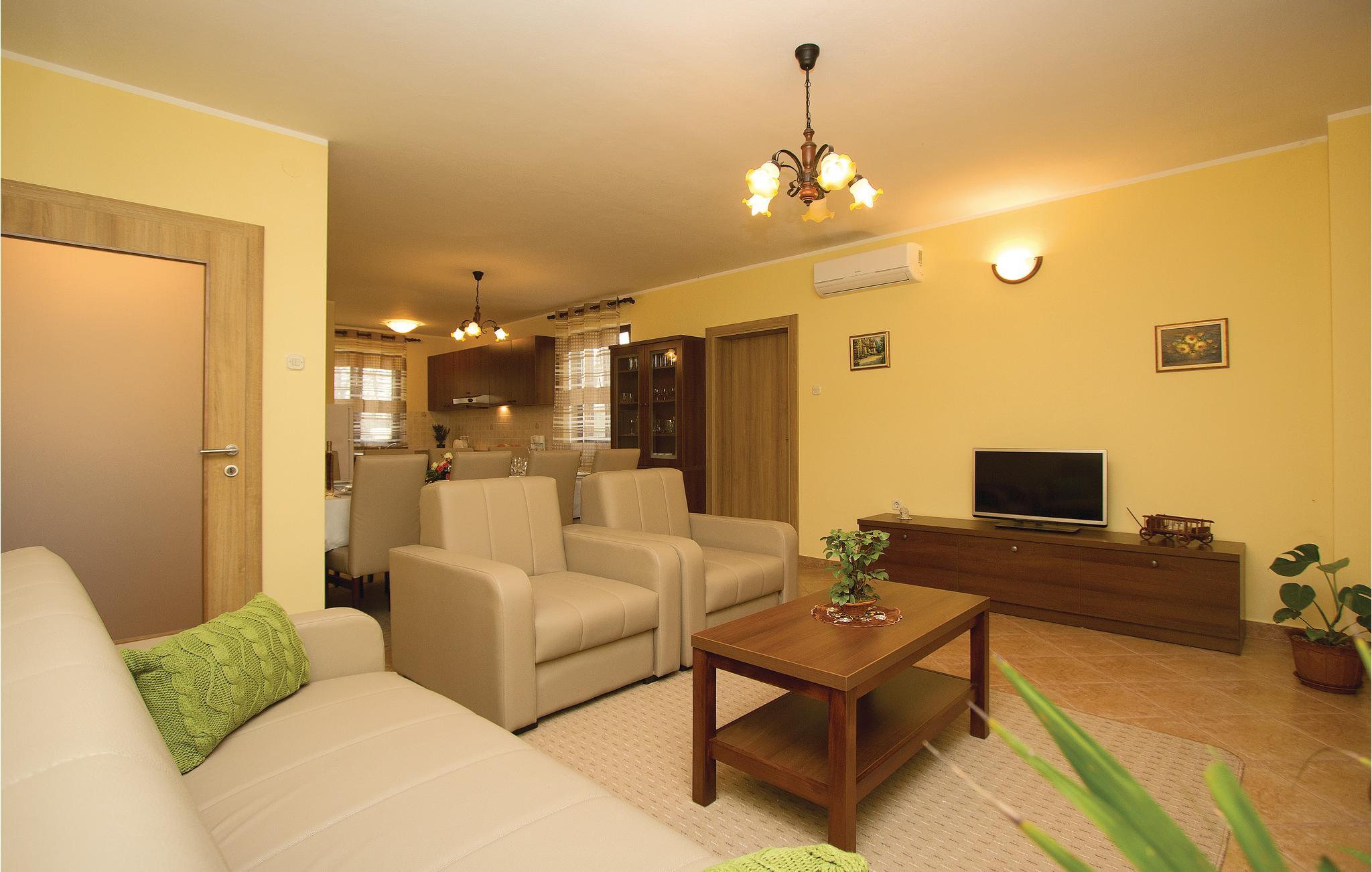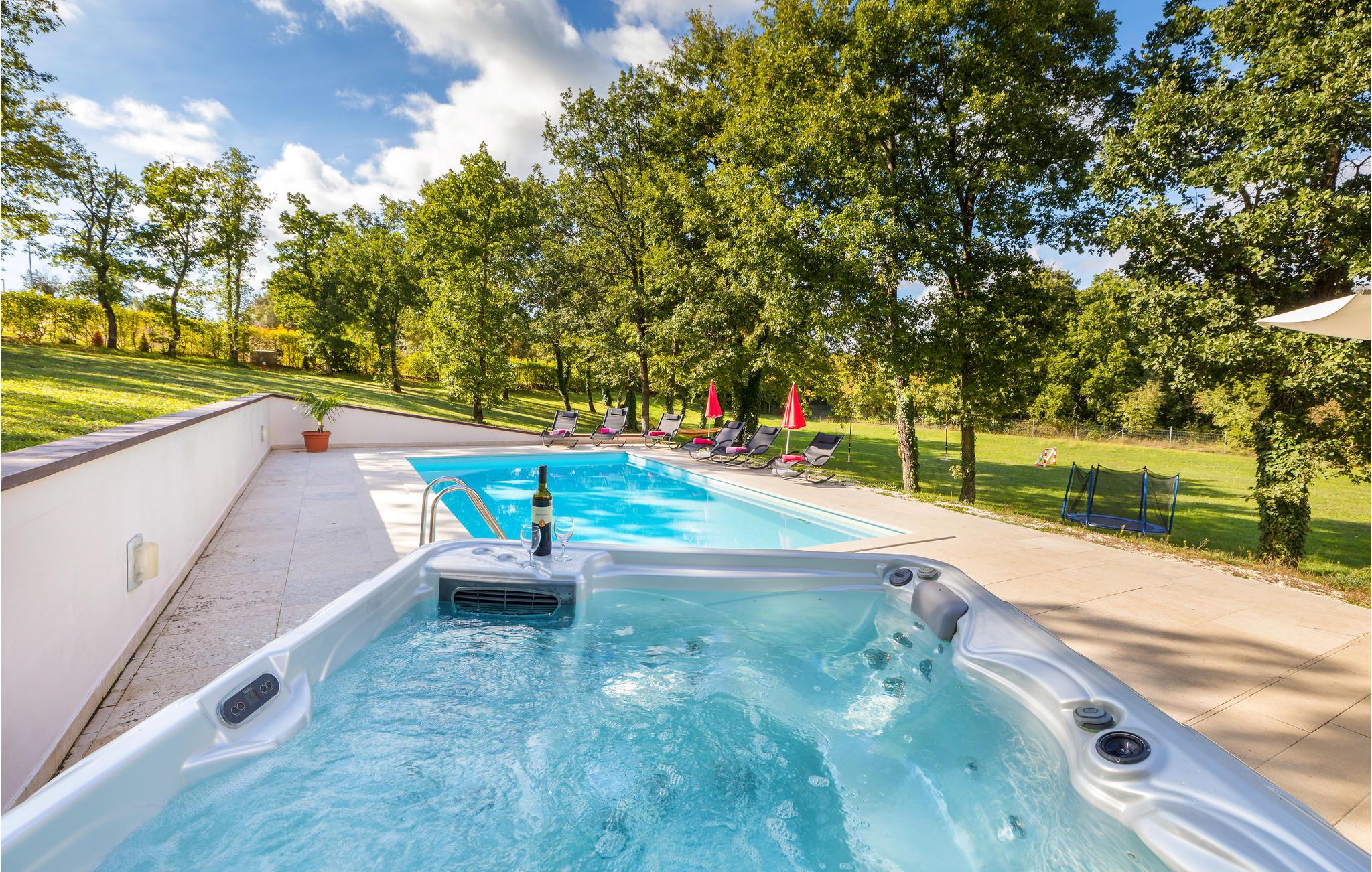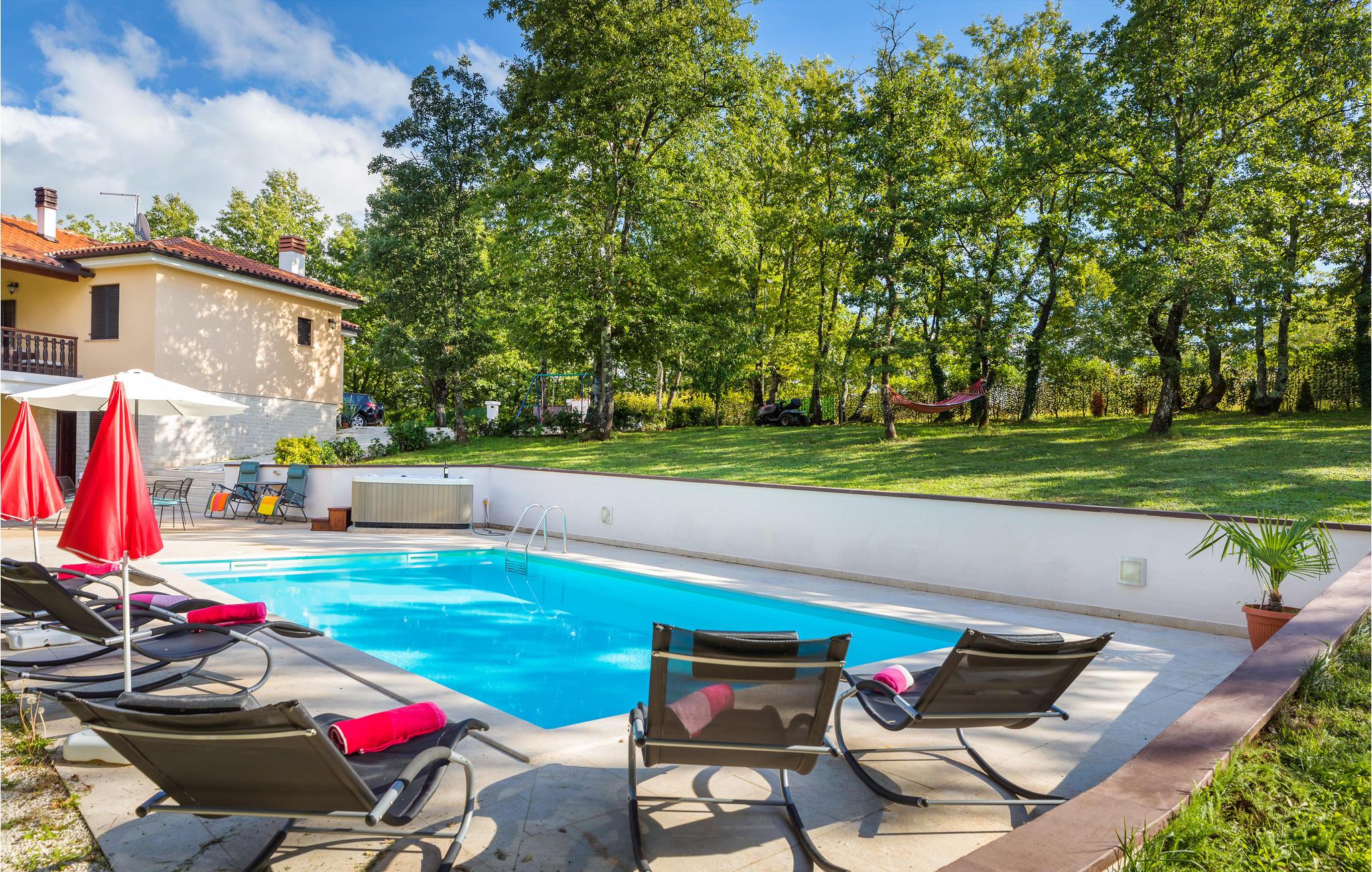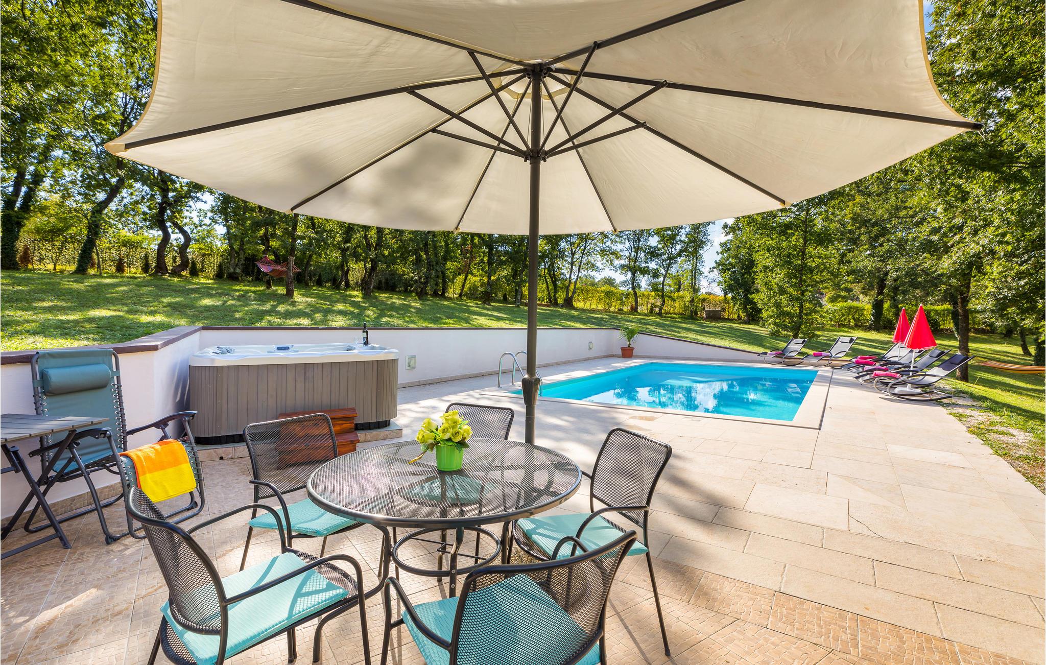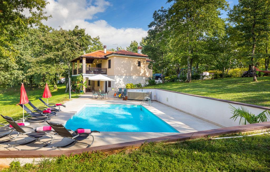 Wenn Sie Ihren Urlaub in einem Ferienaus verbringen wollen, das vom Grün der Natur umgeben ist, dann ist dieses die richtige Wahl. Es verfügt über ein sehr großes Grundstück, das zum Spazieren und Entspannen einlädt und Ihren Kindern genügend Unterhaltungsmöglichkeiten und Freiraum bietet. Beim Haus, das aus zwei separaten Wohneinheiten besteht, befindet sich auch ein Swimmingpool, der Ihnen Erfrischung in den heißen Sommertagen gibt. Das Feriendomizil liegt zwar im zentralen Teil der Halbinsel Istriens, diese können Sie aber mühelos mit dem Auto in nur ca. einer halben Stunde in allen Richtungen erforschen.