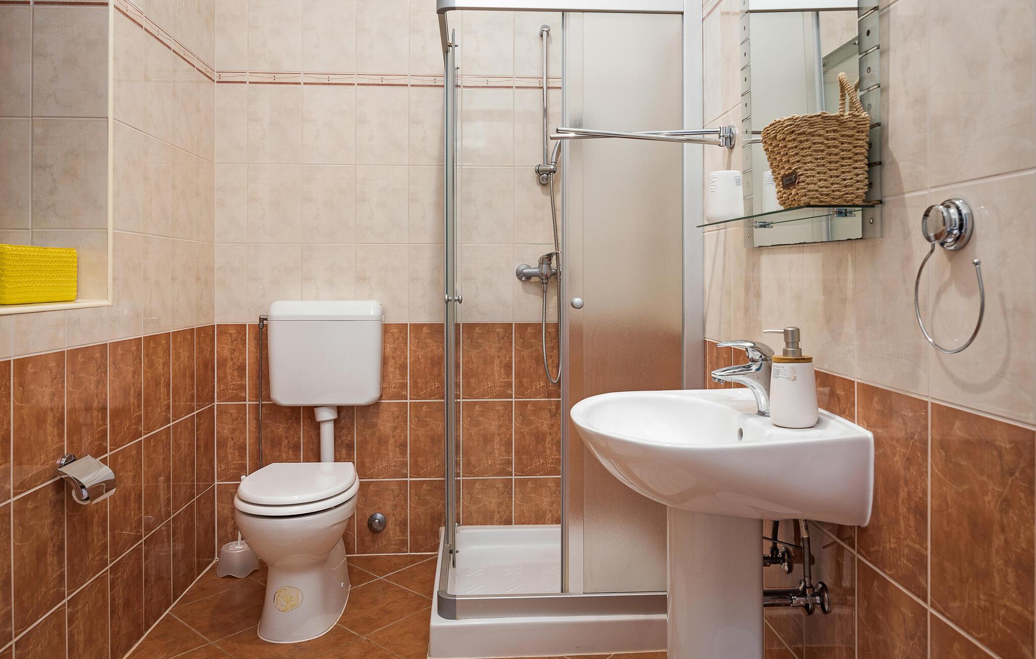 - WC mit warmem und kaltem Wasser, Dusche