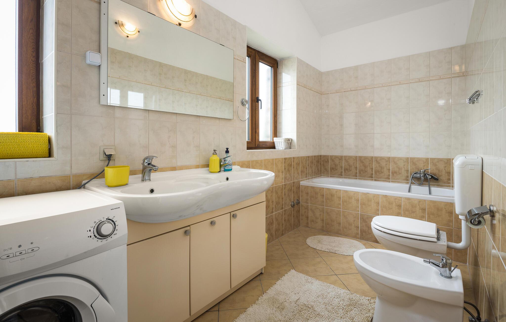 - WC mit warmem und kaltem Wasser, Badewanne