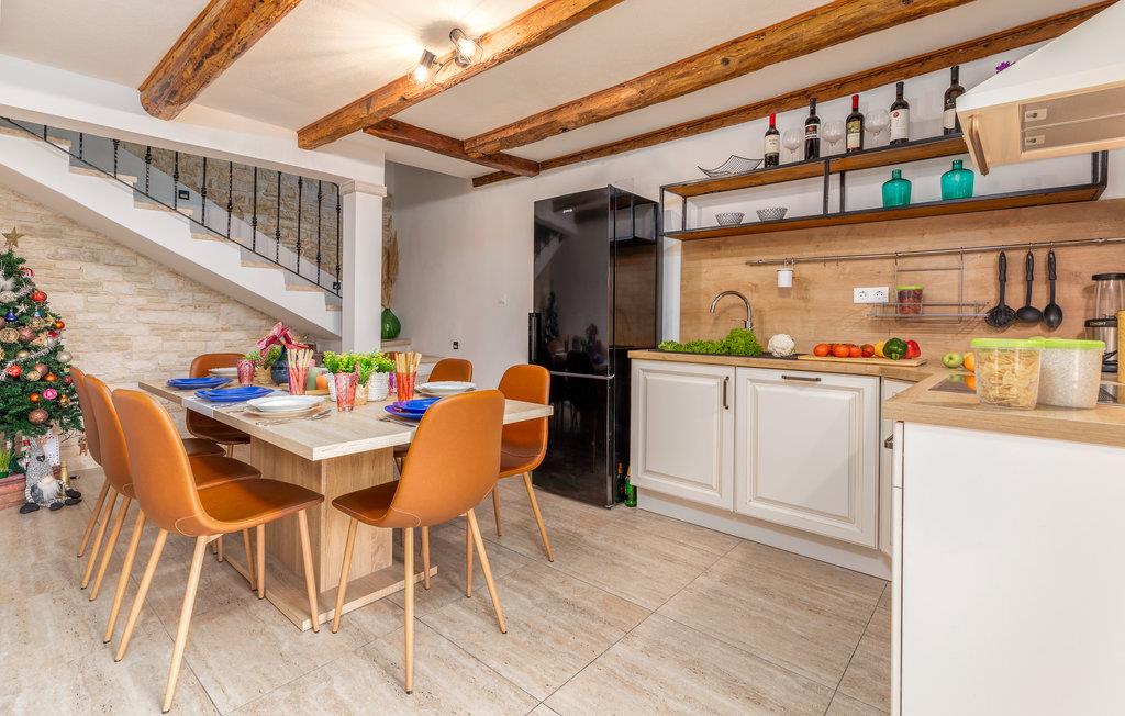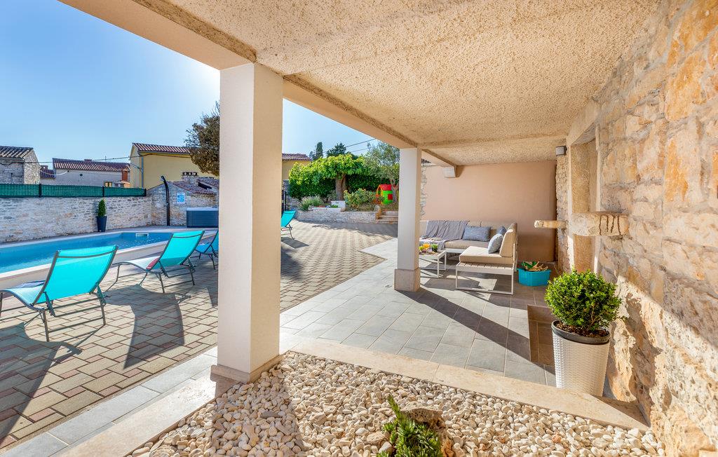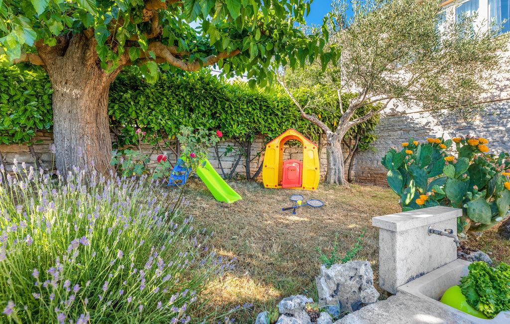 Die Taverne bietet die Möglichkeit, gemütlich bei einem Glas Wein zusammen zu sitzen und im Holzkamin istrische Köstlichkeiten zuzubereiten, während die Kinder auf dem eingezäunten Grundstück sicher spielen. An warmen Tagen bietet der Pool herrliche Erfrischung.