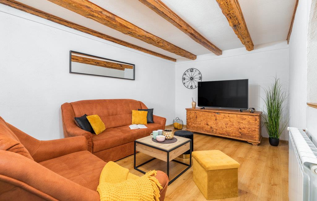 Verbringen Sie einen unvergesslichen Urlaub mit der ganzen Familie in diesem geschmackvoll eingerichteten Feriendomizil, das auch einer größeren Familie reichlich Platz bietet. Die sichtbaren Deckenbalken verleihen der gemütlichen Wohnküche ein uriges Flair, und aus den Fenstern des Hauses genießen Sie einen beeindruckenden Blick über die Landschaft.