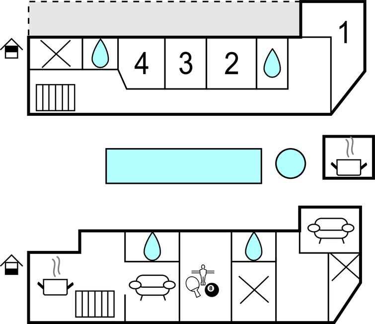 - WC mit warmem und kaltem Wasser, Dusche und Badewanne